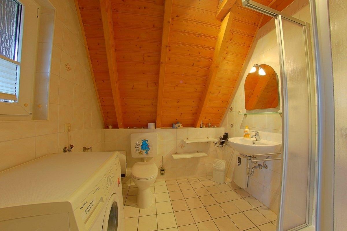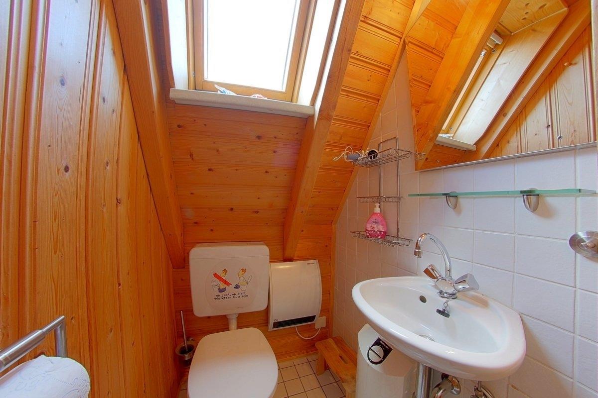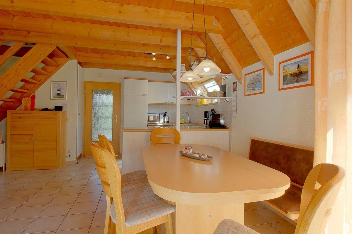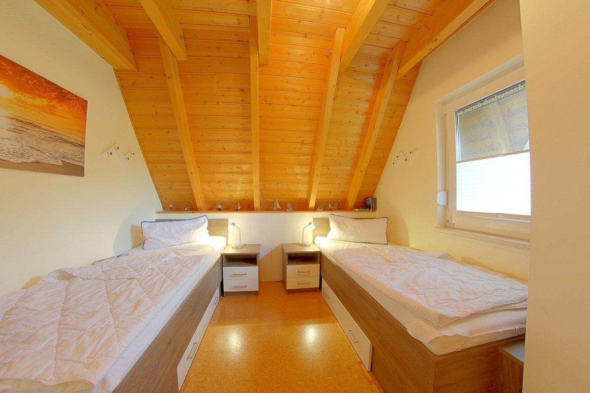 Das Ferienhaus bietet ausreichend Platz für 6 Gäste sowie ein Kleinkind und verfügt über 3 Schlafzimmer, 1 Wohn-, Ess-Küche, 1 Bad und Gäste-WC im DG. Zusätzliches Kinderbett für Kleinkind vorhanden. Alle drei Schlafräume sind mit Insektenschutz ausgestattet.