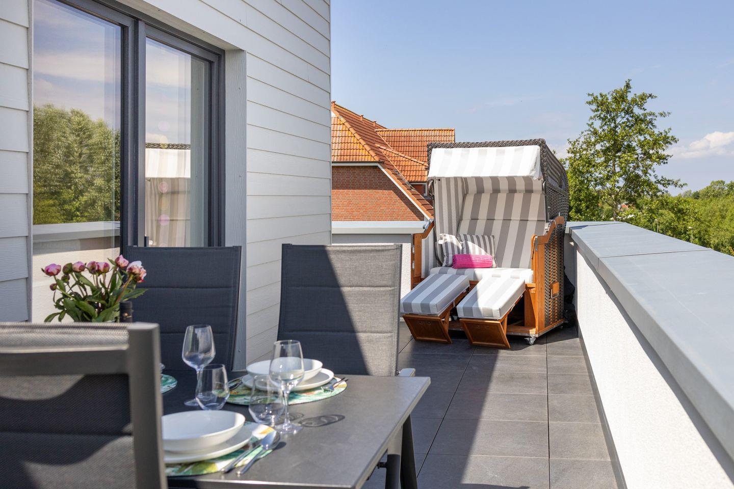 Modernes Penthouse mit Balkon und Weitblick in Dorum-Neufeld nahe Wattenmeer.