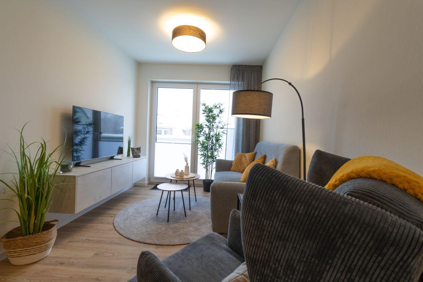 Ein Aufzug bringt dich bequem zur Wohnung. Parkplätze direkt am Haus, ein abschließbarer Fahrradraum und der kontaktlose Check-in per Schlüsseltresor sorgen für entspannte Abläufe. WLAN ist selbstverständlich inklusive.
