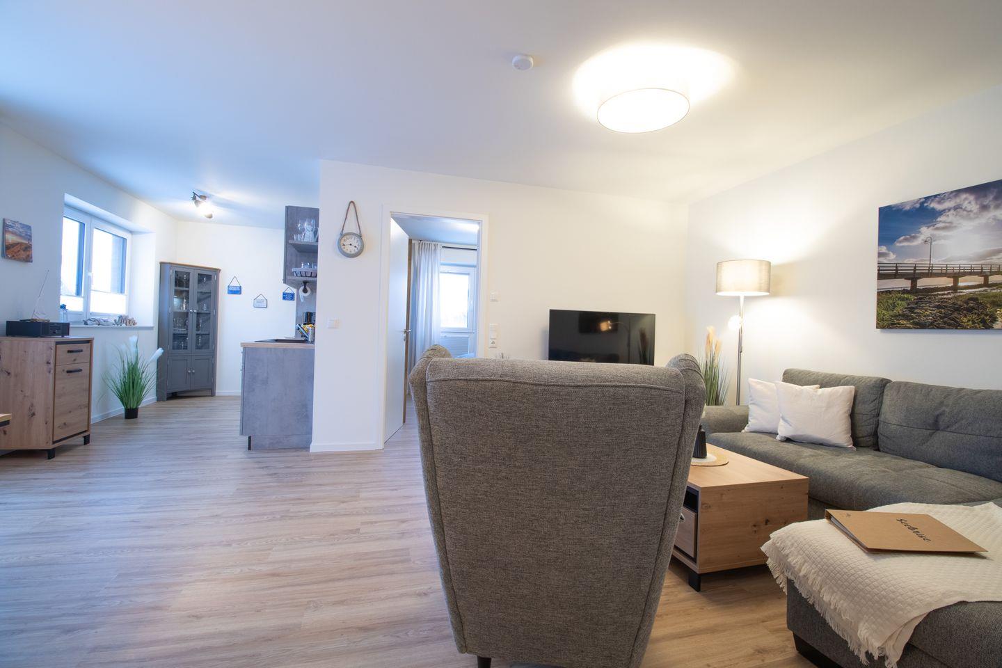 Die Wohnung liegt nur rund 900 Meter vom Strand entfernt. Du gehst zu Fuß zum Hafen, zum Grünstrand und zum Deich.