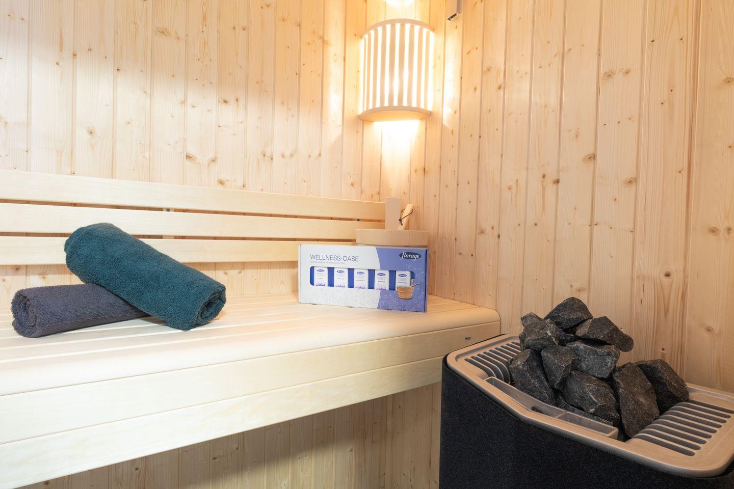 Das moderne Badezimmer wird zur persönlichen Wellnessoase. Eine großzügige Dusche und eine eigene Sauna schenken dir wohltuende Entspannung – besonders angenehm an kühleren Tagen oder nach langen Spaziergängen an der Küste.