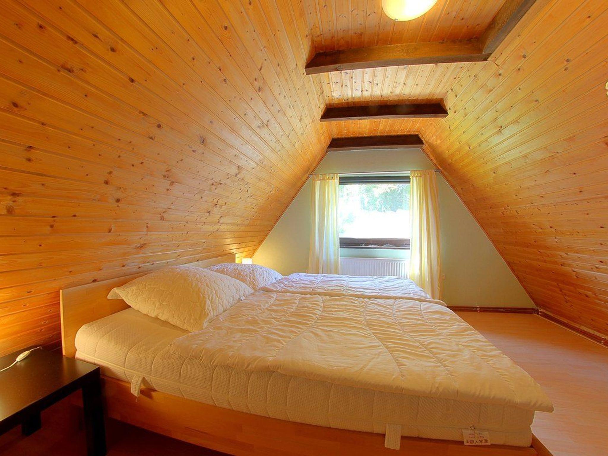 Ein Schlafzimmer im Erdgeschoß mit 2 Einzelbetten (0.80 x 2,00 m), ein Schlafzimmer im Obergeschoß mit Doppelbett (1,80 x 2,00 m) und ein Zimmer mit Einzelbett (0,90 x 1,90 m) und Babyreisebett.
