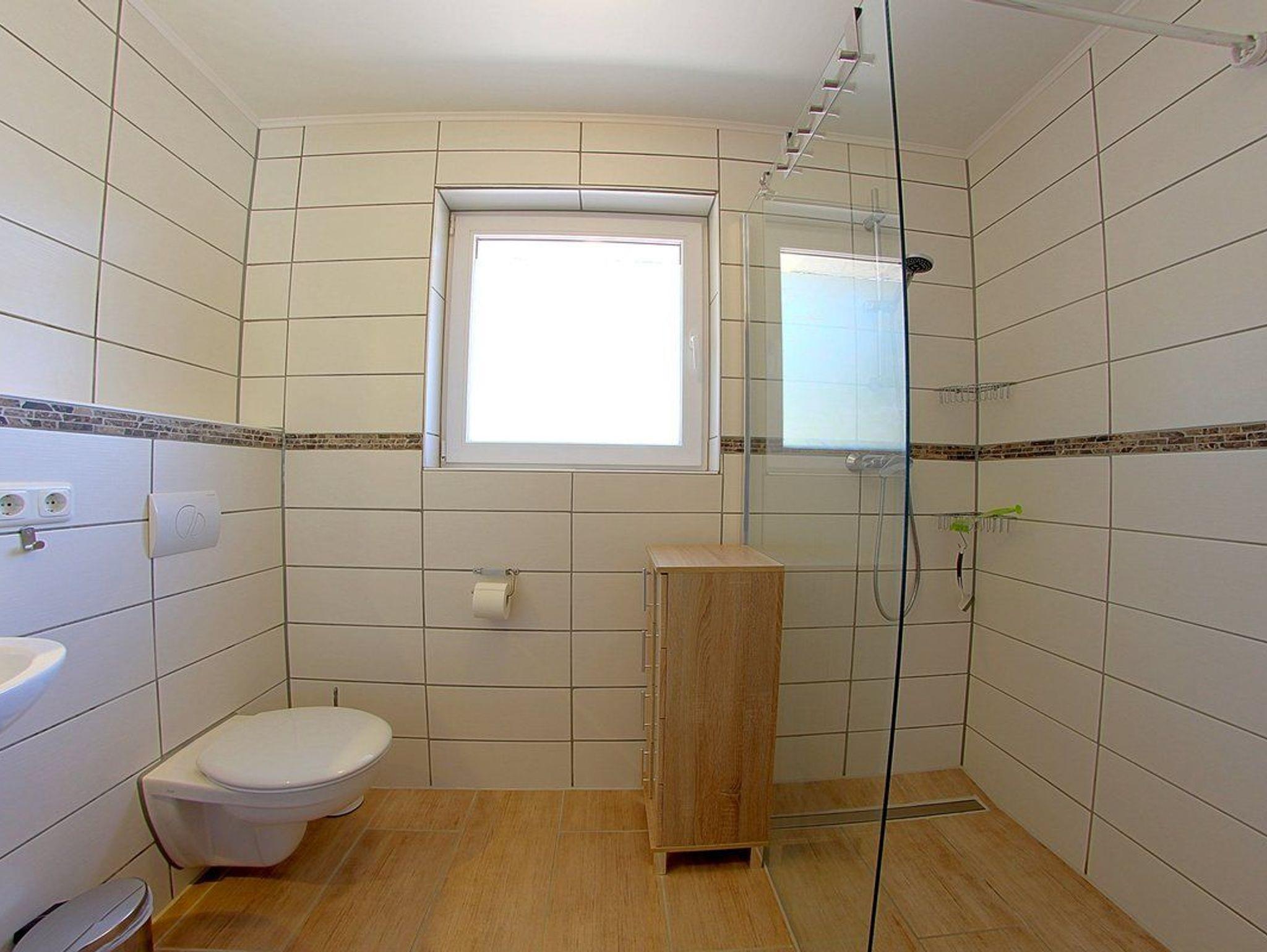 Ein modernes Duschbad mit begehbarer Dusche, Terrasse und Gartennutzung bieten wir unseren Gästen. Für die Kleinen stehen Hochstuhl und Kinderreisebett bereit.