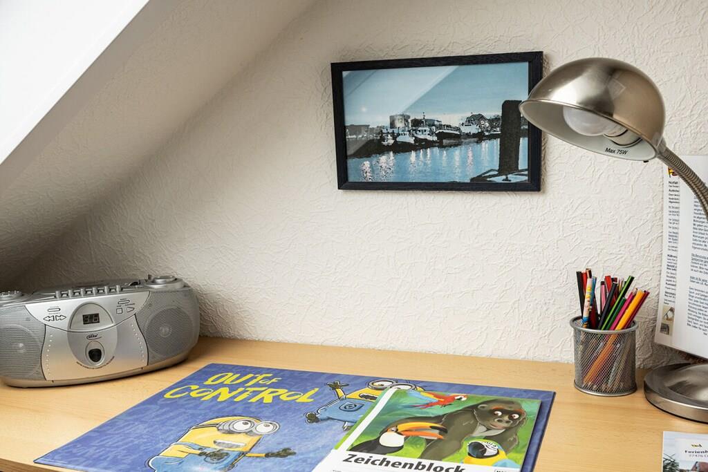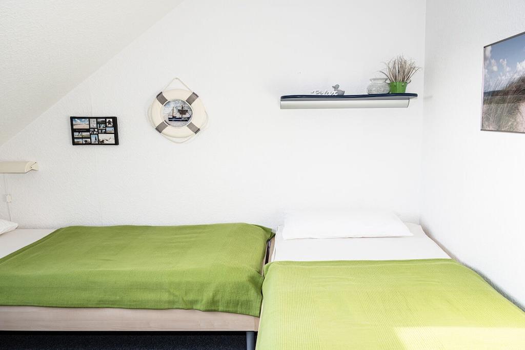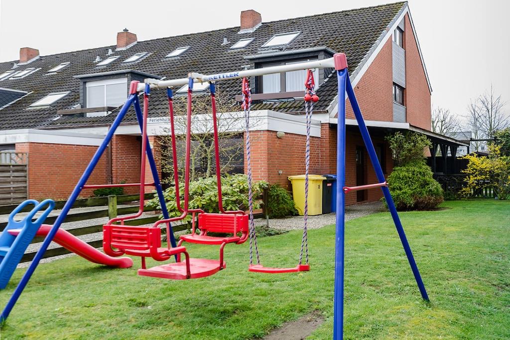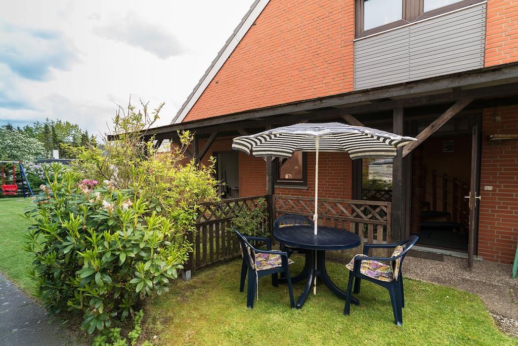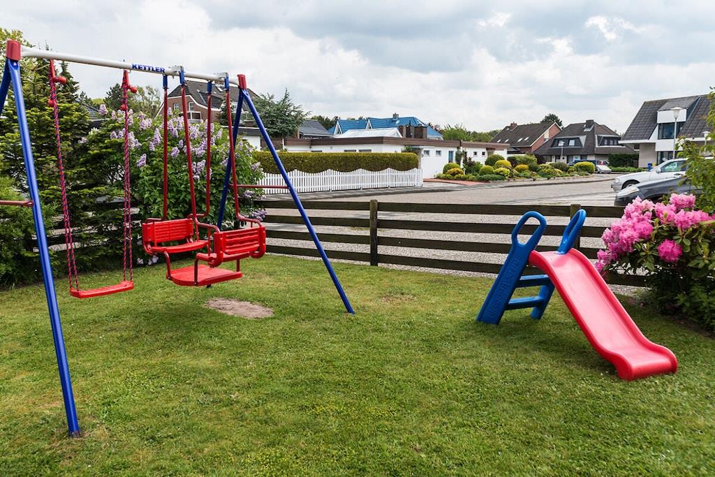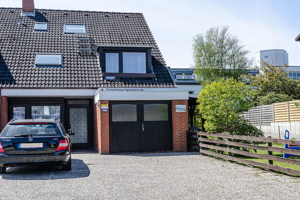 Das Ferienhaus liegt in einer ruhigen Seitenstraße nicht weit vom Strand entfernt. Die Wohnung ist gemütlich und für kleine Familien geeignet. Hat 2 Schlafplätze im Wohn- Ess- Küchenbereich, Küchenzeile, Esstisch, Sofa + ein kleines, separates Schlafzimmer mit einem Bett + Schreibtisch. Bad mit Dusche/WC. Kostenloses Internet. Es gibt einen Sitzplatz im Garten mit Gartenmöbel für diese Wohnung. Dort gibt es auch u.a .eine Sandkiste, Schaukel, Bollerwagen, Grill und Gartenspielzeug. Unser Dachapartment im 2. Stock ist reichhaltig ausgestattet mit Spielen, Büchern, Kabel-TV, Radio,. Eine Waschküche mit Waschmaschine und Trockner ist im Hause. Pkw-Stellplatz vorm Haus. 2 weiter 3-Zimmer-Wohnung sind noch im Haus für 4 bzw. 5 Personen
