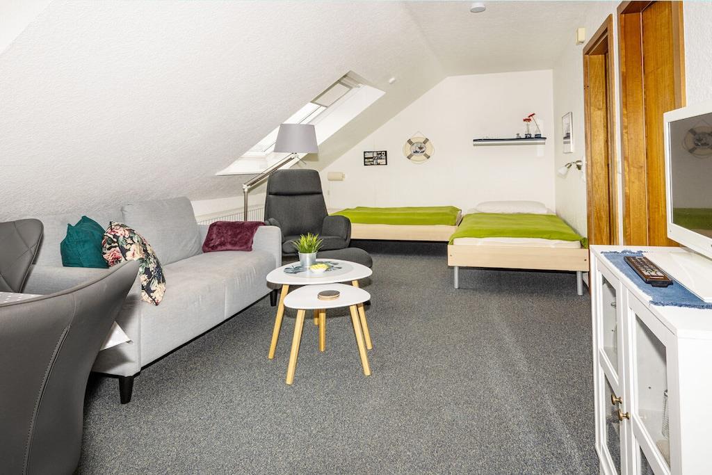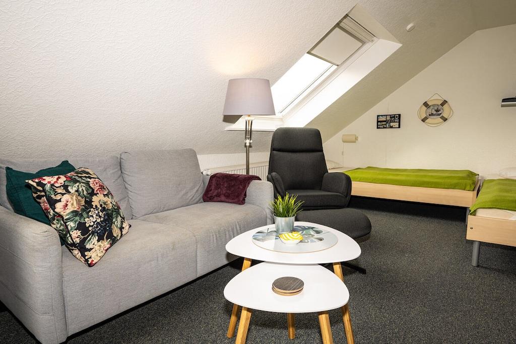 Gemütliches Dachapartment in ruhiger Lage nahe Strand mit Garten, WLAN und Spielmöglichkeiten für Kinder.