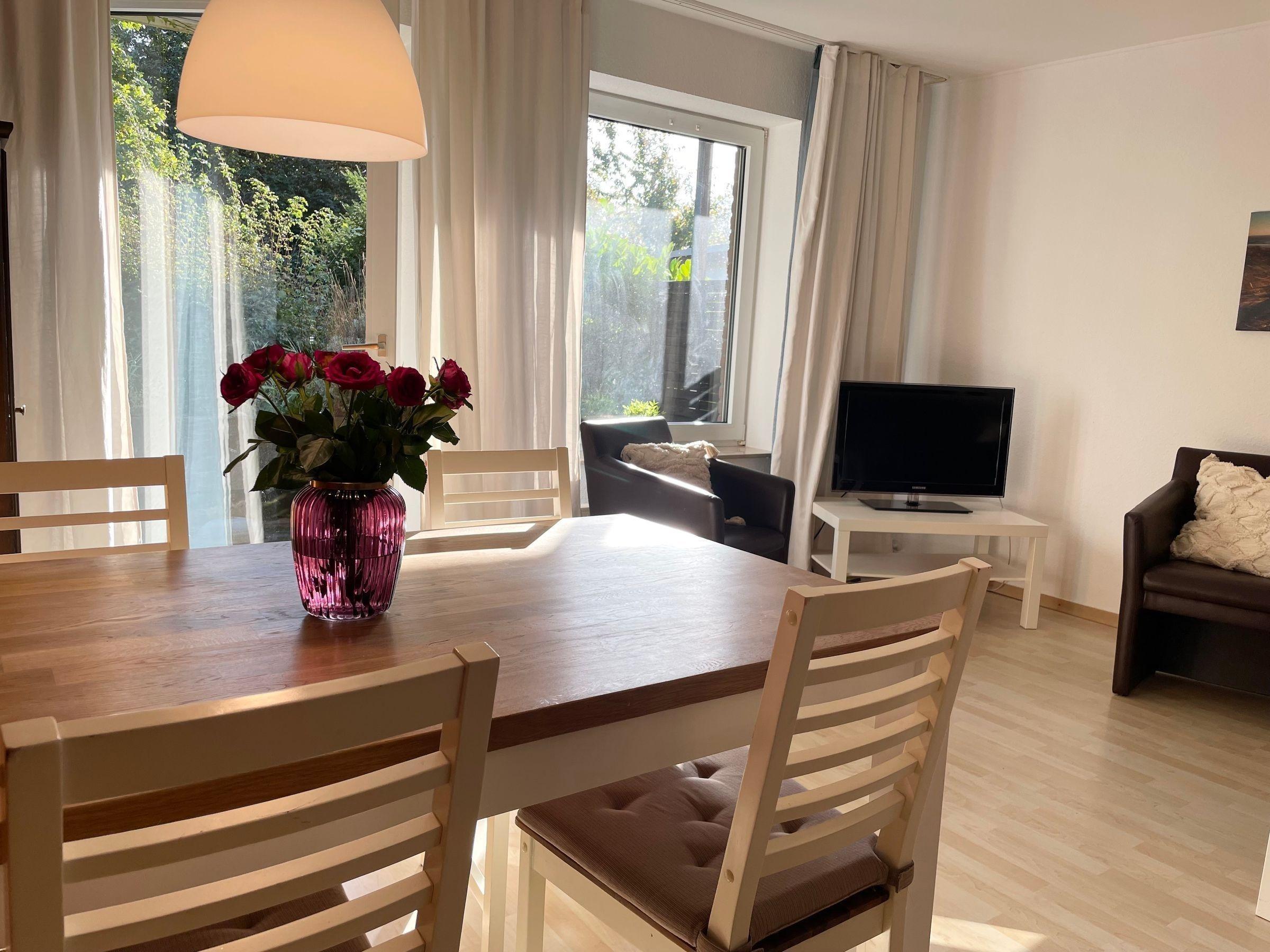 Gemütliche Ferienwohnung in Duhnen mit Gartenblick, nahe Strand, ideal für Familien und entspannte Urlaubstage.