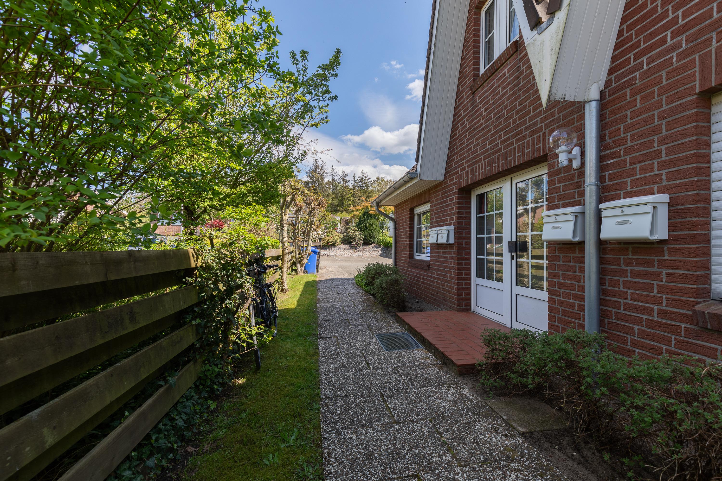 Die Wohnung im Häfchenweg 12/1 liegt im Ergeschoss der kleinen Wohnanlage. Der Ortskern des Kurteils Duhnen mit Geschäften und Restaurants und der Strand sind in wenigen Minuten zu Fuß erreichbar. Durch die Lage in einer Sackgasse gibt es keinen Durchgangsverkehr.