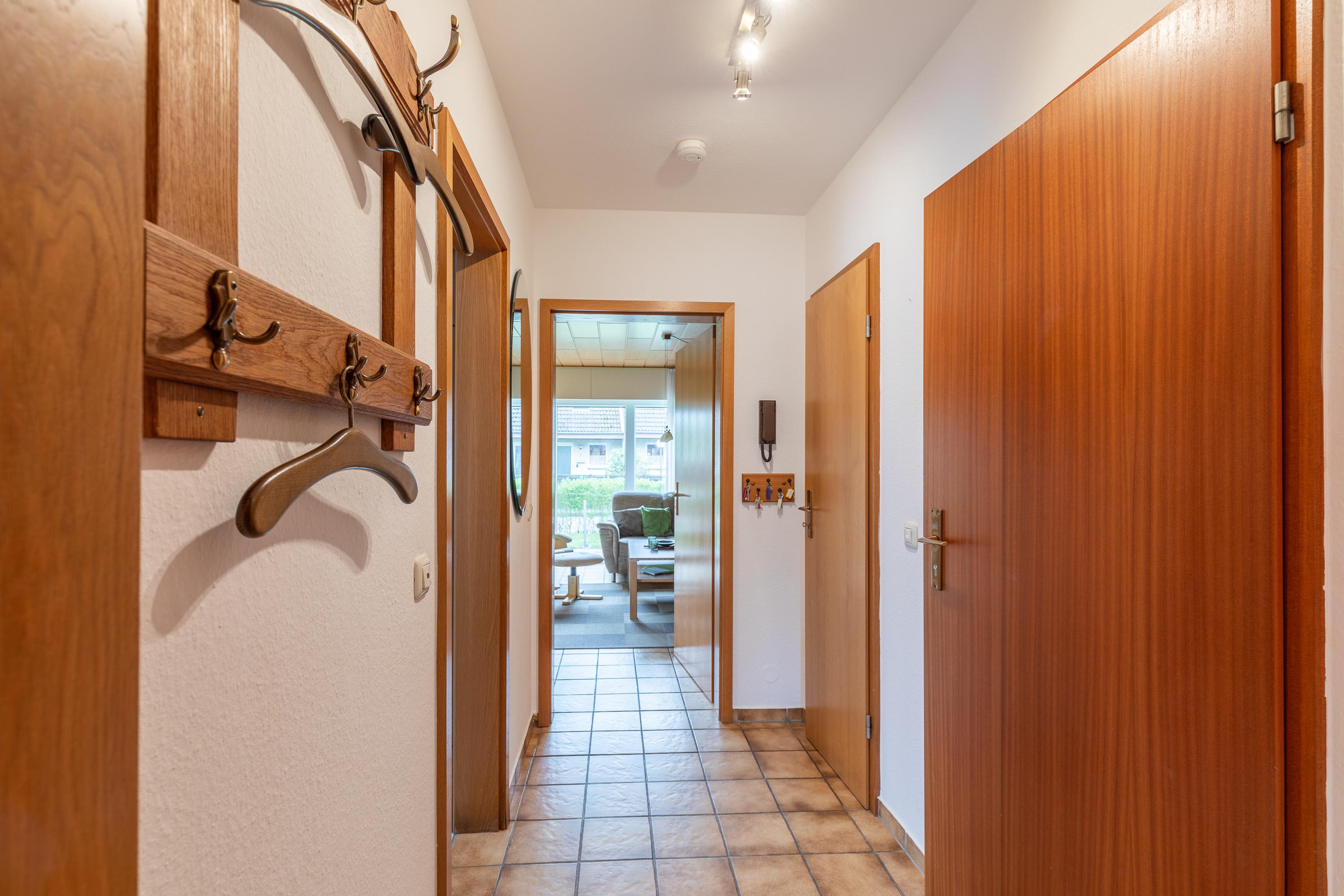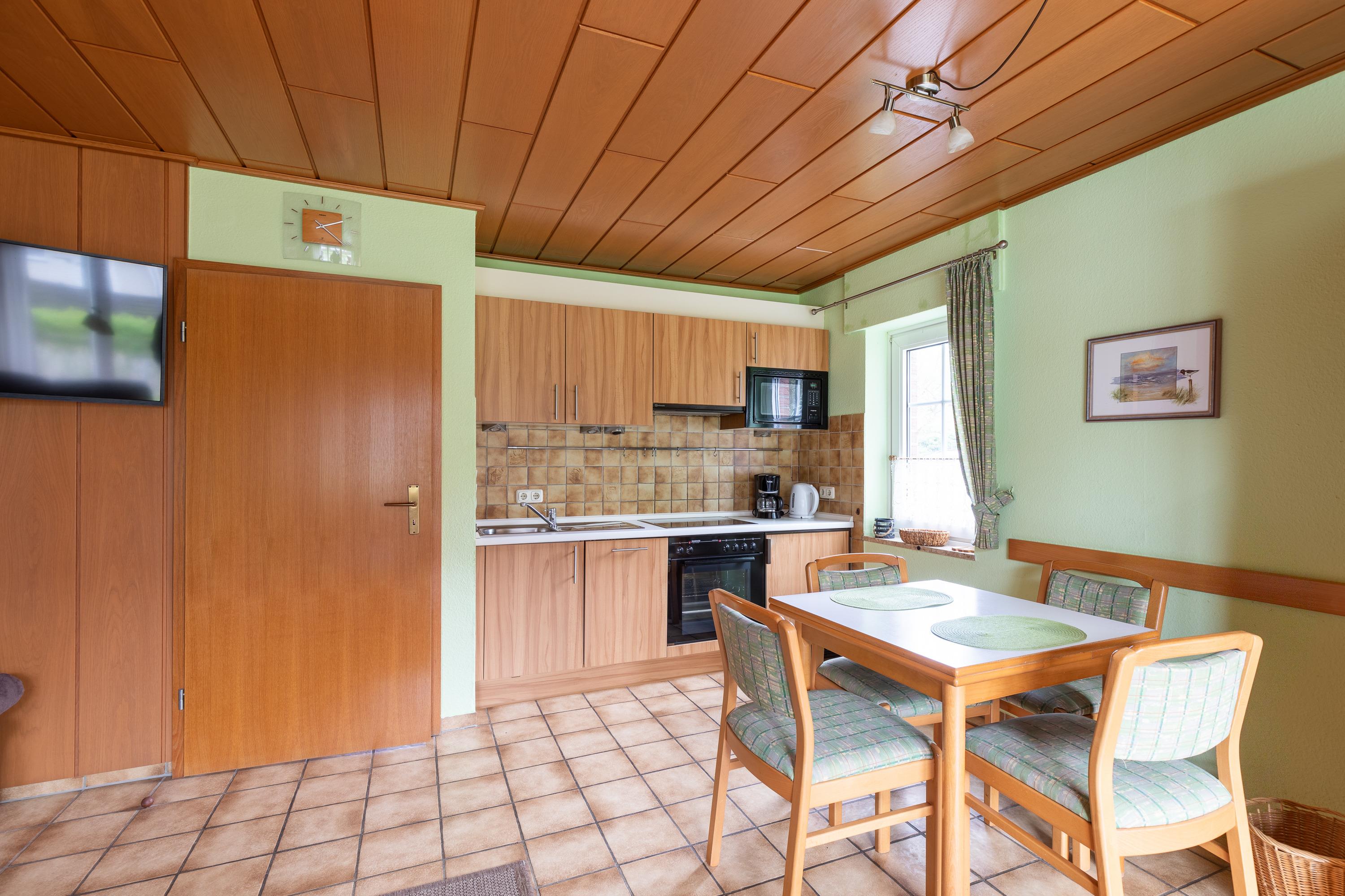 Die Wohnung befindet sich direkt unter der Wohnung 12/6 (separate Wohnungstüren, aber Selber Hauseingang), ist also ideal für einen Urlaub mit Freunden, Bekannten oder Oma und Opa geeignet. Sie verfügt über ein Wohn-/Esszimmer mit moderner Küchenzeile, Wohnbereich mit gemütlichem Sofa, TV mit Kabelprogramm und Radio/CD. Die Küche ist vollständig ausgestattet. Außerdem befindet sich noch ein Tisch mit Stühlen in diesem Bereich.
