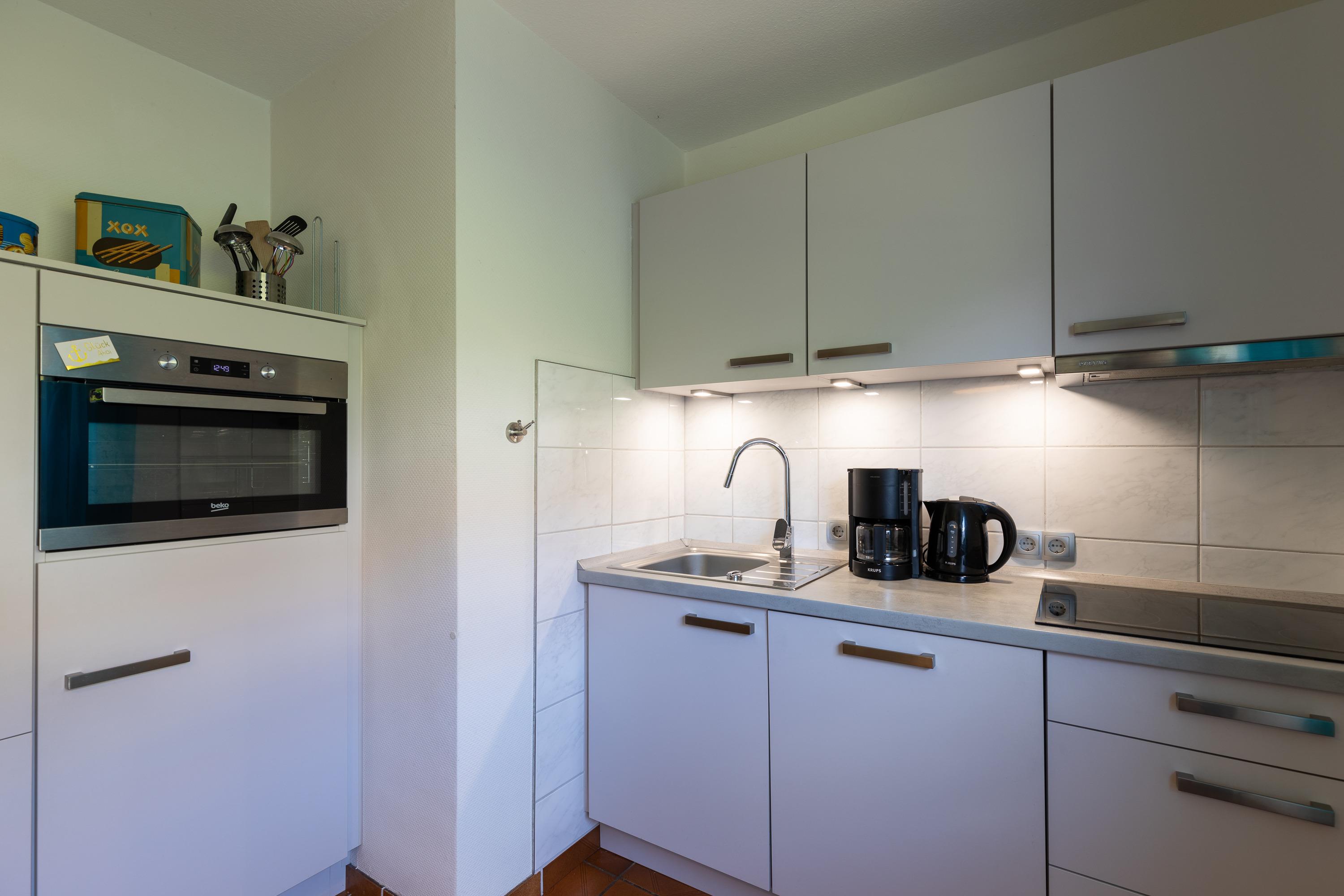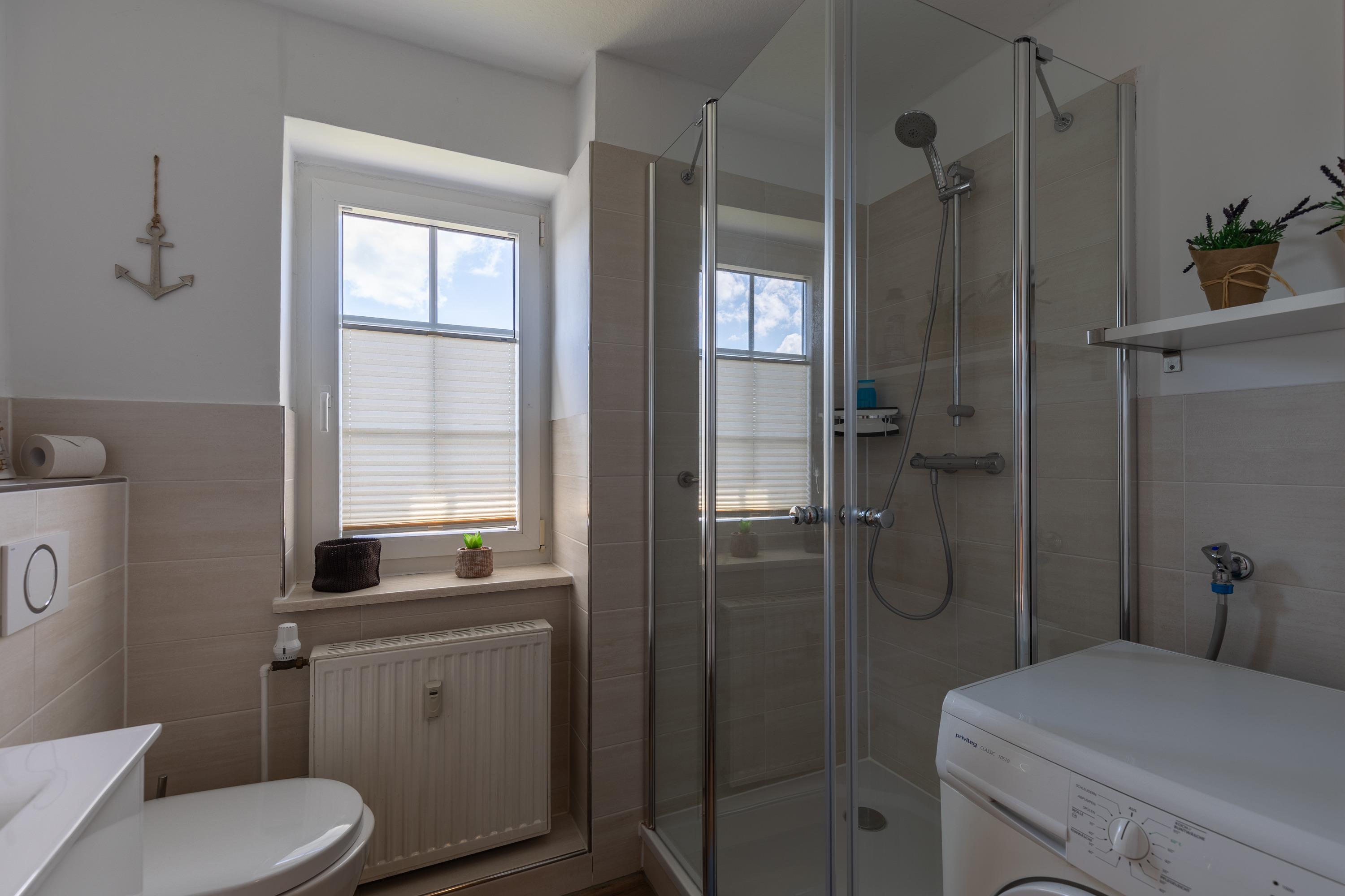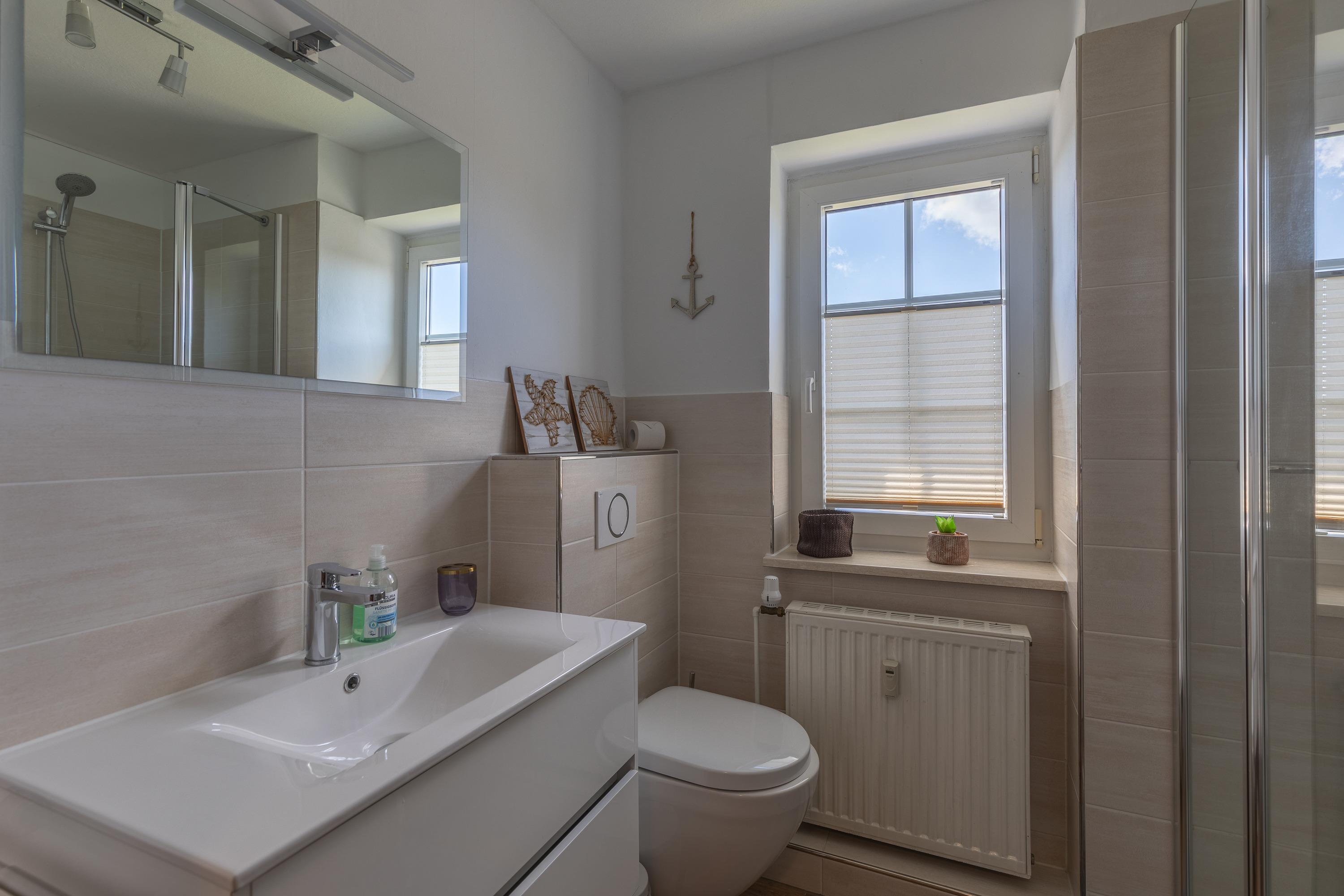 Die 3 Raum Wohnung mit einer Größe von ca. 85 m² Wohnfläche (über 2 Etagen) , ist komplett für bis zu 4 Personen ausgestattet. Im Erdgeschoss befinden sich das Wohnzimmer mit Essplatz, gemütlichem Sofa, Flatscreen TV und Zugang zur Terrasse, separate Küche mit Einbauküche (Geschirrspüler, Elektroherd, Backofen, Dunstabzugshaube, Mikrowelle, Kühlschrank mit Gefrierfach, Wasserkocher, Toaster und Kaffeemaschine), Essplatz für 4 Personen , Bad mit Dusche, WC, Waschmaschine und Fenster, im Obergeschoss befindet sich 1 Schlafzimmer mit Doppelbett, Zugang zur Loggia, Kleiderschrank und 1 Schlafzimmer mit 2 Einzelbetten.