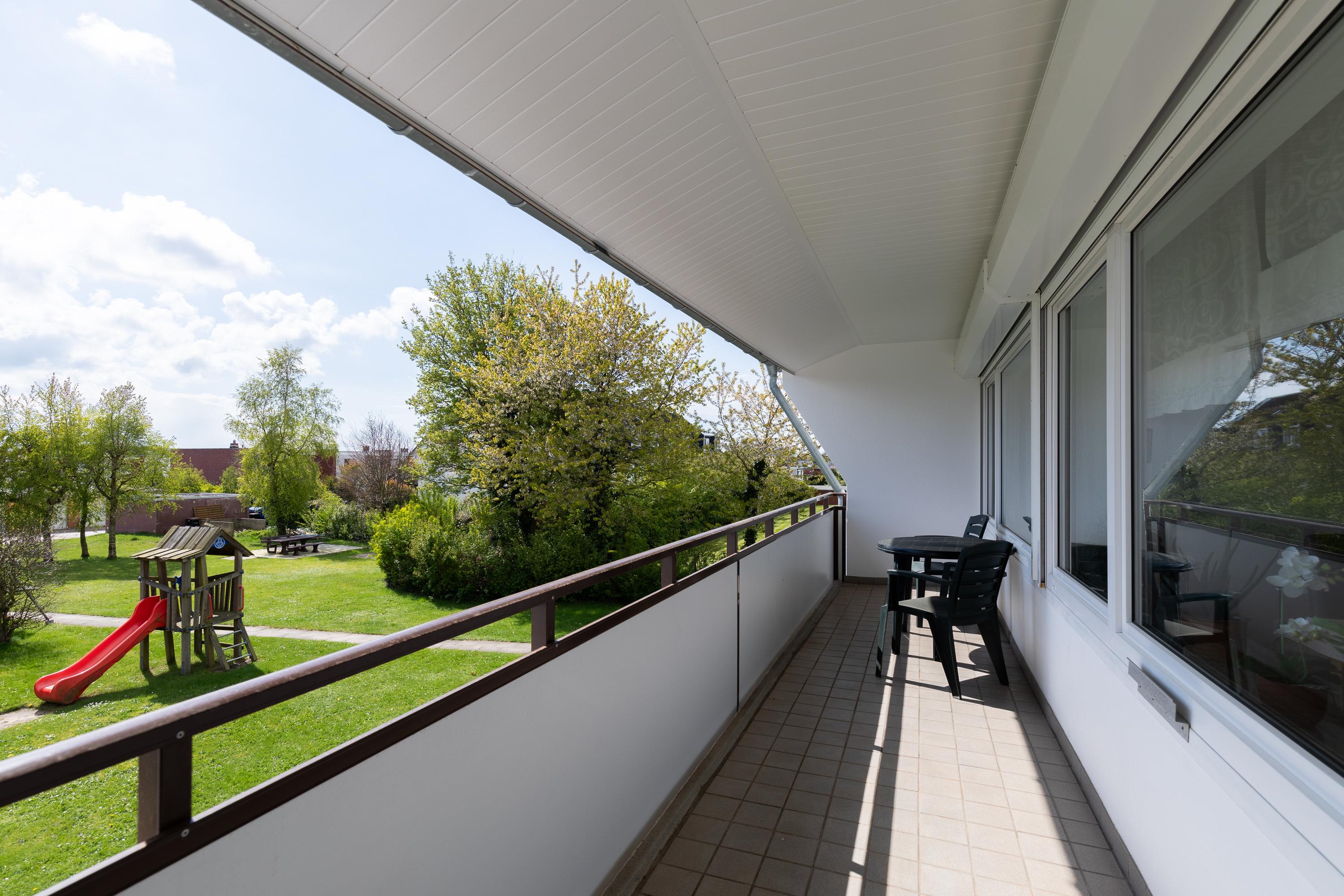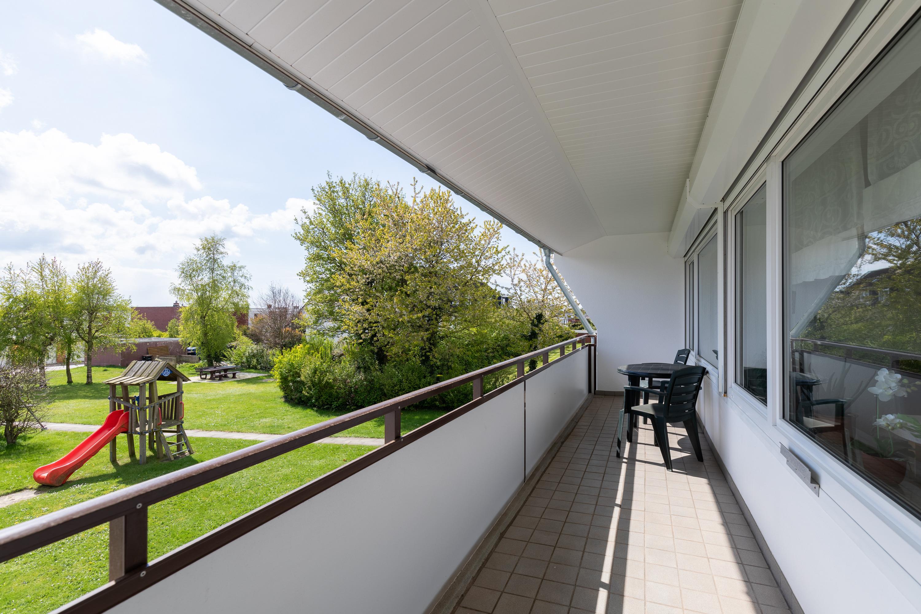 Die Wohnung im Dallacker 5 verfügt über zwei Schlafbereiche und ist ideal für eine Familie mit Kindern. Es gibt einen großen Süd-Balkon und Spielgeräte im Garten. Auch ein Stellplatz für das Auto ist vorhanden.
