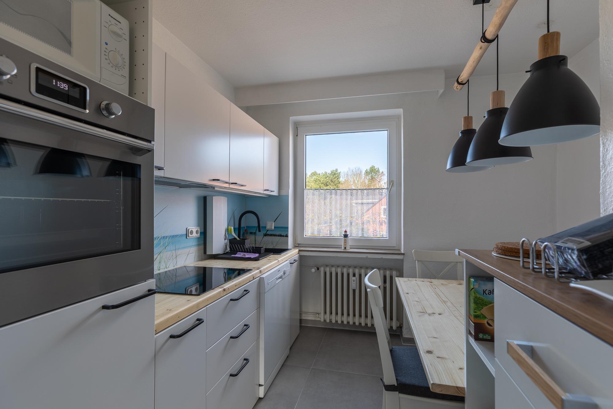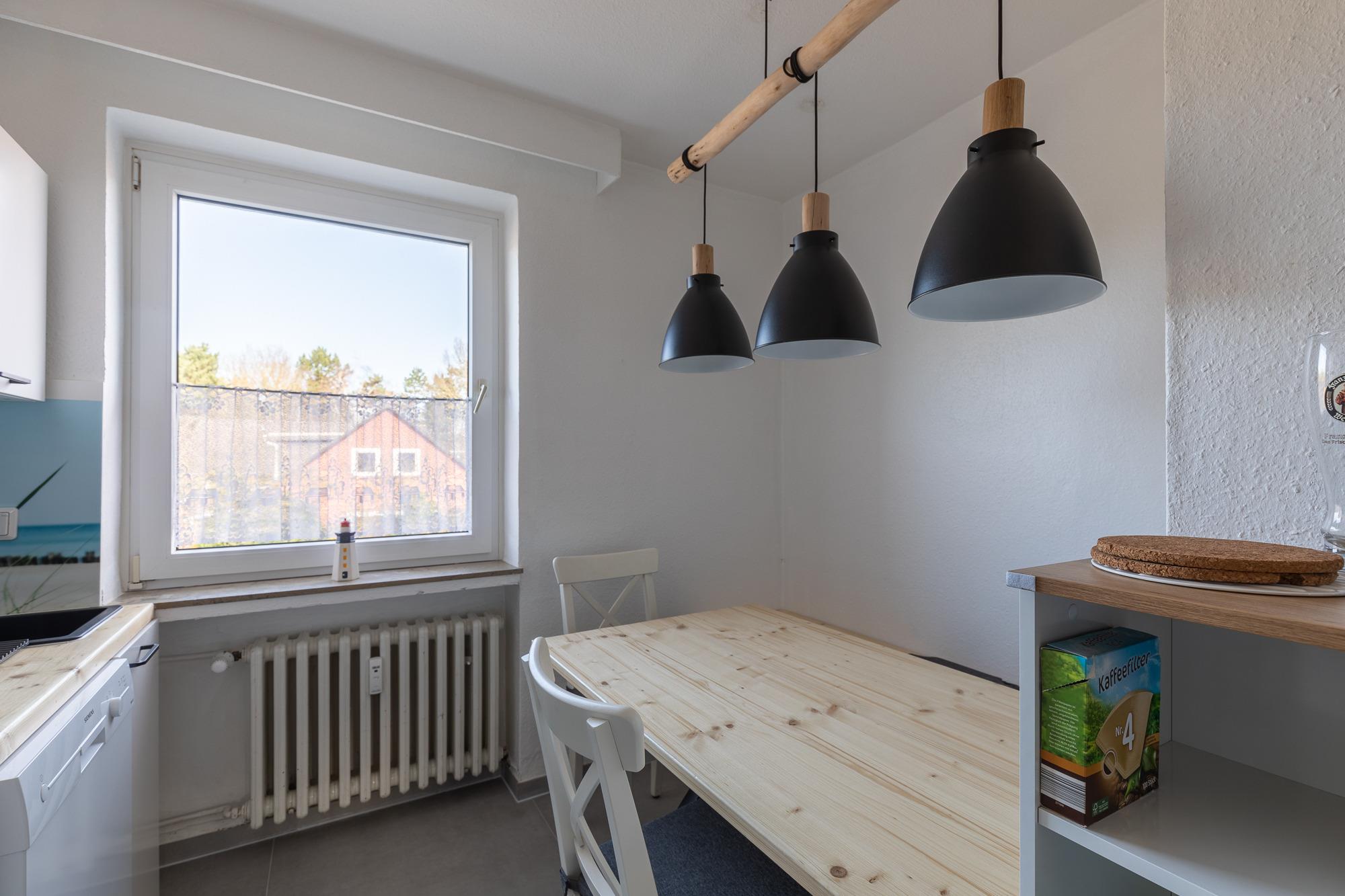 Die 3 Raum Ferienwohnung im 1. Obergeschoss mit einer Größe von ca. 75 m² Wohnfläche ist komplett bis zu 4 Personen ausgestattet.