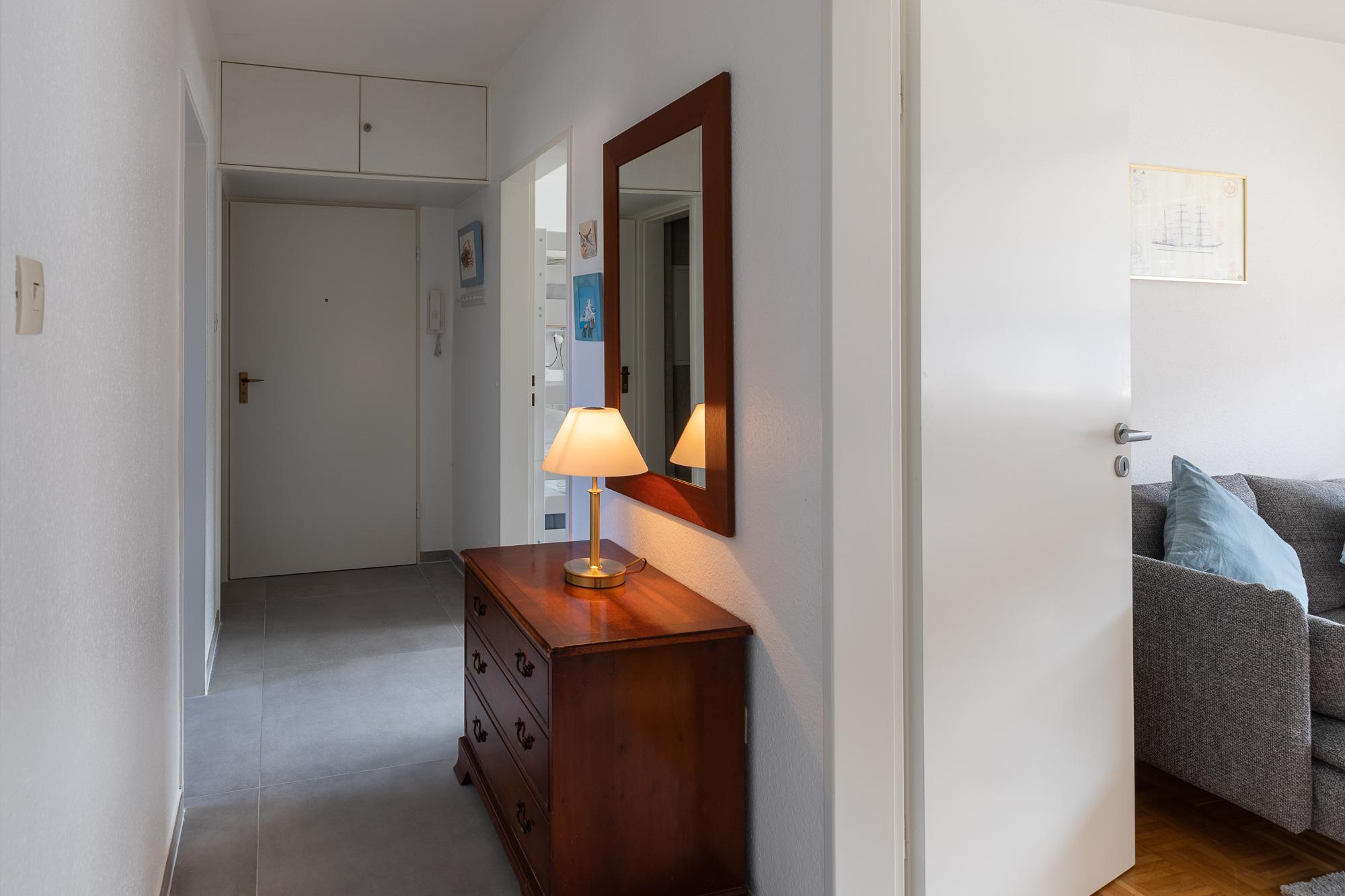 2 Schlafzimmer mit jeweils einem Doppelbett, großes Wohnzimmer mit Zugang zum großen Balkon, Küche (Backofen, 4 Plattenherd, Geschirrspüler), 1xDusche/Wanne mit WC, Waschmaschine (kostenpflichtig, mit Münzautomat),1 Flatscreen TV (Wohnzimmer), Nichtraucherwohnung, keine Haustiere.