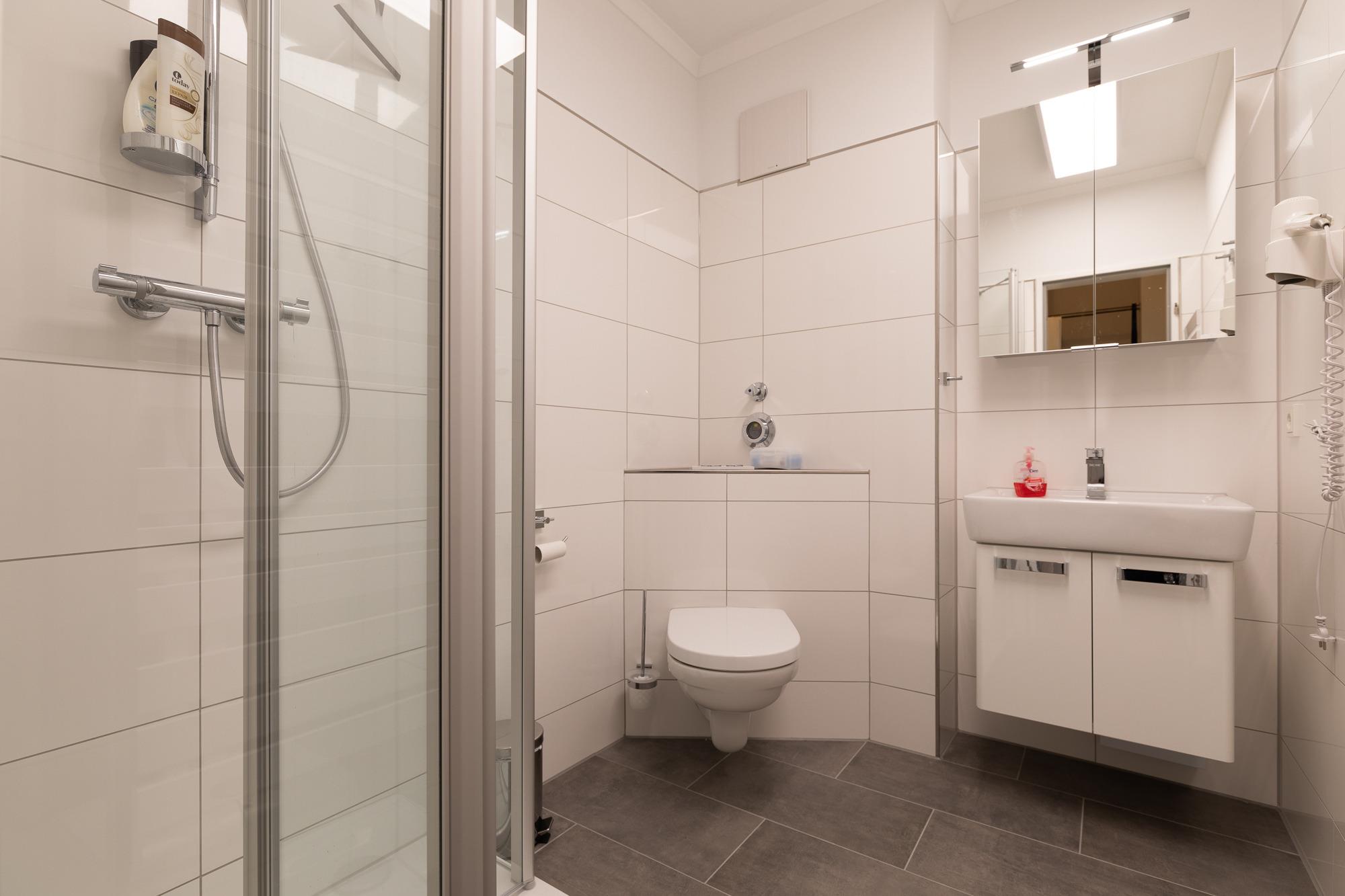 Die Ferienwohnung ist gemütlich ausgestattet mit Kabelfernsehen, Bad (Dusche/WC), Küchenzeile mit Backofen, Cerankochfeld, Geschirrspüler und einem Balkon.