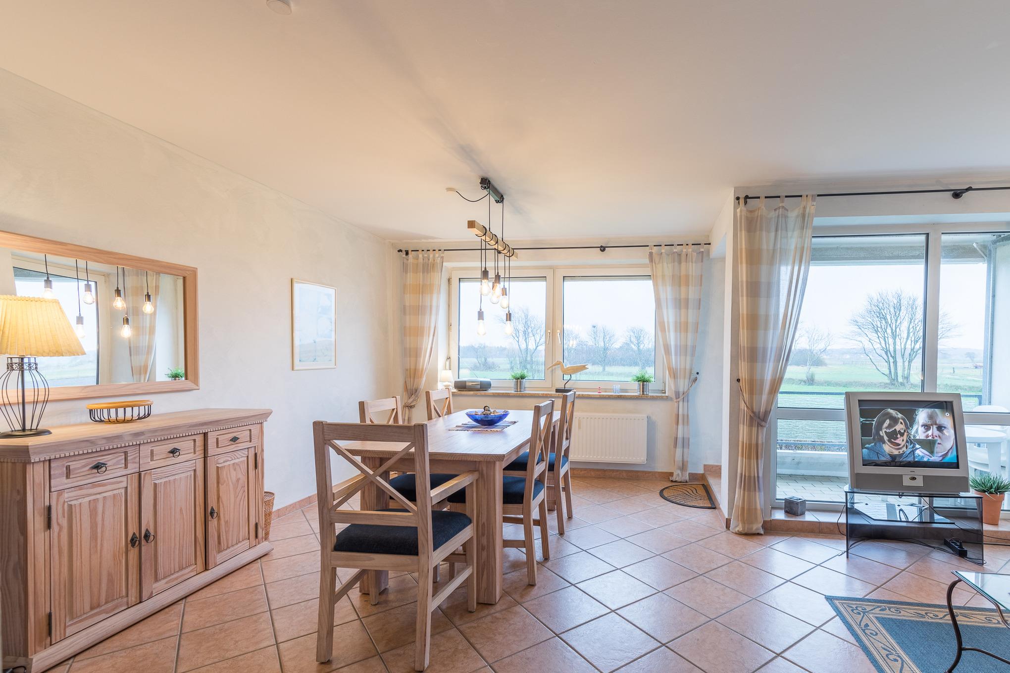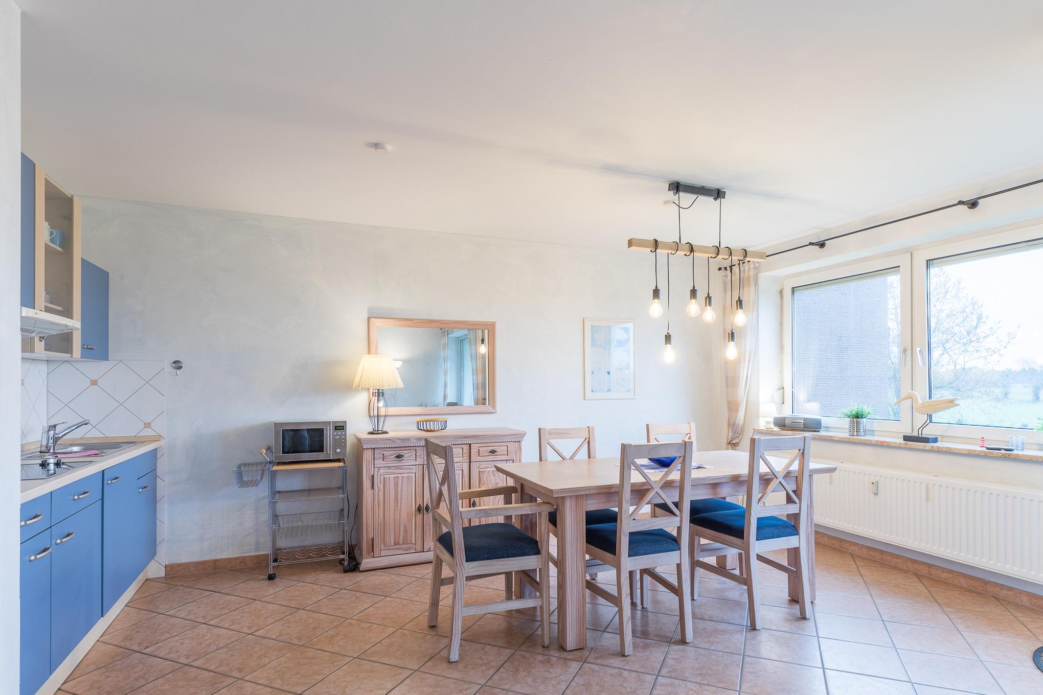Es befindet sich ein Schwimmbad im Nachbarhaus (kann kostenlos zu den Öffnungszeiten genutzt werden), Waschmaschine und Trockner geg. Gebühr im Haus, Dampfsauna und Finnische Sauna (jeweils im Nachbarhaus) geg. Gebühr. Für die kleinen steht ein Kinderspielplatz zur Verfügung. Genießen Sie die Leichtigkeit und Weitläufigkeit unserer Ferienwohnungen und die Wohlfühlatmosphäre an der Nordsee.