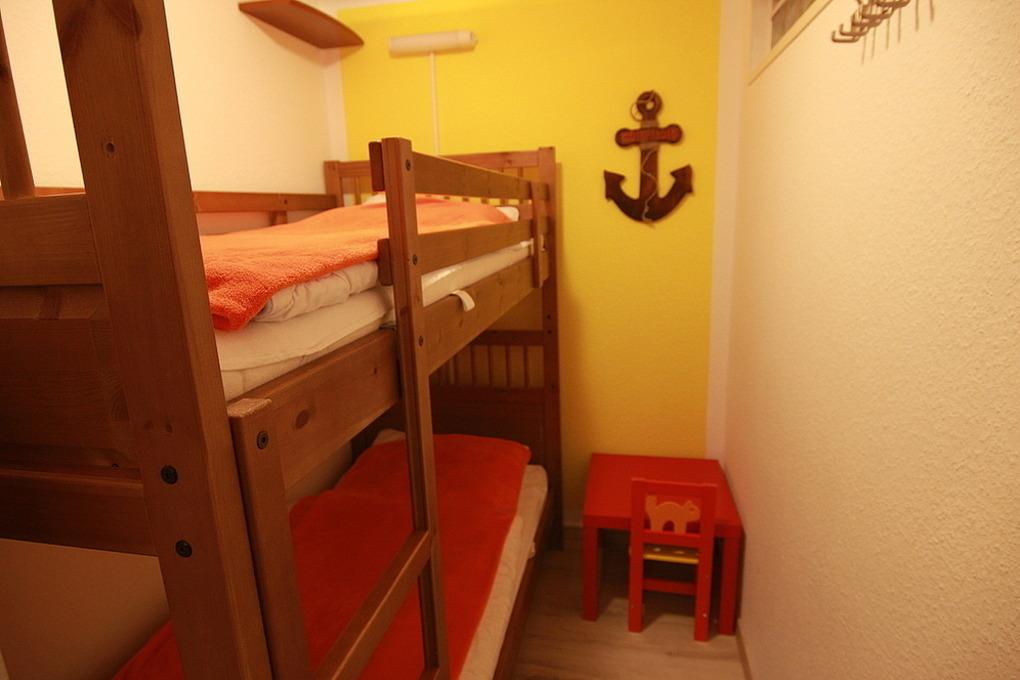 Die Wohnung ist für bis zu 4 Personen ausgestattet. 1 Schlafzimmer mit Ehebetten, 1 Schlafzimmer mit Etagenbetten ein modernes Wohnzimmer mit Korbsessel, Flatscreen TV, Mini Stereoanlage, Essplatz mit 4 Stühlen und Zugang zum Balkon (mit Gartenmöbel), Küchenzeile (Ceranfeld, Mikrowelle, Kaffeemaschine, Wasserkocher, Toaster,[nbsp][nbsp]Geschirrspüler), 1 Bad mit Dusche und WC, Flur, PKW-Stellplatz am Haus, Nichtraucher, es sind keine Tiere erlaubt.