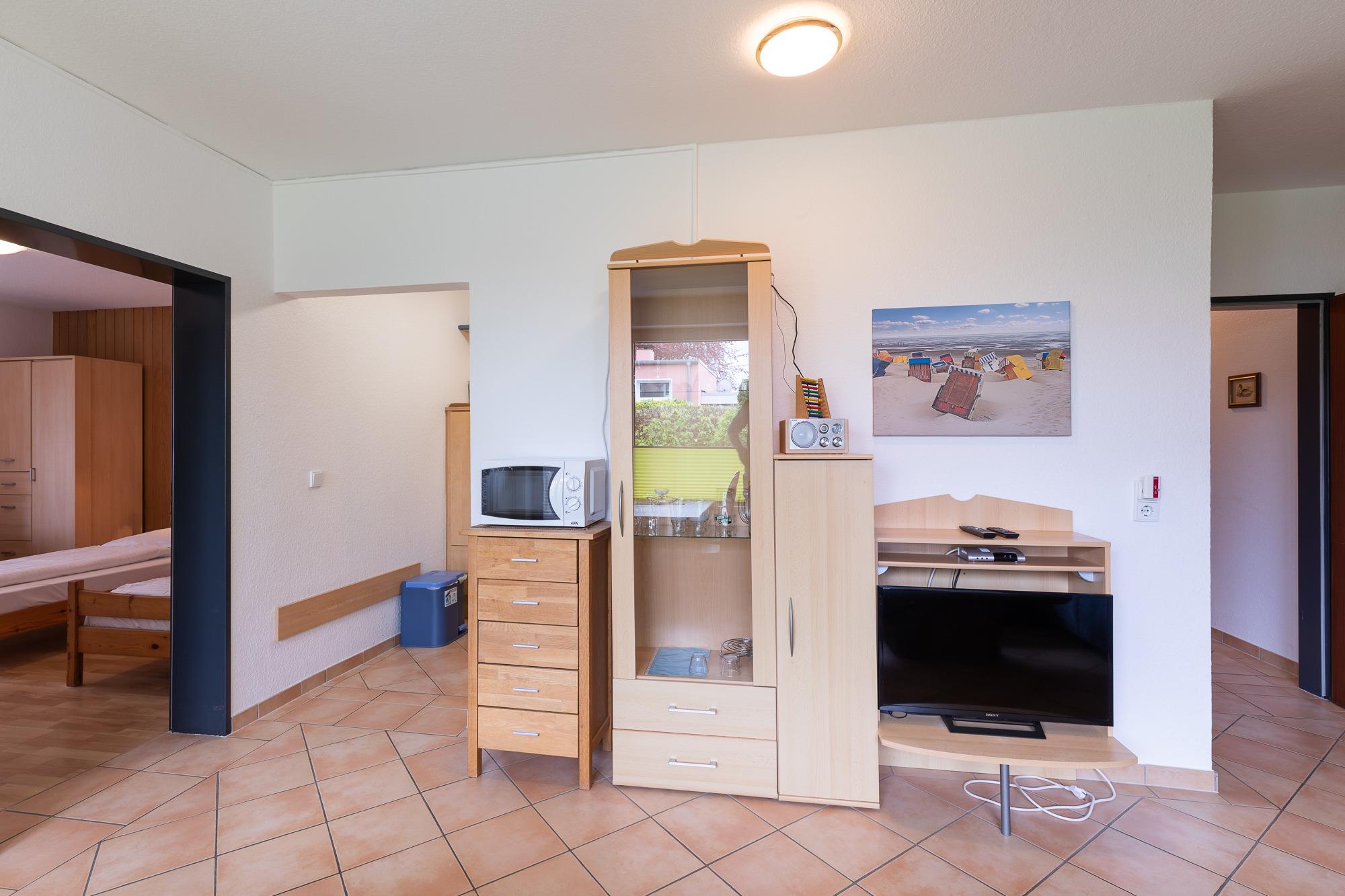 Die 3 Raum Ferienwohnung mit einer Größe von ca. 65 m² Wohnfläche ist komplett bis zu 4 Personen (1 Zustellbett ist möglich) ausgestattet.