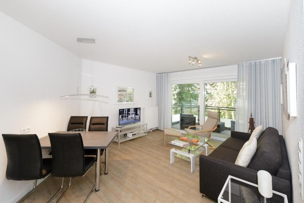 Gemütliche 2-Raum-Wohnung auf der 1. Etage, zentrumsnah in Duhnen. Vollständige Küchenzeile mit Mikrow, Backofen, Geschirrspüler etc. Wohnzimmer mit Schlafcouch und Westbalkon (mit Balkonmöbeln [&] Sonnenschirm, saisonabhängig) , 2x SAT-TV, Stereoanlage, kostenfreies W-Lan, separates Schlafzimmer mit Außenjalousien, allergikerfreundlich, ebenerdige Dusche/WC, reservierter Pkw-Stellplatz in ebenerdiger Doppelgarage #5, eigener Kellerraum mit Lademöglichkeit für eBikes,[nbsp][nbsp]keine Haustiere und natürlich Nichtraucher.