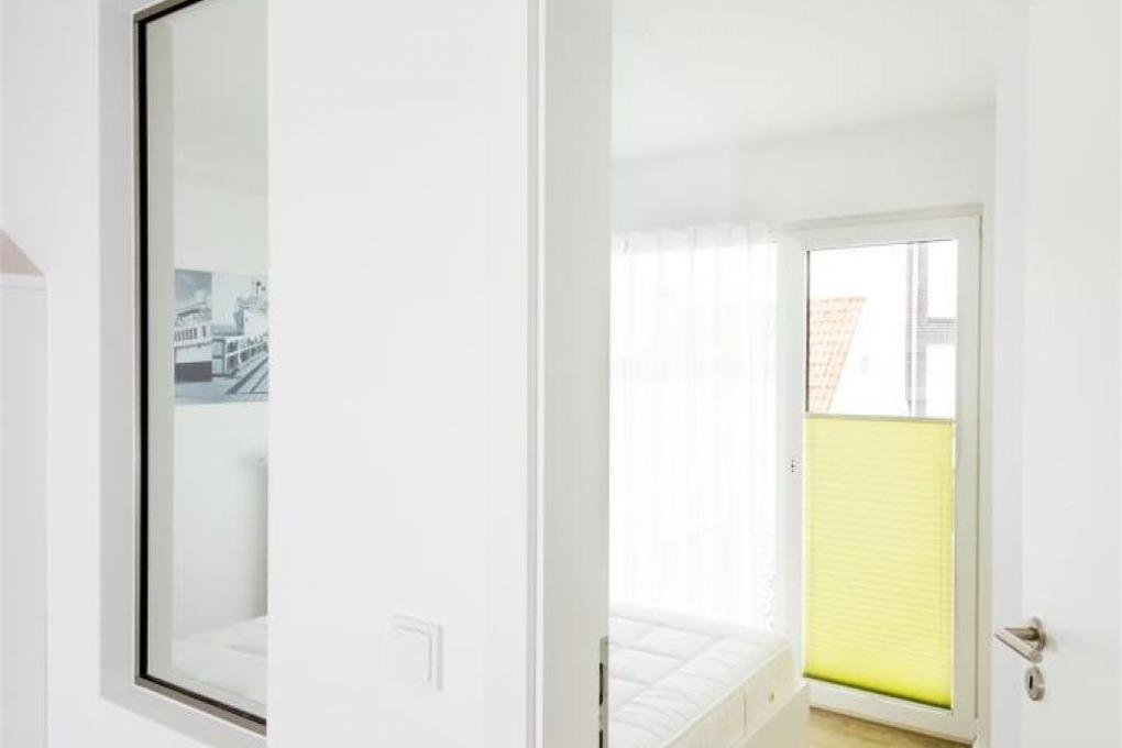 Sehr schöne, moderne 3-Raum-Wohnung bis 4 Pers. (62m²), 1.Etage, 2 Schlafzimmer mit Doppelbetten und Außenjalousien, Wohnzimmer mit großer Küchenzeile (Back., Mikrow., Geschirrspüler) 2xSAT-TV, Blue-Ray, CD-Radio, W-LAN kostenlos, 1x ebenerdige Dusche/WC,1 großer Balkon (süd), Personenaufzug, reservierter Pkw-Stellplatz hinter dem Haus, keine Haustiere erlaubt, Nichtraucher.