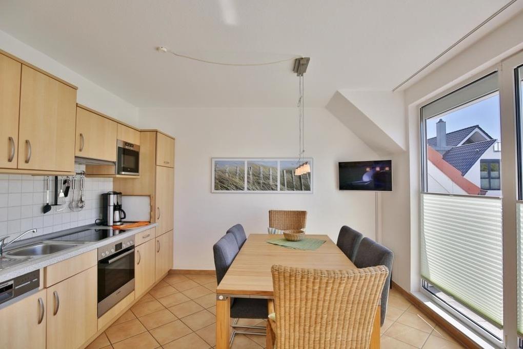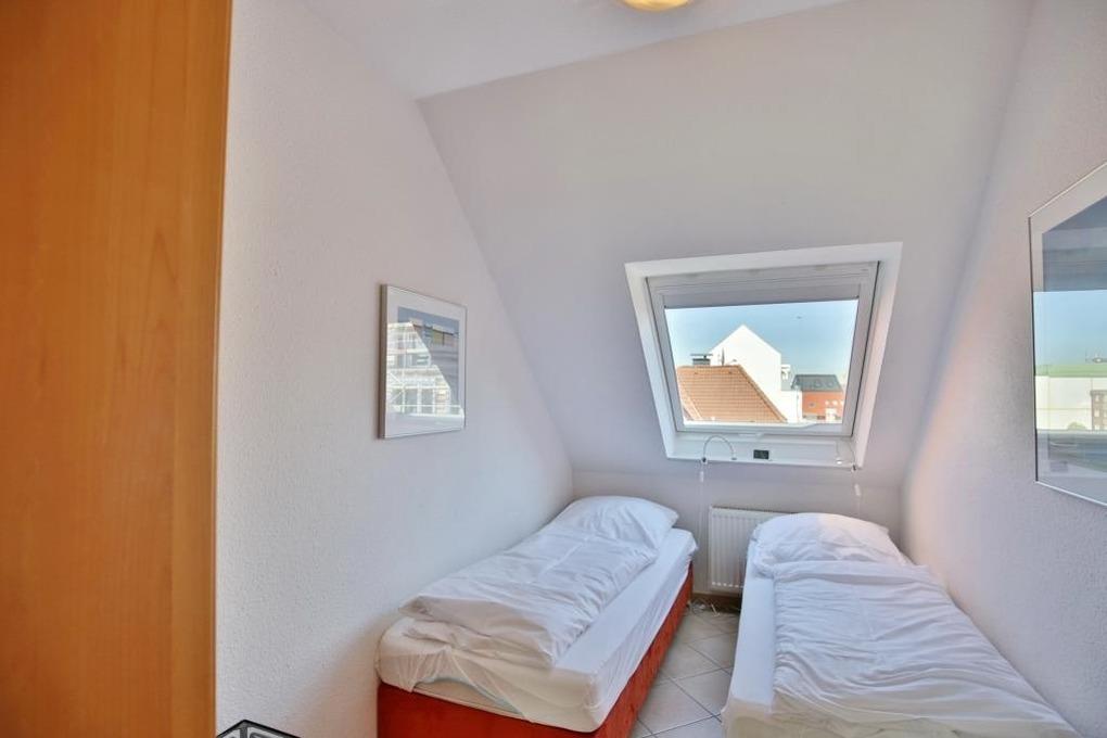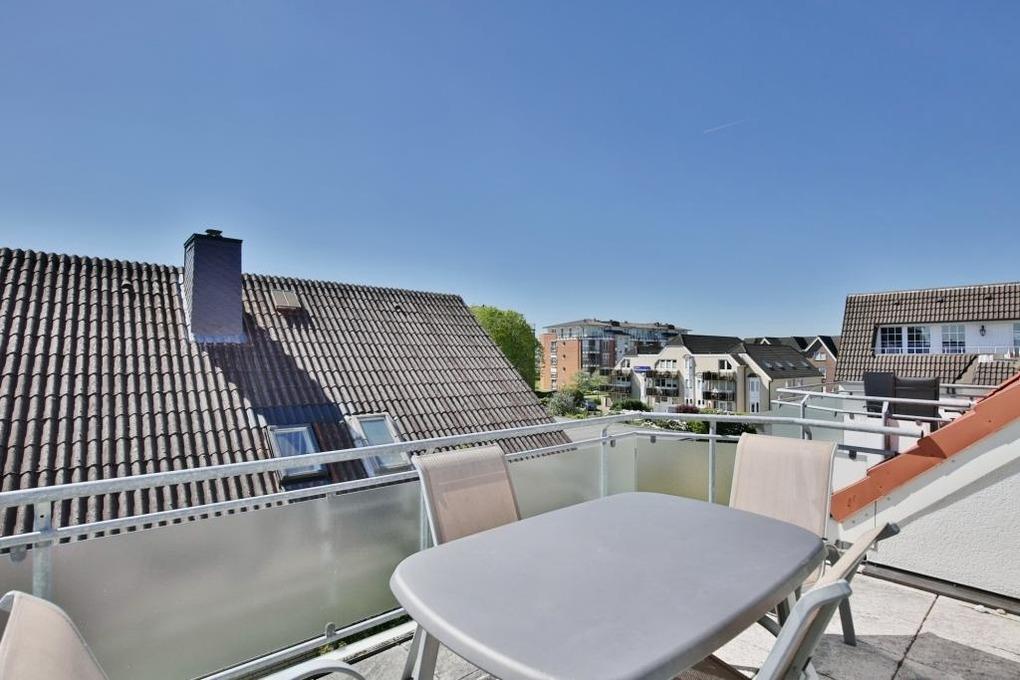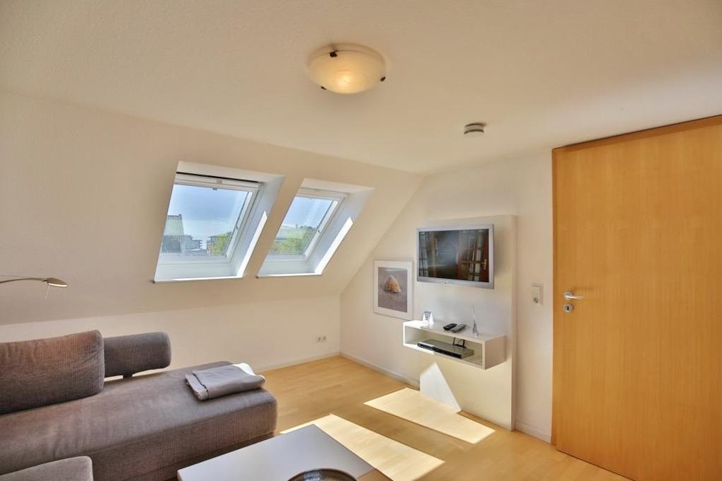 Schöne 4-Raum Wohnung 2.OG+DG, ca.65m², 1 Schlafzimmer mit Doppelbett, 1 Schlafzimmer mit zwei Einzelbetten, Wohnzimmer mit Küchenzeile (Backofen, Mikrowelle, Geschirrspüler, Senseo), Fernsehzimmer im DG, 2xKabel-TV, DVD, W-Lan kostenlos, Dusche/WC, Föhn, 2 Balkone (ost+west mit Balkonmöbeln [&] Sonnenschirm, saisonabhängig), Rollläden an Wohn- u. Schalfzi., Nichtraucher, keine Haustiere, reservierter Stellplatz in der Tiefgarage.