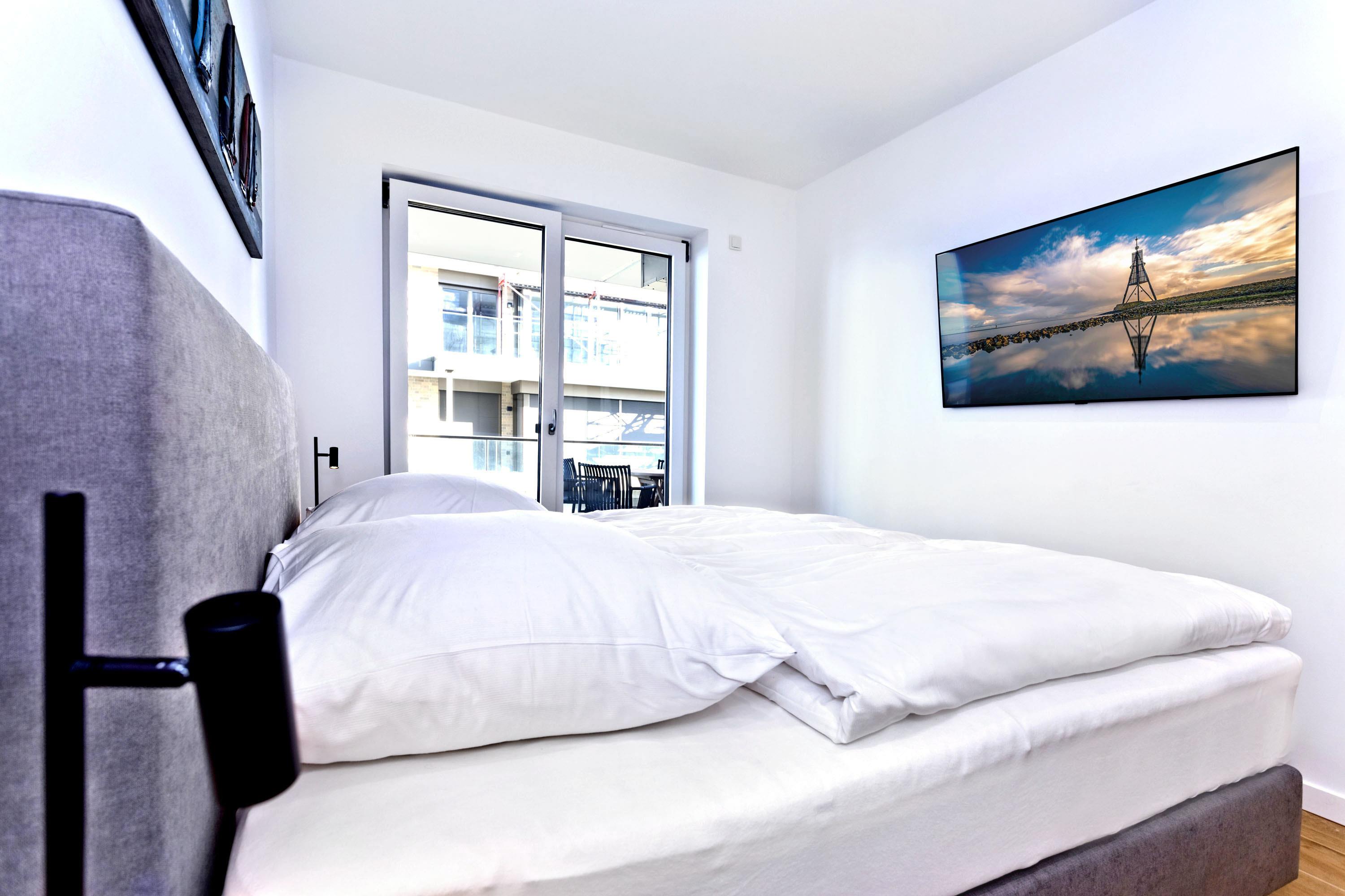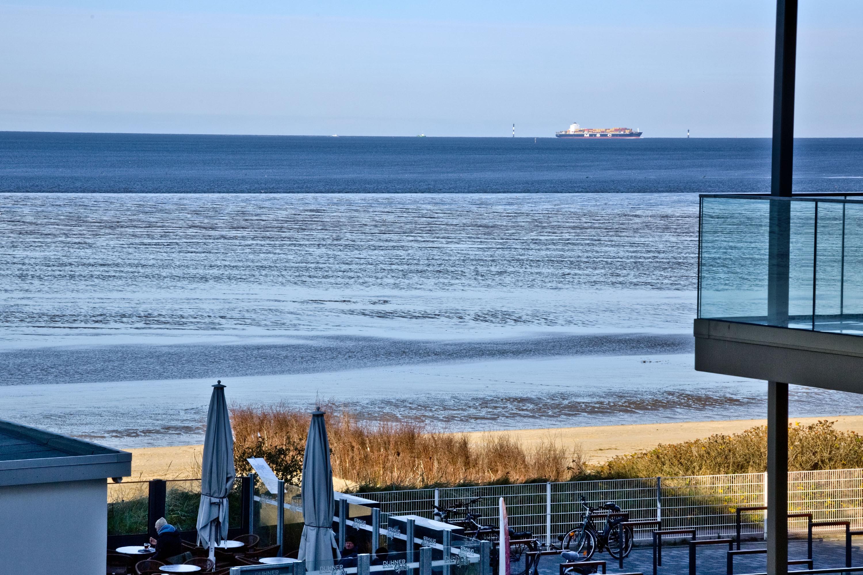 Großzügige 3-Raum-Seesichtwohnung mit 100m² auf der 2. Etage direkt an der Duhner Spitze für bis zu 4 Personen. Großes Wohnzimmer mit TV, abgetrennte Küchenzeile mit Vollausstattung (Geschirrspüler, Gefrierschrank etc.), 2 Schlafzimmer mit Doppelbetten (1x mit TV) und Rollläden, 1xDU/WC, kleine Infrarot-Sauna u. Waschmaschine i.d. Wohnung. Ein Highlight ist der große Balkon über Eck (süd-ost) mit Seesicht und Sonne (eine Seltenheit in Cuxhaven). Komfortabler Pkw-Stellplatz #86 in der Tiefgarage. Personenaufzug, keine Haustiere gestattet und natürlich handelt es sich um eine[nbsp] Nichtraucherwohnung,
