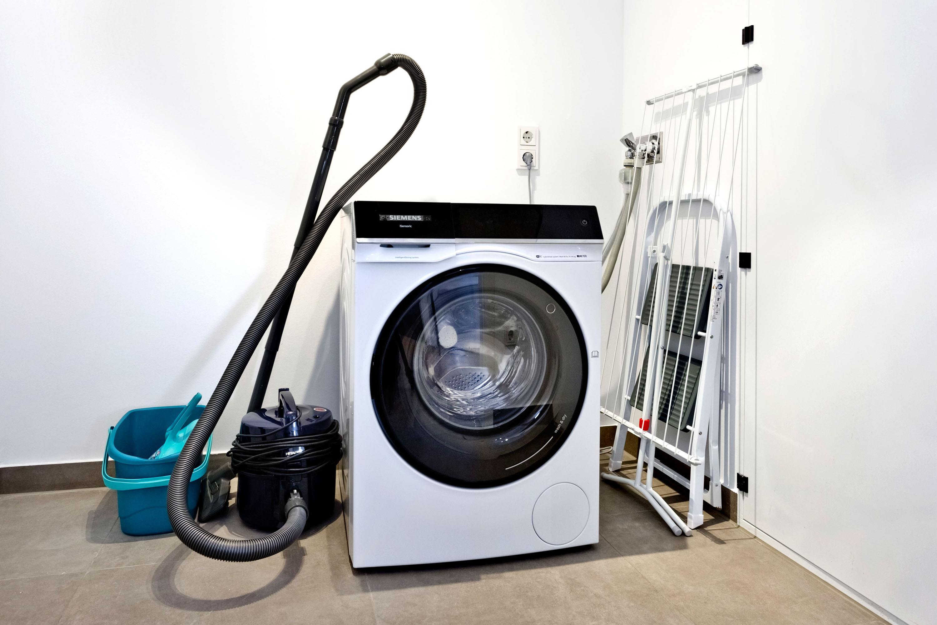 Hauswirtschaftsraum in der Wohnung mit eigener Waschmaschine, Bügeleisen/Bügelbrett.