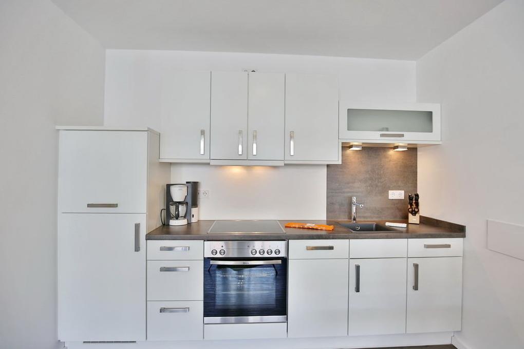 Tolle 2-Raum-Ferienwohnung in der 2.Etage für bis zu 3 Personen. Die vollständige Küchenzeile mit Mikro, Back., Geschirrsp. etc. garantiert höchsten Komfort. 2xSAT-TV, CD-Kompaktanlage, USB-Steckdosen, kostenloses W-Lan, separates Schlafzimmer mit hochwertigen Boxspringbetten, Schlafcouch für die 3. Pers., allergikerfreundlich, ebenerdige Dusche/WC, Föhn, großer Westbalkon mit Balkonmöbeln und Sonnenschirm (saisonabhängig), Tiefgaragenstellplatz (3m breit), keine Haustiere und natürlich Nichtraucher. Bettwäsche u. Handtücher inkl., Lage:2.OG