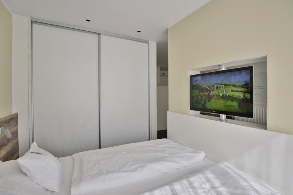 Wohlfühlurlaub...in den hochwertigen Boxspringbetten garantiert. Terrasse (nord/ost), vollständige Küchenzeile mit Mikrow., Geschirrspüler etc., SAT-TV (drehbar), CD-Kompaktanlage, USB-Steckdosen, kostenloses W-Lan, allergikerfreundlich, ebenerdige Dusche/WC, Föhn, Pkw-Stellplatz auf dem Gelände, keine Haustiere und natürlich Nichtraucher. Bettwäsche u. Handtücher inkl., Lage:EG