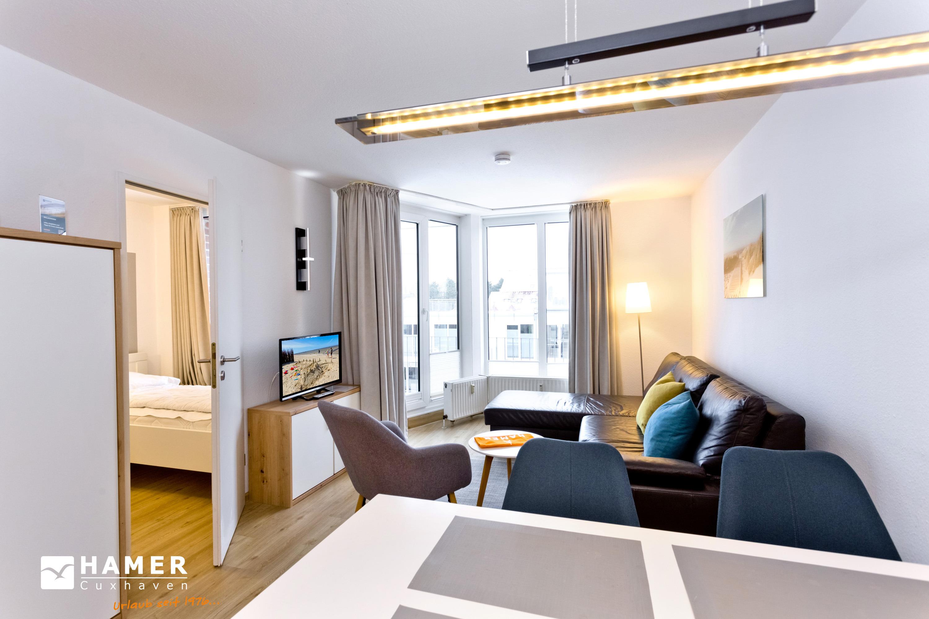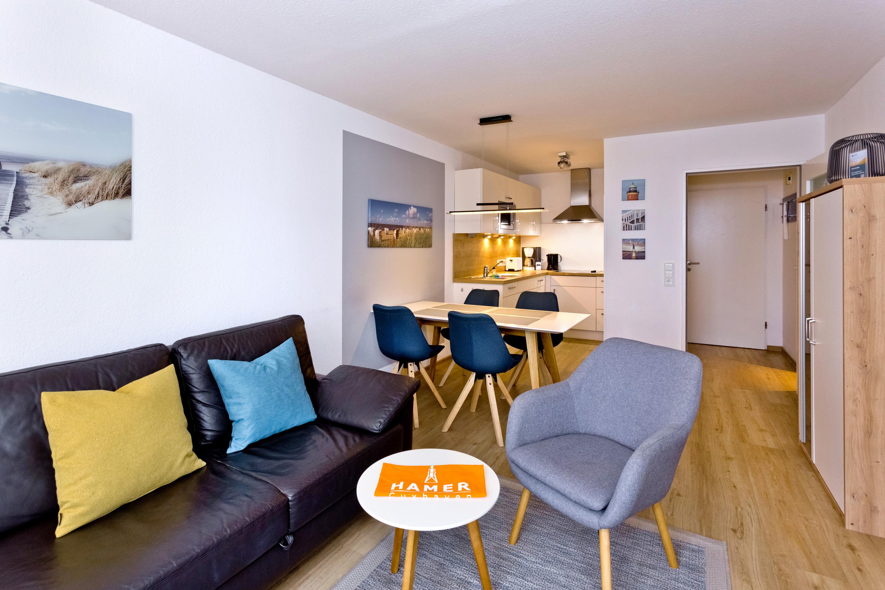 Komfortable 2-Zimmer-Ferienwohnung in Duhnen mit Seeblick und Strandkorb am Sandstrand.