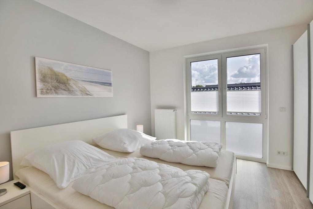 Tolle Ferienwohnung über ca. 68m² bis 4 Pers. im 2.OG mit Personenaufzug. Balkon (süd), 2 Schlafzimmer jeweils mit eigenem TV (1x Doppelbett und 1x 2 Einzelbetten), Wohnzimmer mit vollständiger Küchenzeile (Geschirrspüler, Gefrierfach, Backofen, Mikrowelle), TV, Blue-Ray-DVD, kostenfreies W-LAN, ebenerdige Dusche/WC mit Föhn, Rollladen, reservierter Pkw-Stellplatz #9 am Haus, Nichtraucherwohnung, keine Haustiere gestattet.