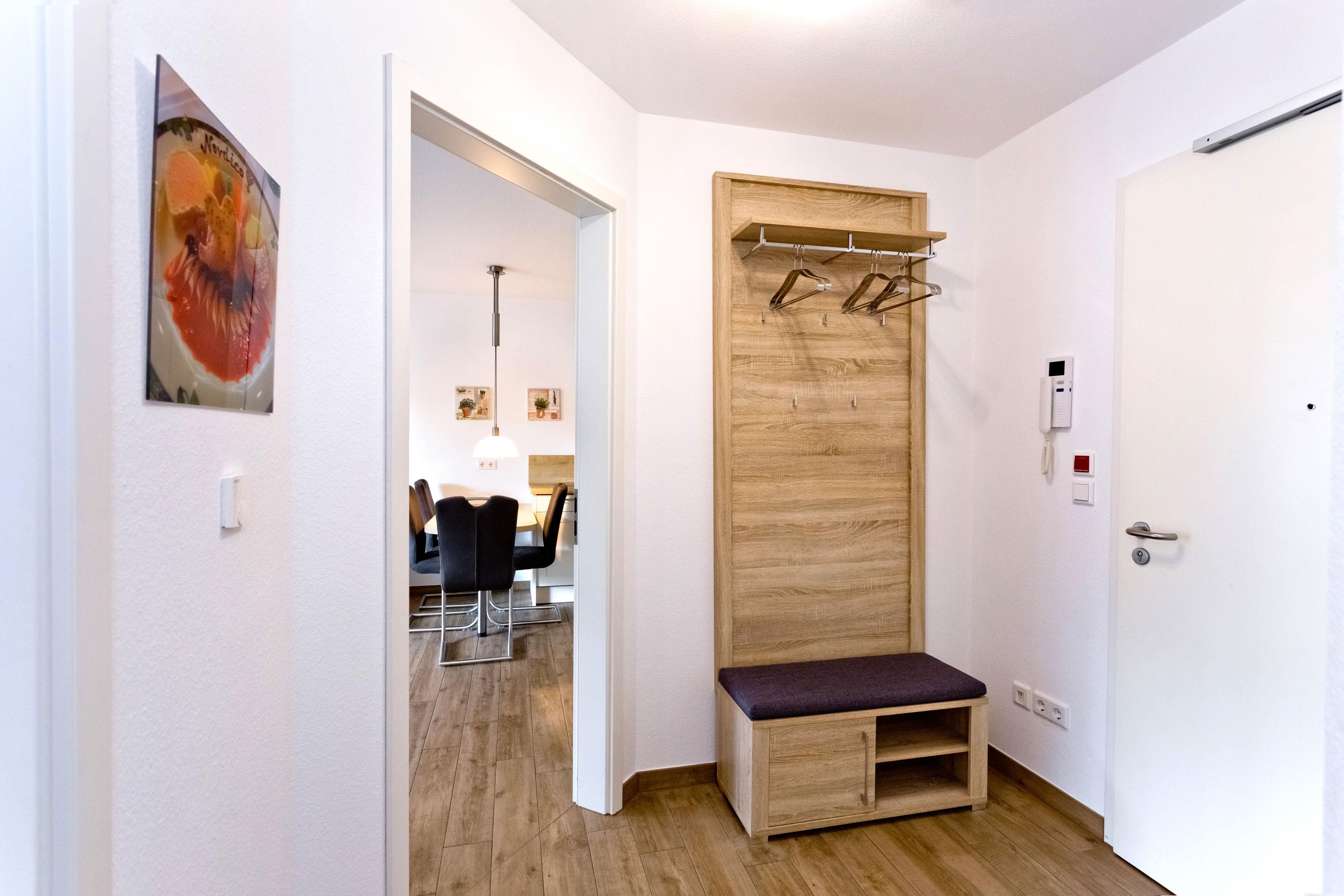 Die angebotene Wohnung befindet sich im 1. Obergeschoss und verfügt über eine Wohnfläche von ca. 49 m². Sie ist vollständig ausgestattet und bietet Platz für bis zu 4 Personen. Zur Verfügung stehen ein Schlafzimmer mit einem Doppelbett, ein gemütlicher Wohn- und Schlafraum mit einer Schlafcouch, ein separater Essplatz sowie ein SAT-TV. Die Küchenzeile ist mit 4 Herdplatten, einem Backofen, einem Wasserkocher, einem Toaster, einem Kühlschrank mit Gefrierfach, einer Mikrowelle, einer Spülmaschine und einer Kaffeemaschine ausgestattet. Ein Bad mit Dusche und WC sowie ein Föhn sind ebenfalls vorhanden. Die Wohnung ist für Nichtraucher und Haustiere sind nicht erlaubt. Zum Parken steht ein nummerierter Stellplatz hinter dem Haus zur Verfügung (Durchfahrtshöhe 2 m). Außerdem gibt es ein abschließbares Fahrradhaus.