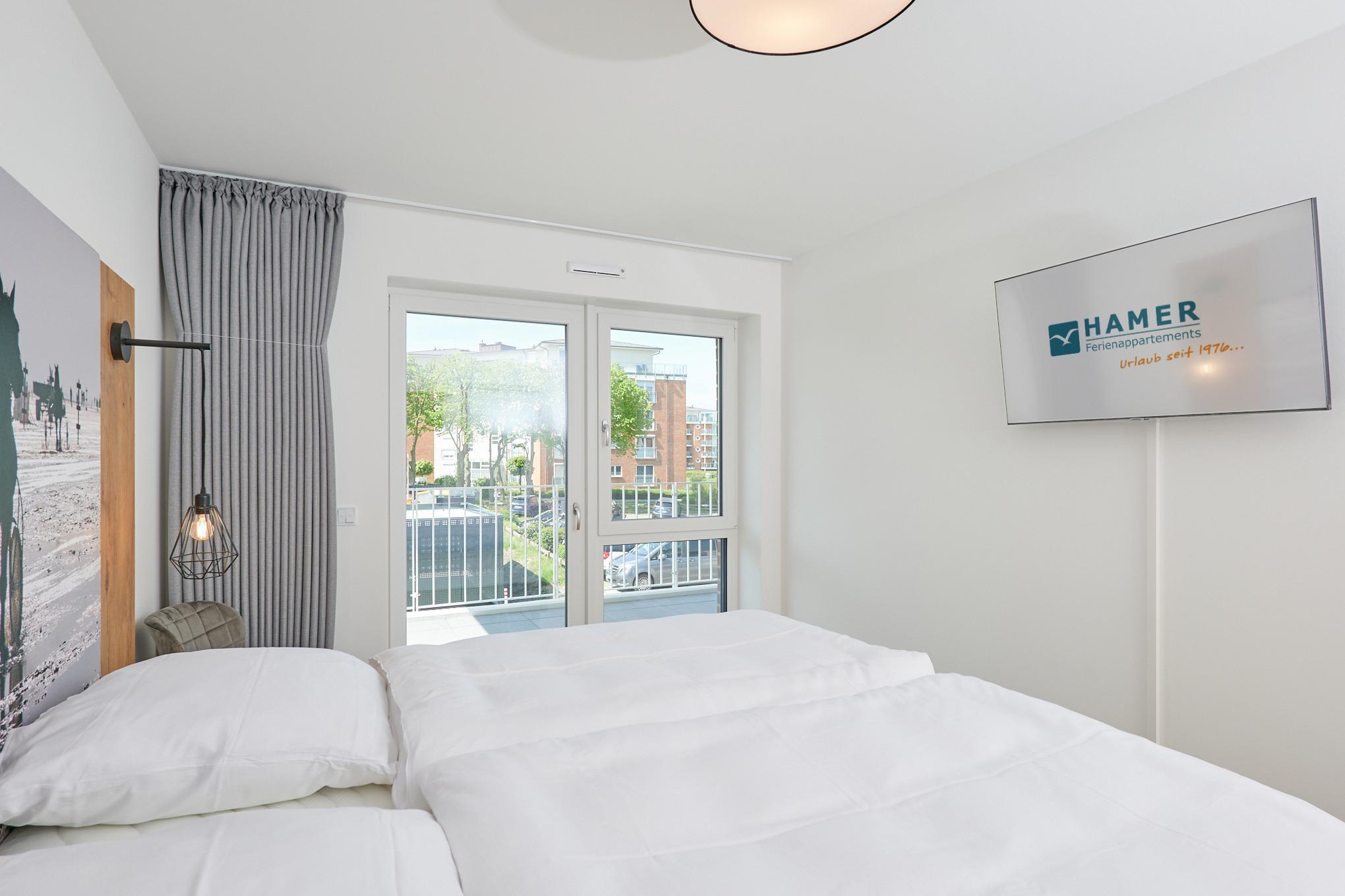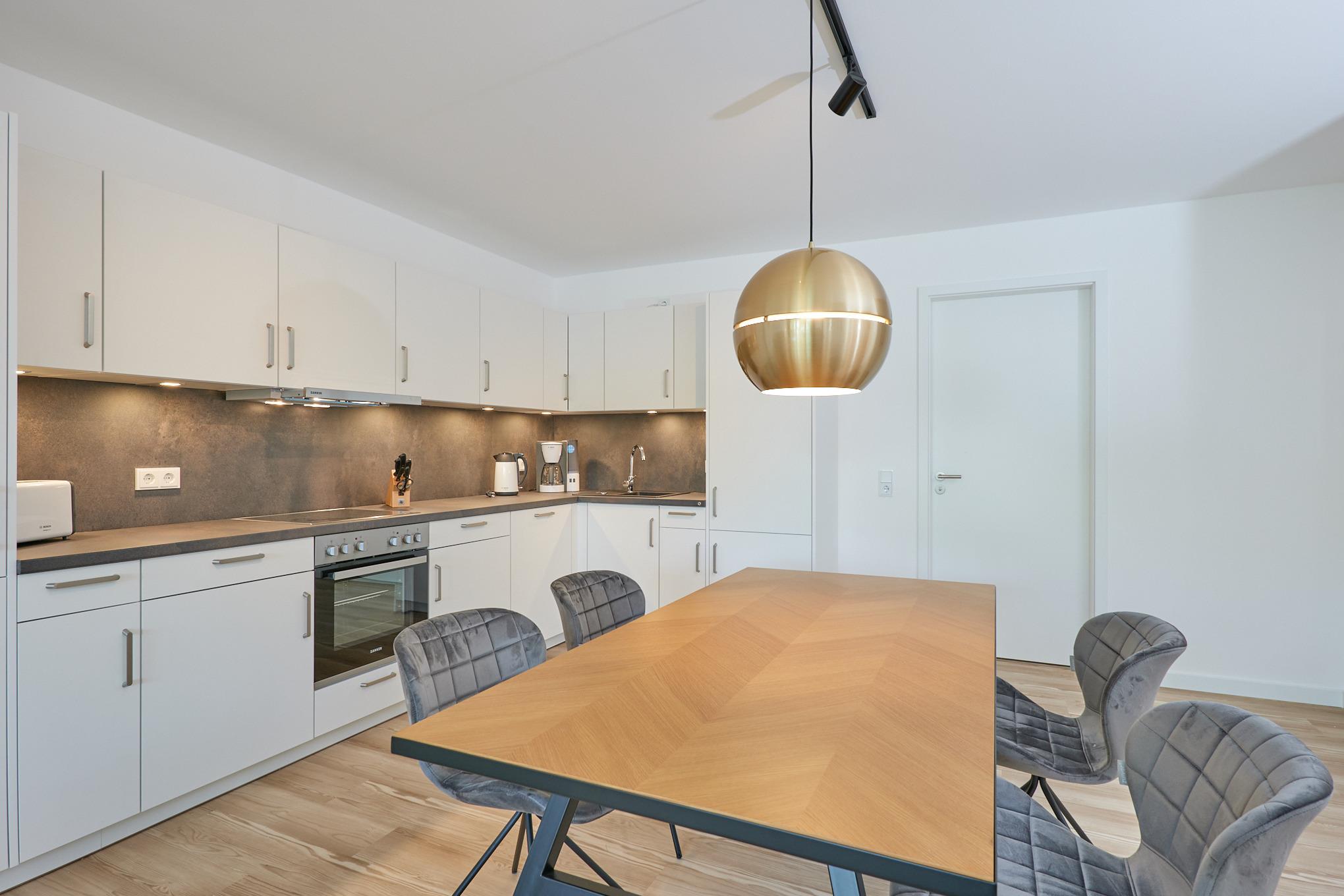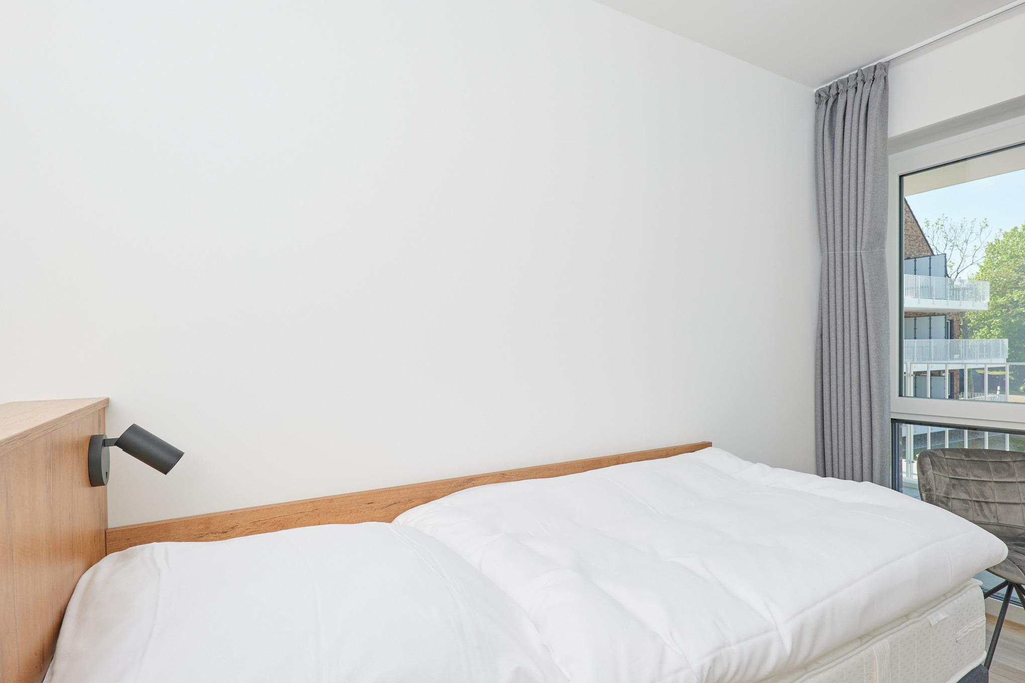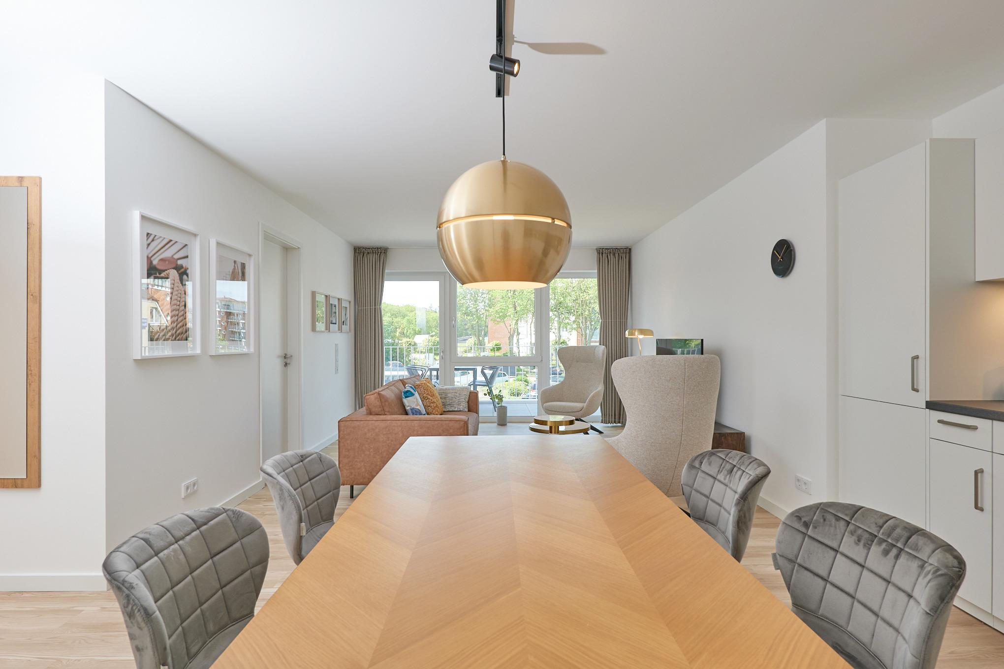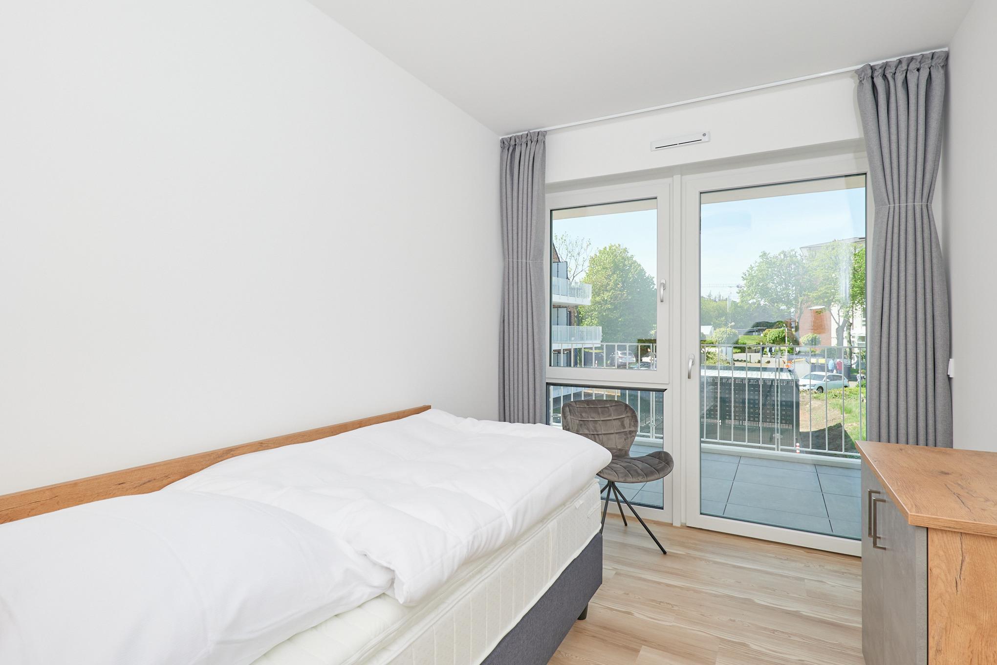 Neubau Mai 2023! Sehr schöne, moderne 3-Raum-Wohnung bis 4 Pers. voll ausgestattet auf ca. 89 m² in der 2.Etage gelegen, 2 Schlafzimmer (1x Doppelbett, 1x 2 Einzelbetten) und Außenjalousien an allen Fenstern, ebenerdige Dusche/WC, Wohnzimmer mit großer Küchenzeile (Backofen, Geschirrspüler, Mikrowelle), 2x Kabel-TV, Radio, kostenfreies W-LAN-Internet, großer Balkon (west) mit Teilseesicht, Personenaufzug, reservierter Pkw-Stellplatz in der Tiefgarage inkl., es sind keine Haustiere erlaubt und natürlich Nichtraucher. Durchfahrtshöhe Tiefgarage: 2,05m.