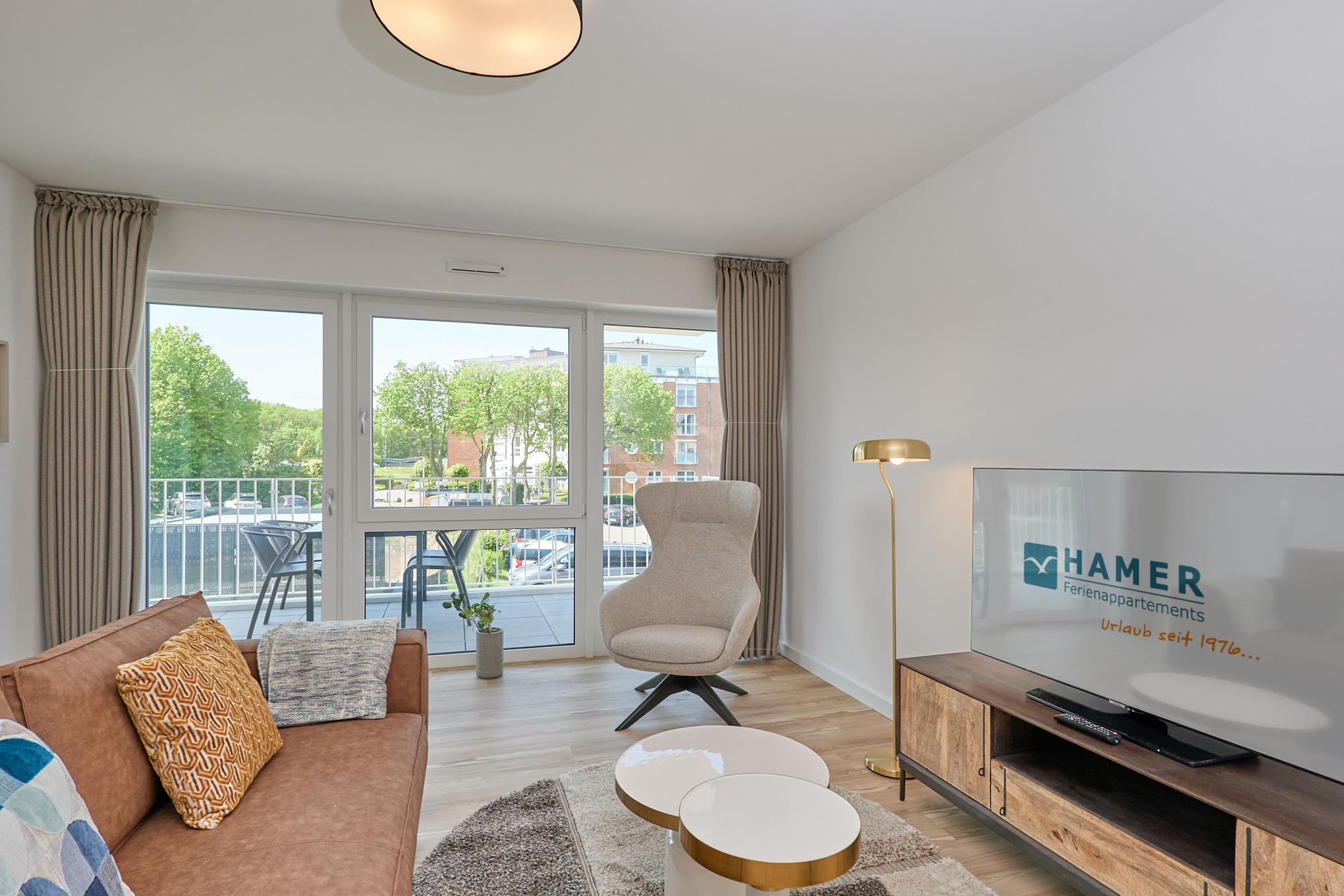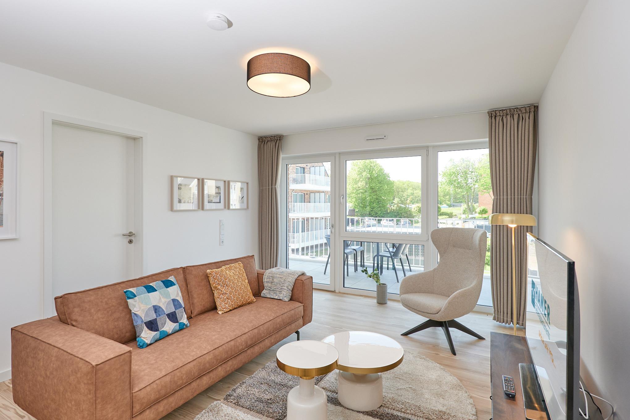Moderne 3-Raum-Ferienwohnung in Duhnen mit Balkon und Teilseesicht, voll ausgestattet, Neubau 2023.