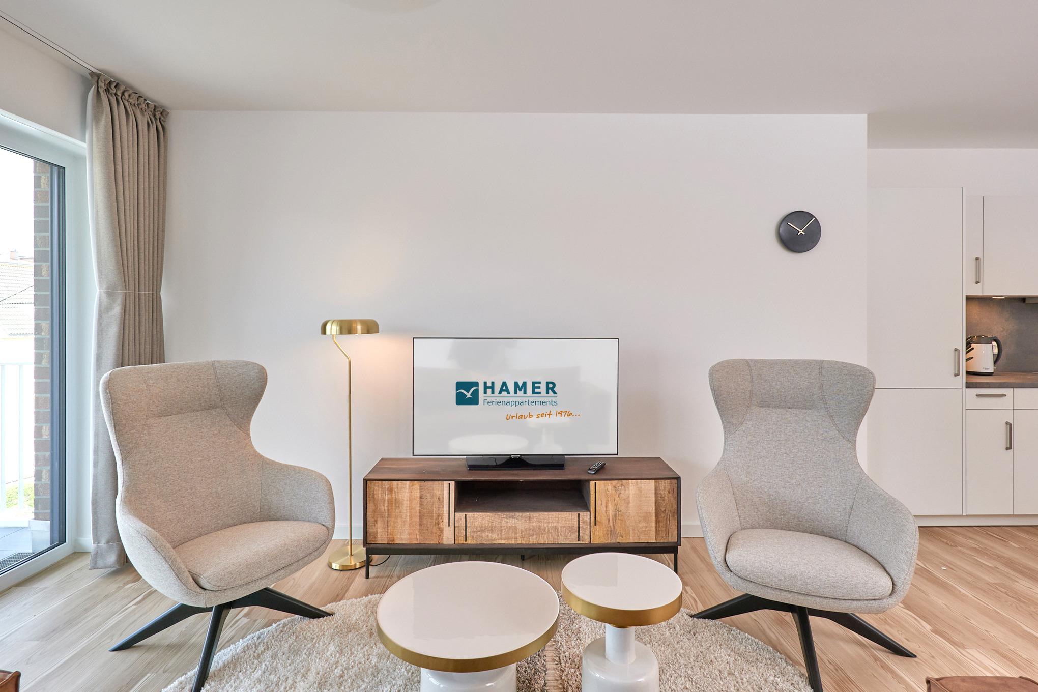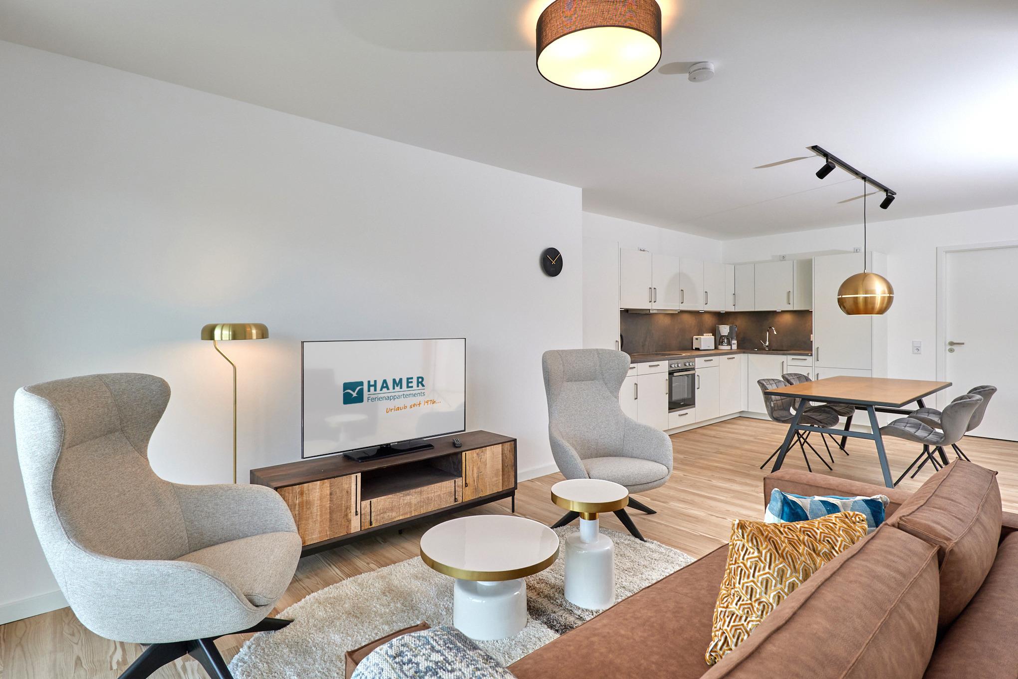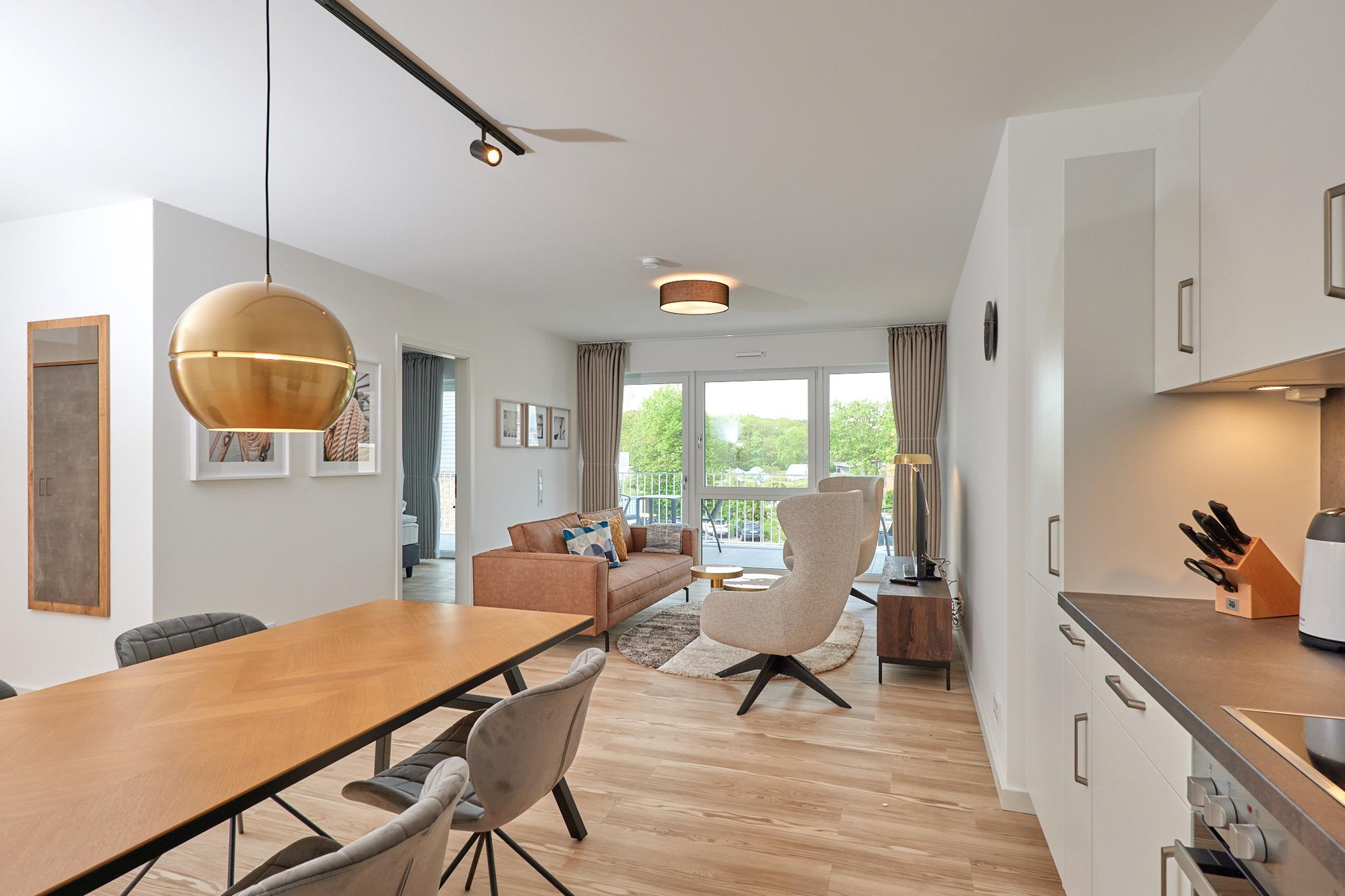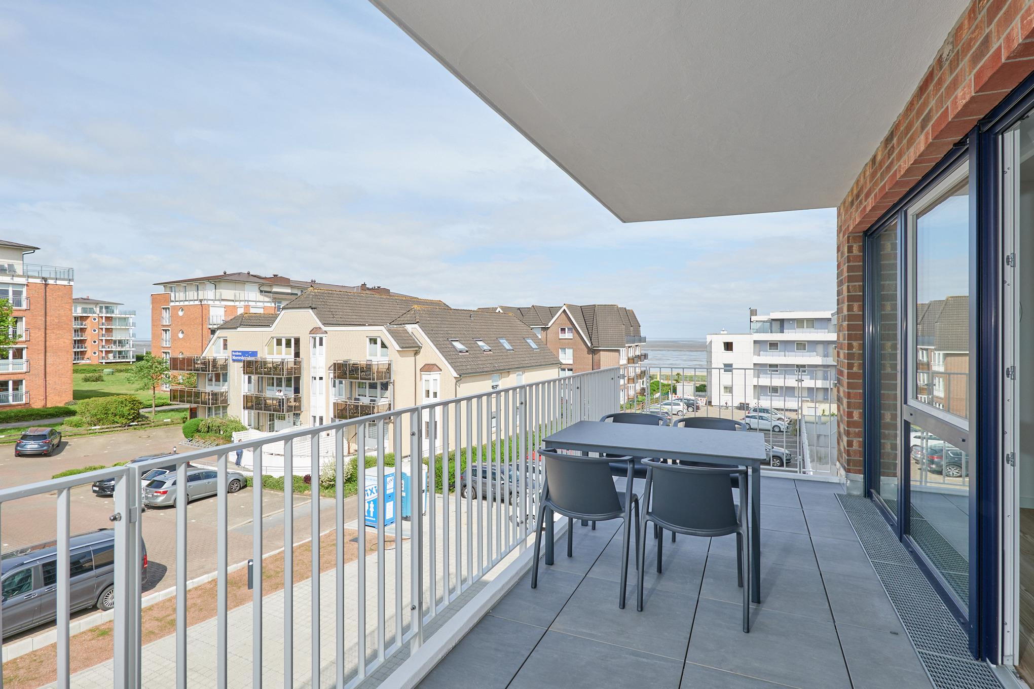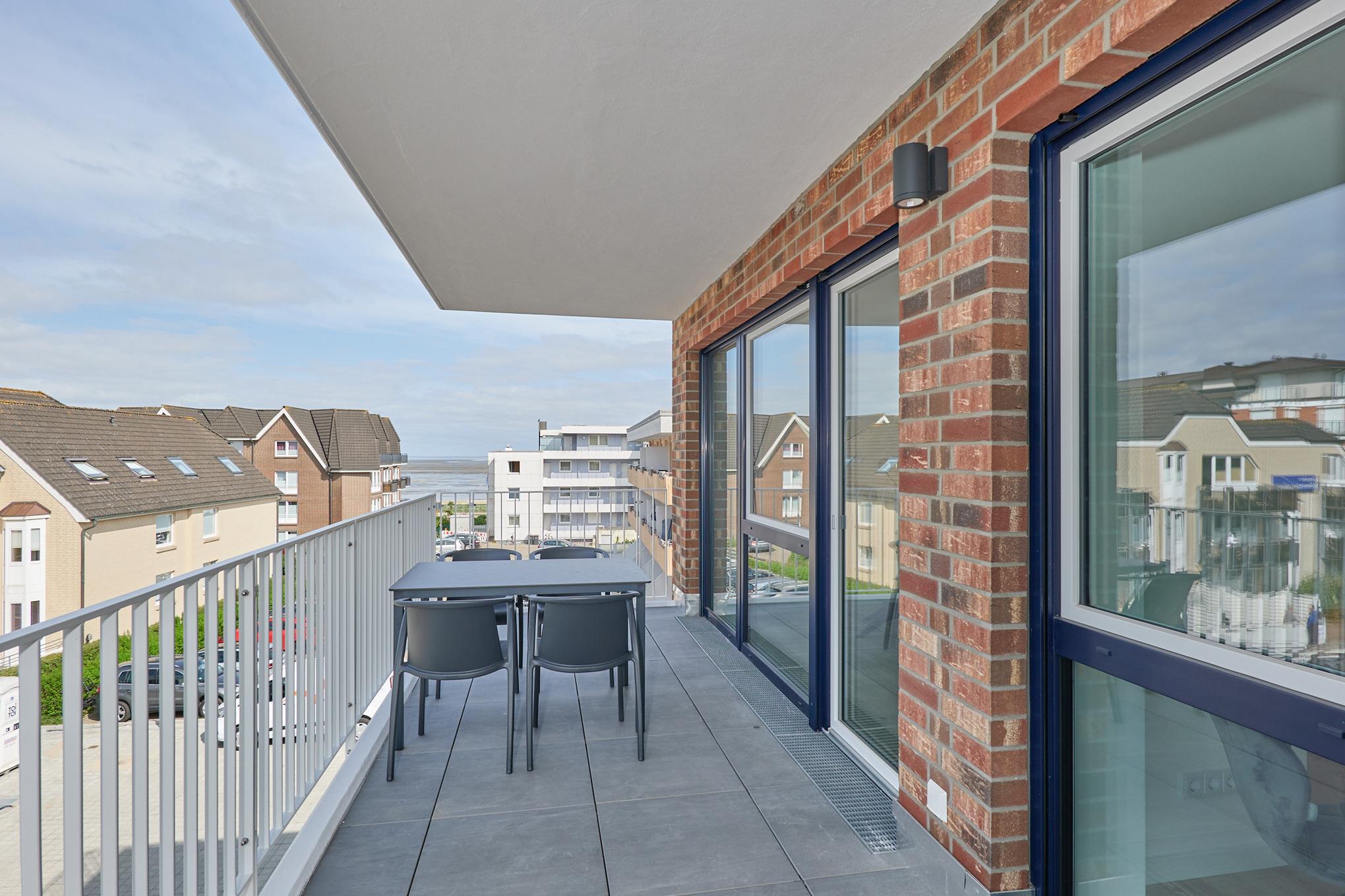 Moderne 3-Zimmer-Ferienwohnung mit Balkon und Teilseesicht in Duhnen, Neubau 2023, voll ausgestattet und mit Tiefgaragenstellplatz.