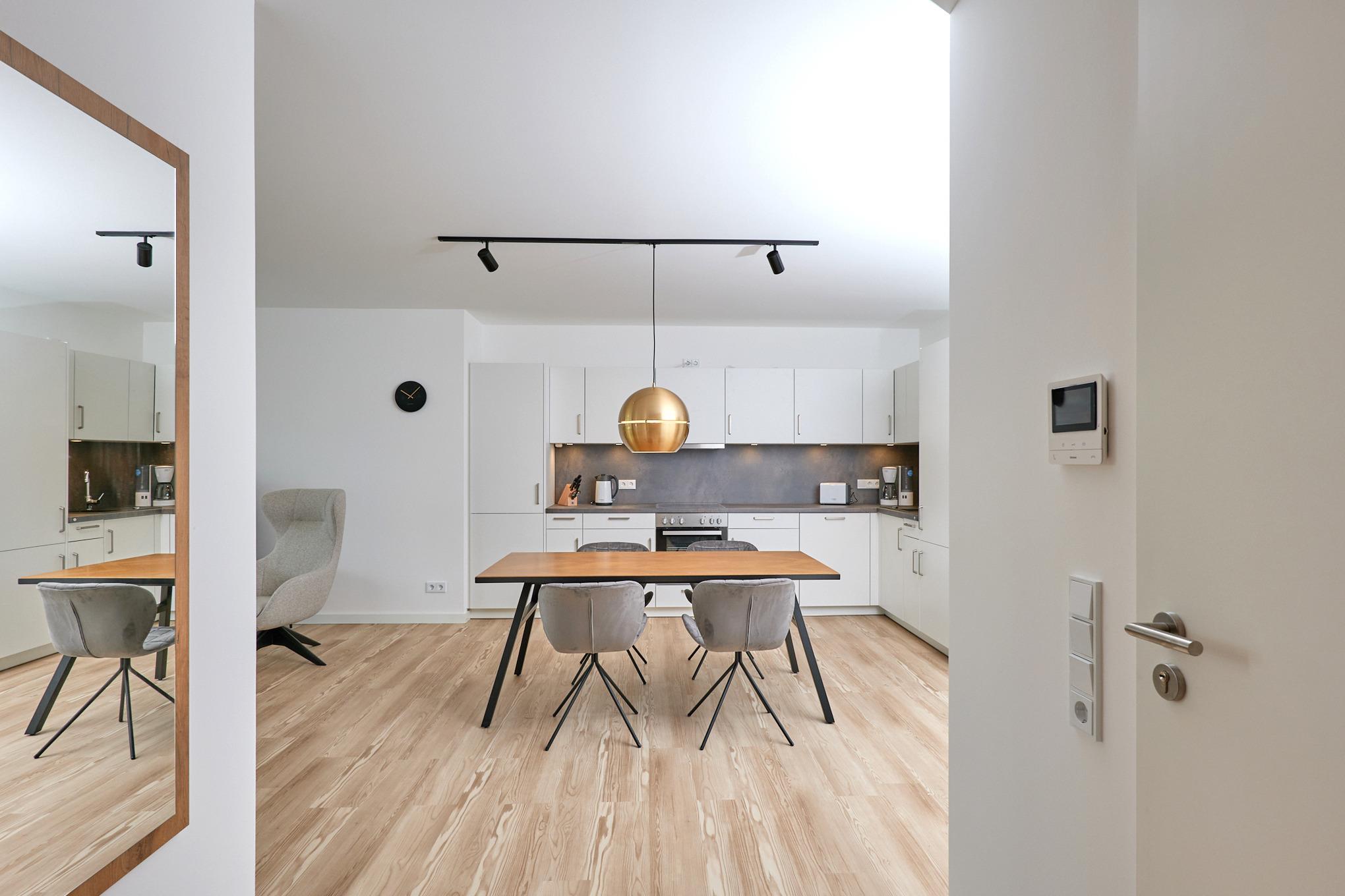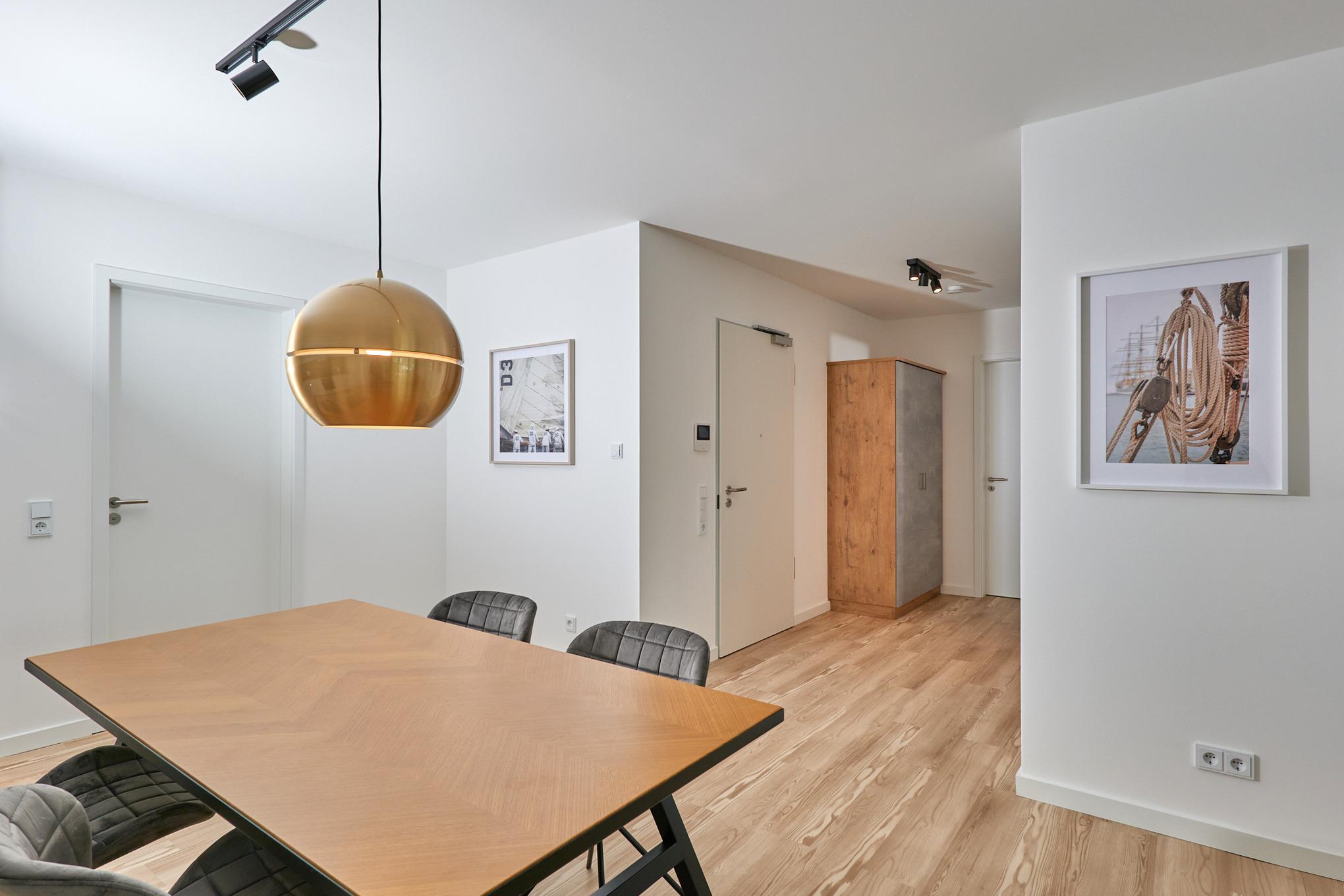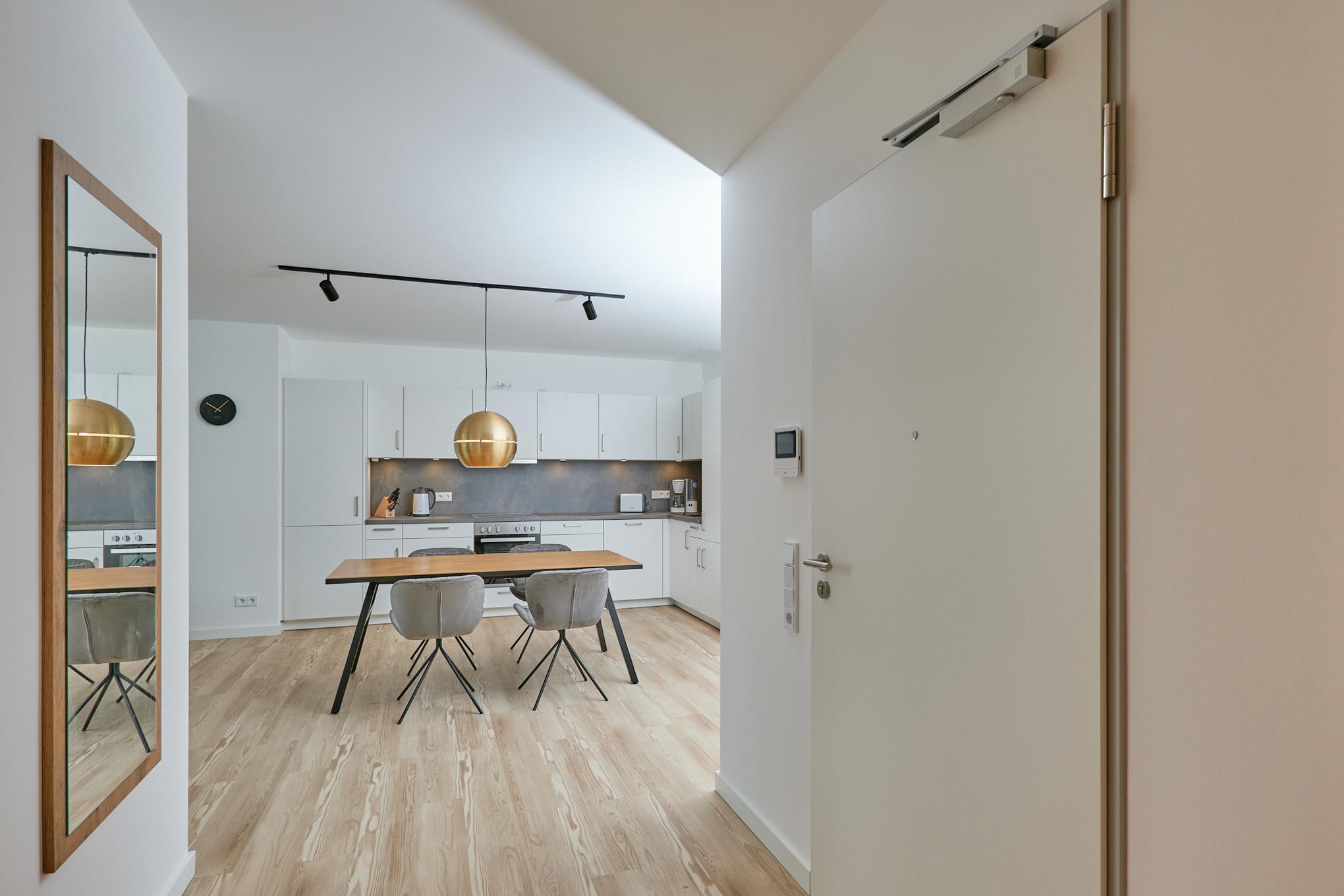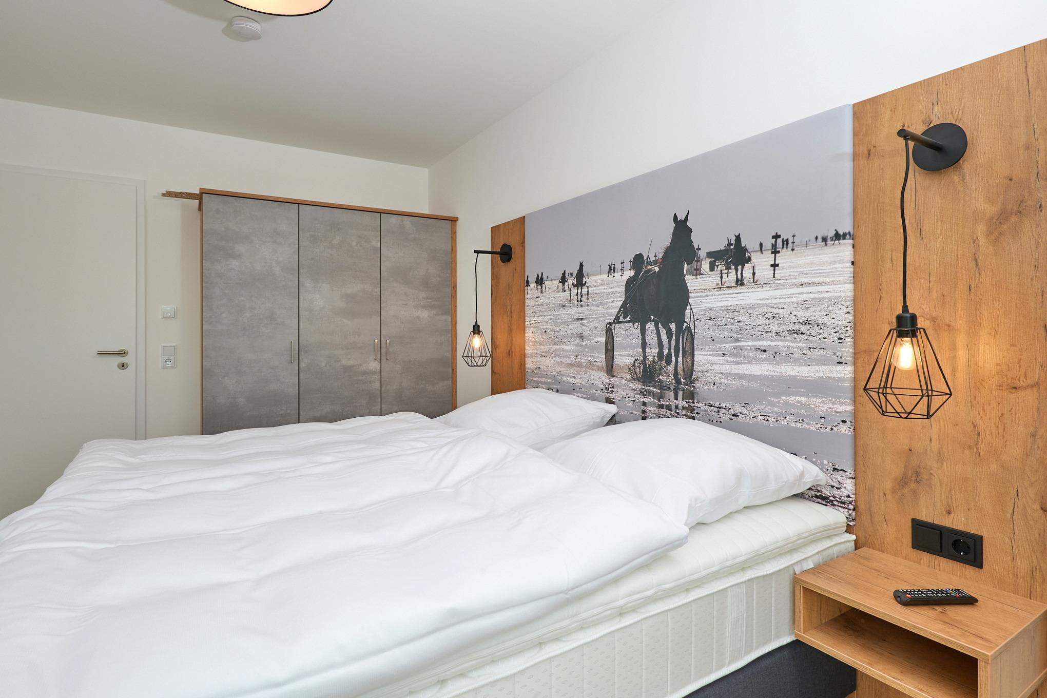 Neubau Mai 2023! Sehr schöne, moderne 3-Raum-Wohnung bis 4 Pers. voll ausgestattet auf ca. 89 m² in der 3.Etage gelegen, 2 Schlafzimmer (1x Doppelbett, 1x 2 Einzelbetten) und Außenjalousien an allen Fenstern, ebenerdige Dusche/WC, Wohnzimmer mit großer Küchenzeile (Backofen, Geschirrspüler, Mikrowelle), 2x Kabel-TV, Radio, kostenfreies W-LAN-Internet, großer Balkon (west) mit Teilseesicht, Personenaufzug, reservierter Pkw-Stellplatz in der Tiefgarage inkl., es sind keine Haustiere erlaubt und natürlich Nichtraucher. Durchfahrtshöhe Tiefgarage: 2,05m.