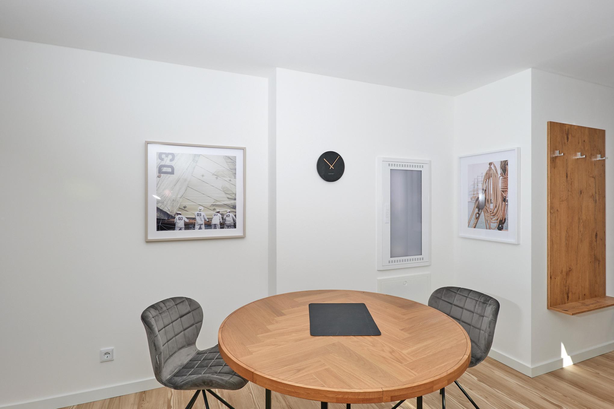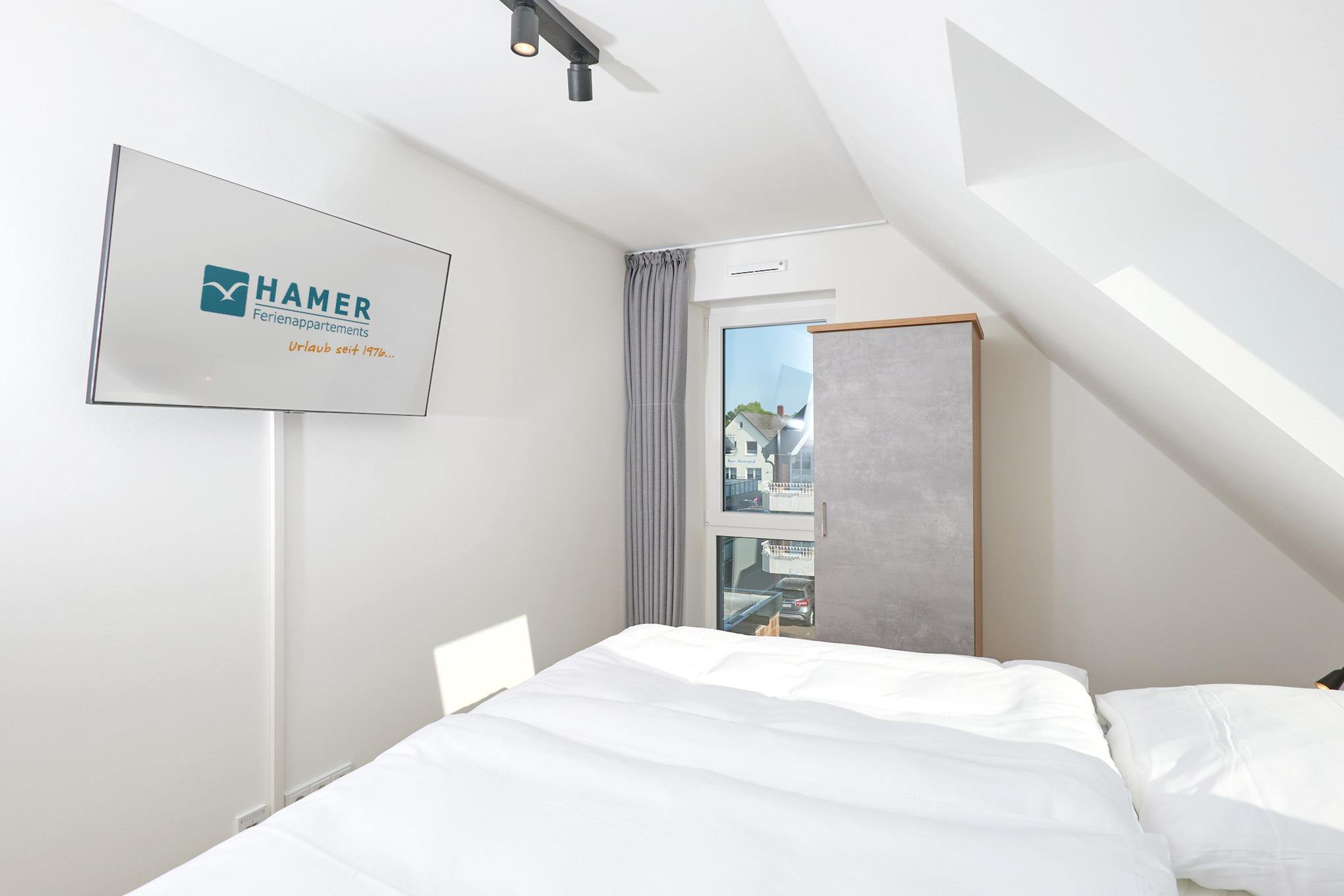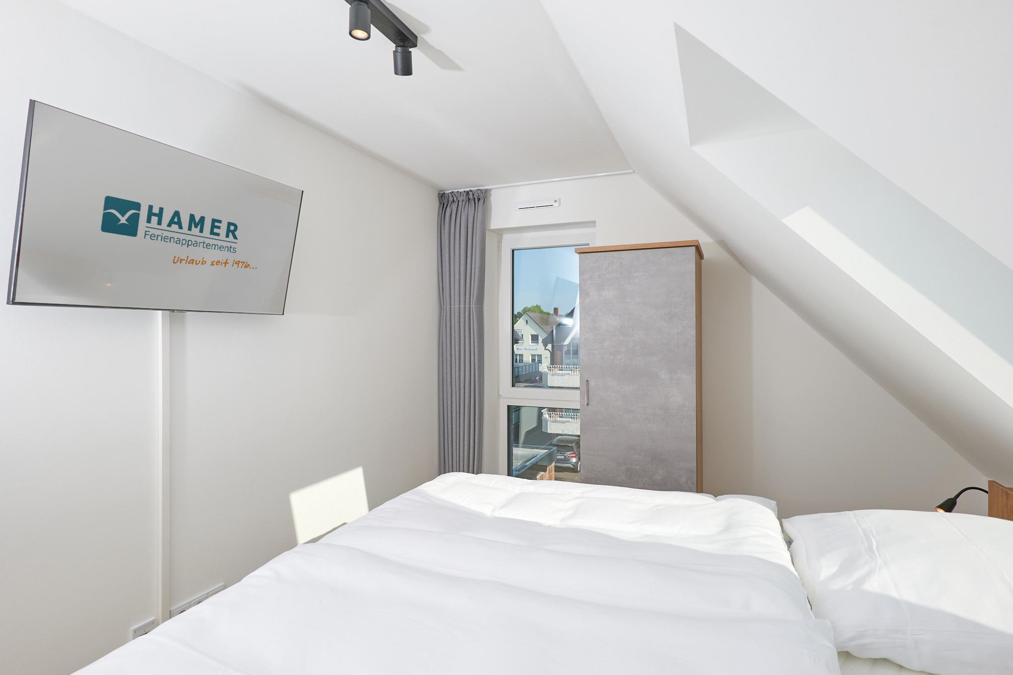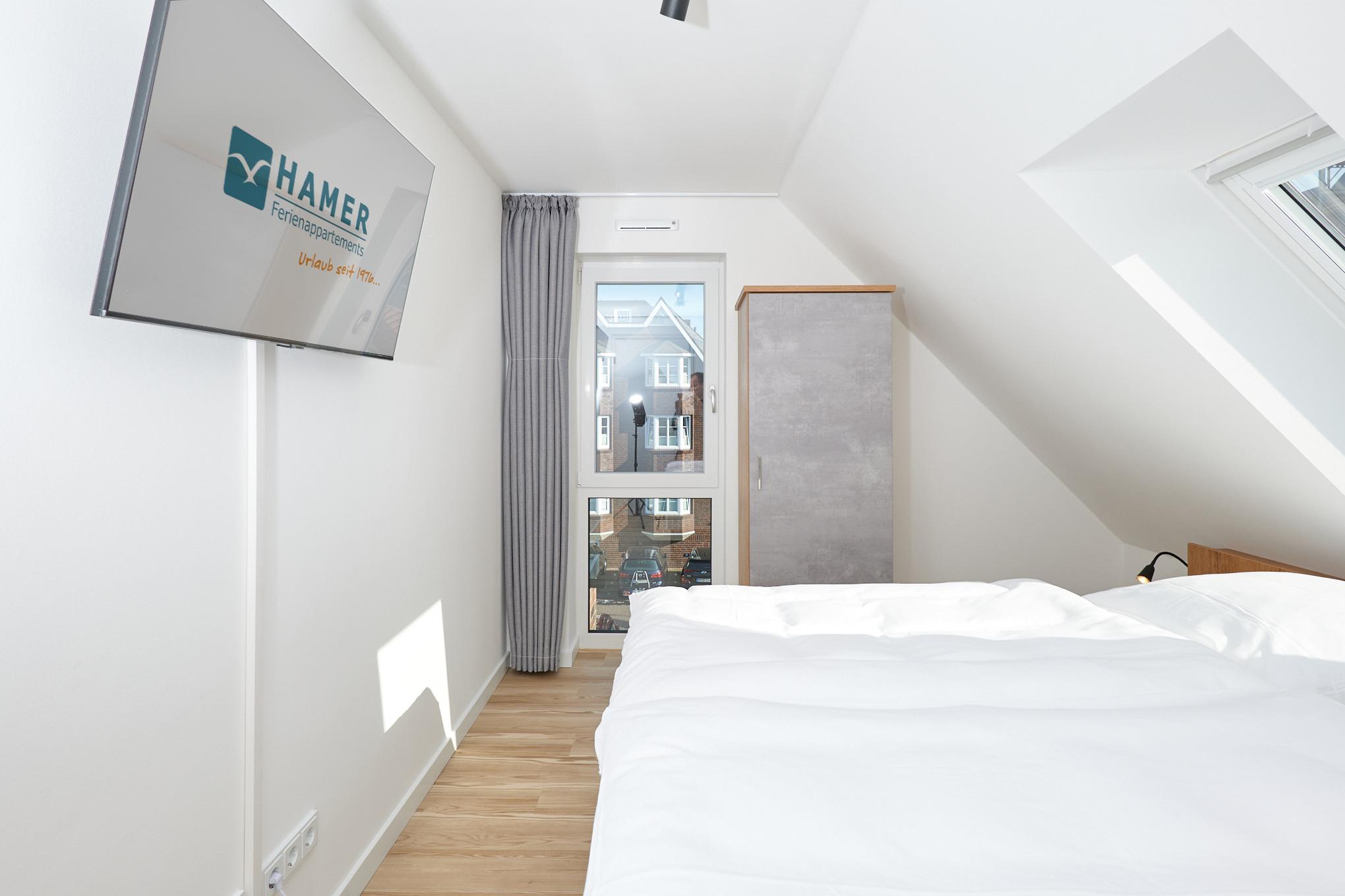 Neubau Mai 2023! Sehr schöne, moderne 2-Raum-Wohnung bis 2 Pers. voll ausgestattet auf ca. 49 m² in der 3.Etage gelegen, 1 Schlafzimmer mit komfortablen Doppelbett (Bettwäsche inkl.) und Außenjalousien an allen Fenstern (Veluxfenster mit Rollo innen), ebenerdige Dusche/WC, Wohnzimmer mit Küchenzeile (2 Platte, Mikrowelle/Backkombi, Geschirrspüler) 2x Kabel-TV, Radio, kostenfreies W-LAN-Internet, großer Balkon mit Teilseesicht (nord/west), beide Zimmer mit Dachschrägen, Personenaufzug, die Wohnung ist barrierefrei erreichbar, reservierter Pkw-Stellplatz in der Tiefgarage inkl., es sind keine Haustiere erlaubt und natürlich Nichtraucher. Durchfahrtshöhe Tiefgarage: 2,05m.