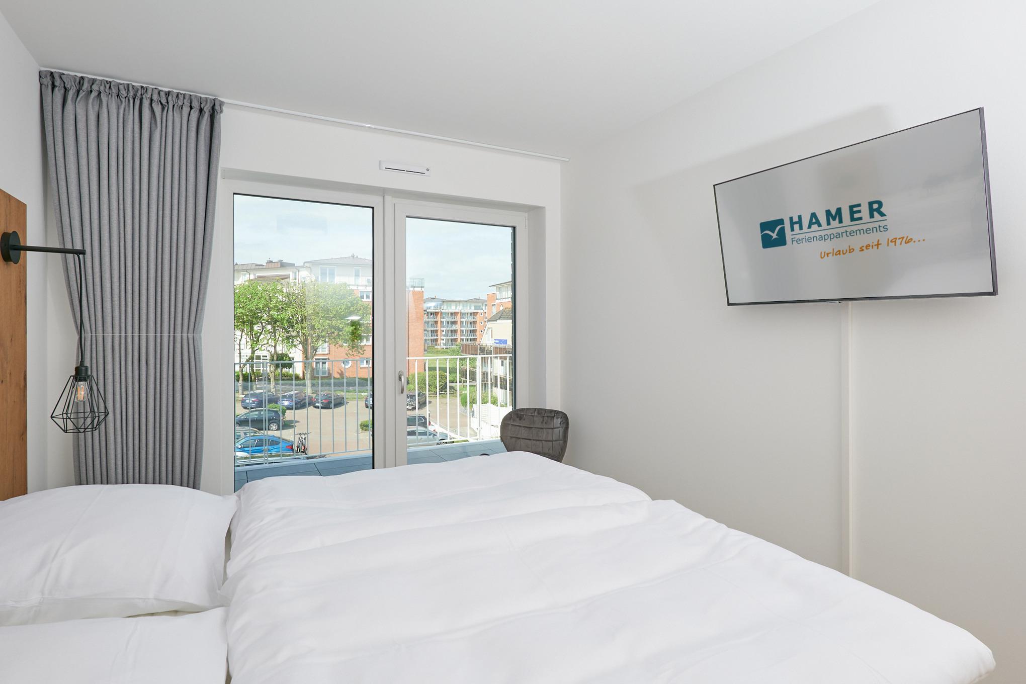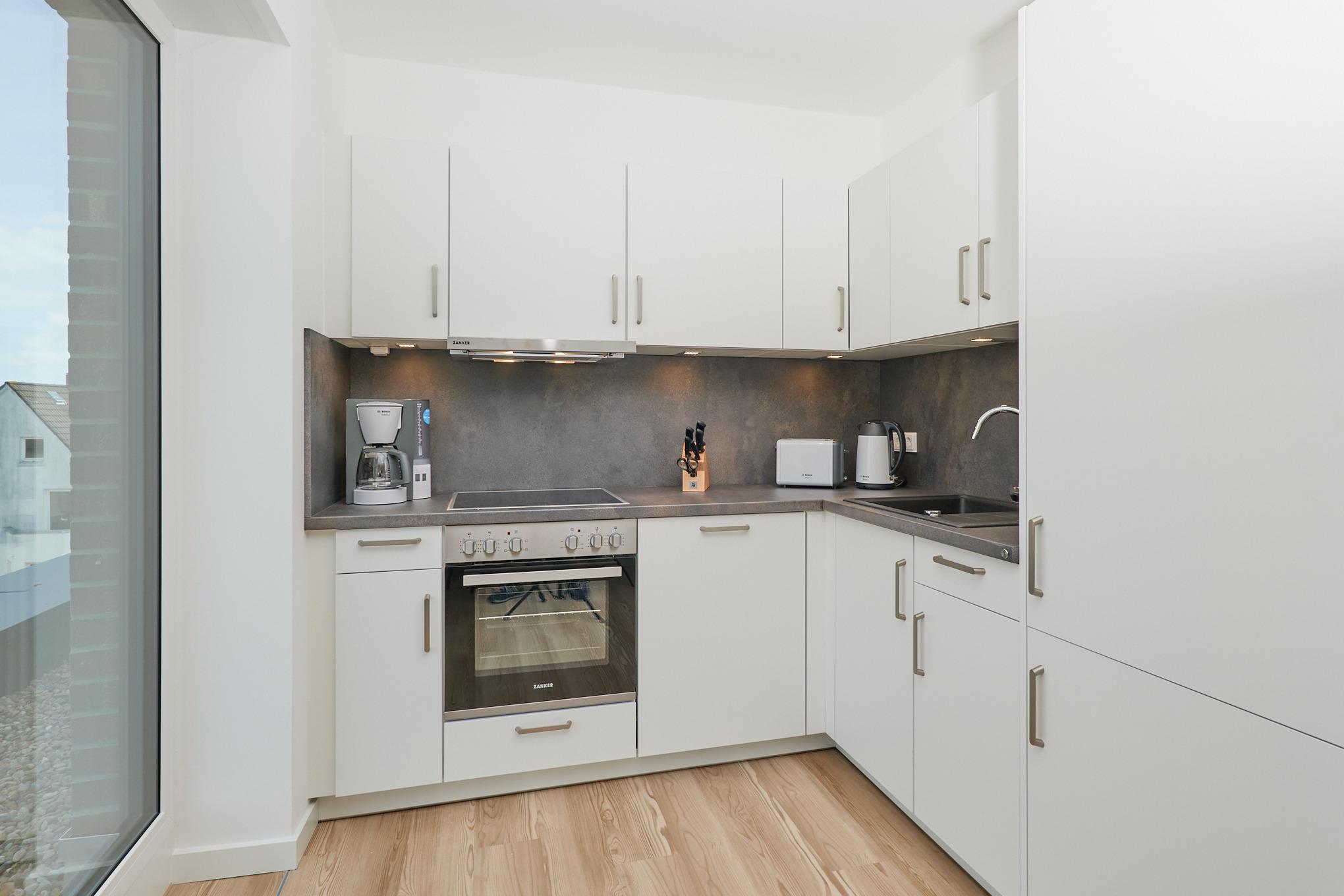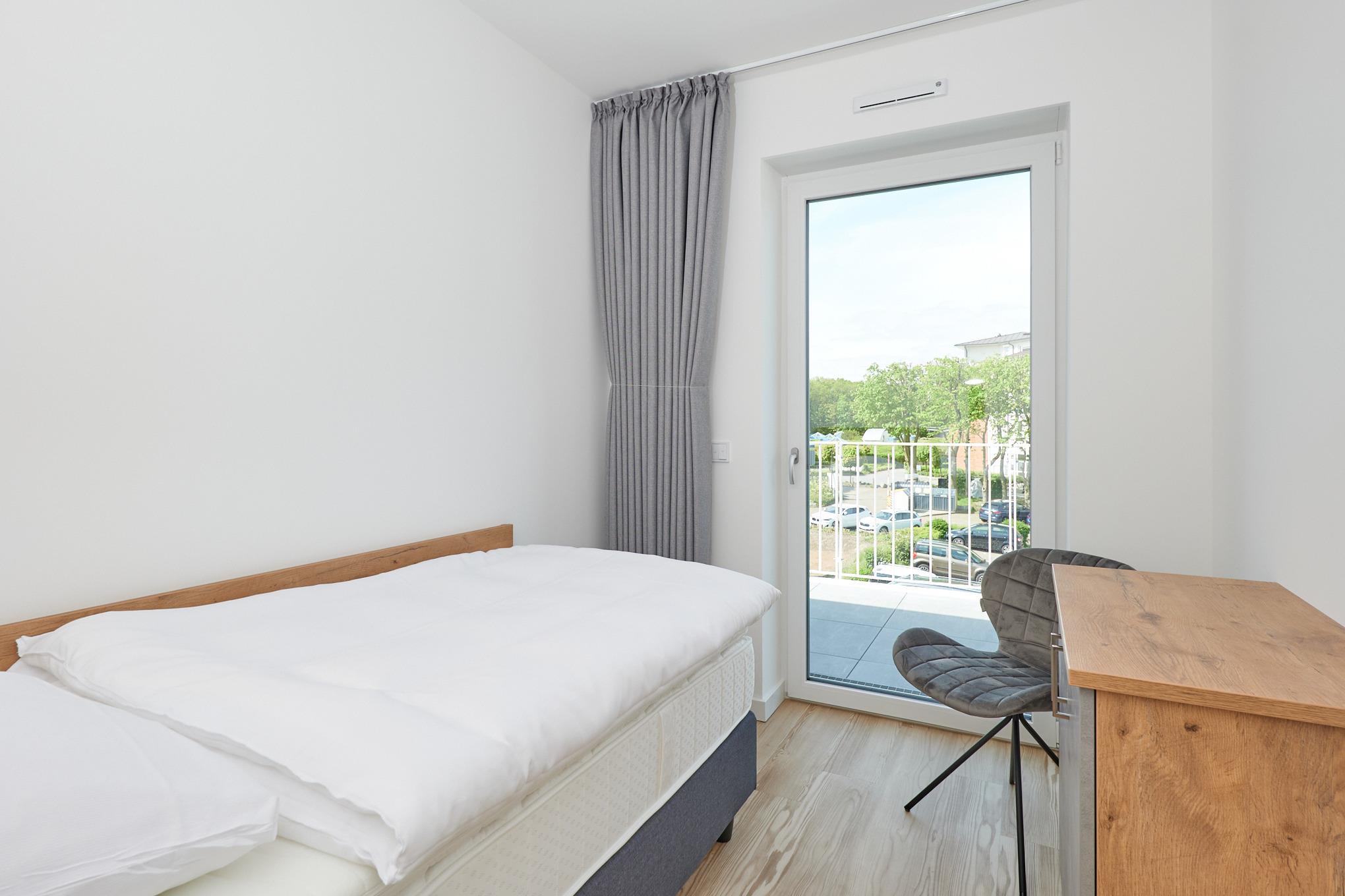 Neubau Mai 2023! Sehr schöne, moderne 3-Raum-Wohnung bis 4 Pers. voll ausgestattet auf ca. 87 m² in der 3.Etage gelegen, 2 Schlafzimmer (1x Doppelbett, 1x 2 Einzelbetten) und Außenjalousien an allen Fenstern, ebenerdige Dusche/WC, Wohnzimmer mit großer Küchenzeile (Backofen, Geschirrspüler, Mikrowelle) und Teilseesicht, 2x Kabel-TV, Radio, kostenfreies W-LAN-Internet, großer Balkon (west) mit Teilseesicht, Personenaufzug, reservierter Pkw-Stellplatz in der Tiefgarage inkl., es sind keine Haustiere erlaubt und natürlich Nichtraucher. Durchfahrtshöhe Tiefgarage: 2,05m.