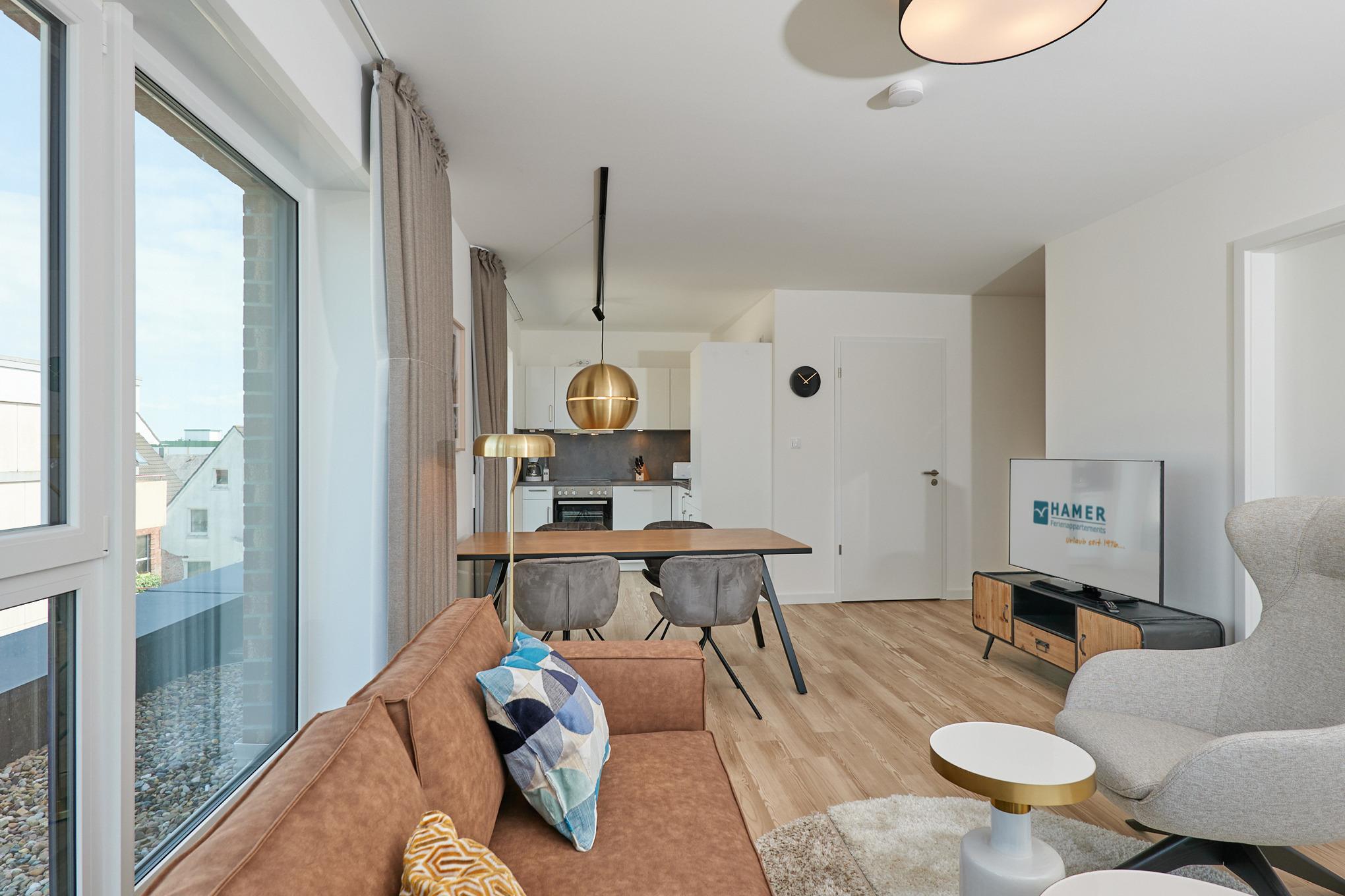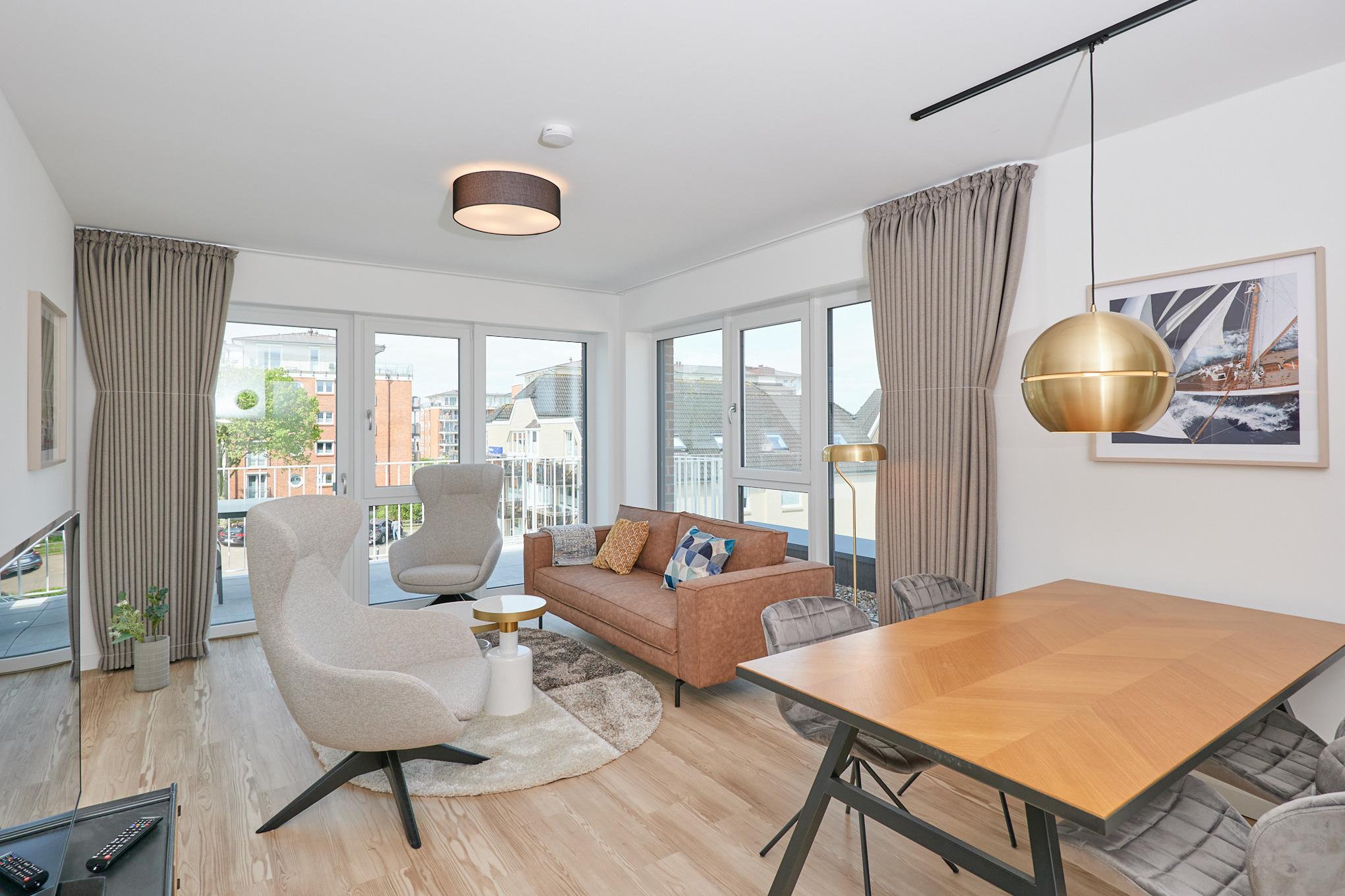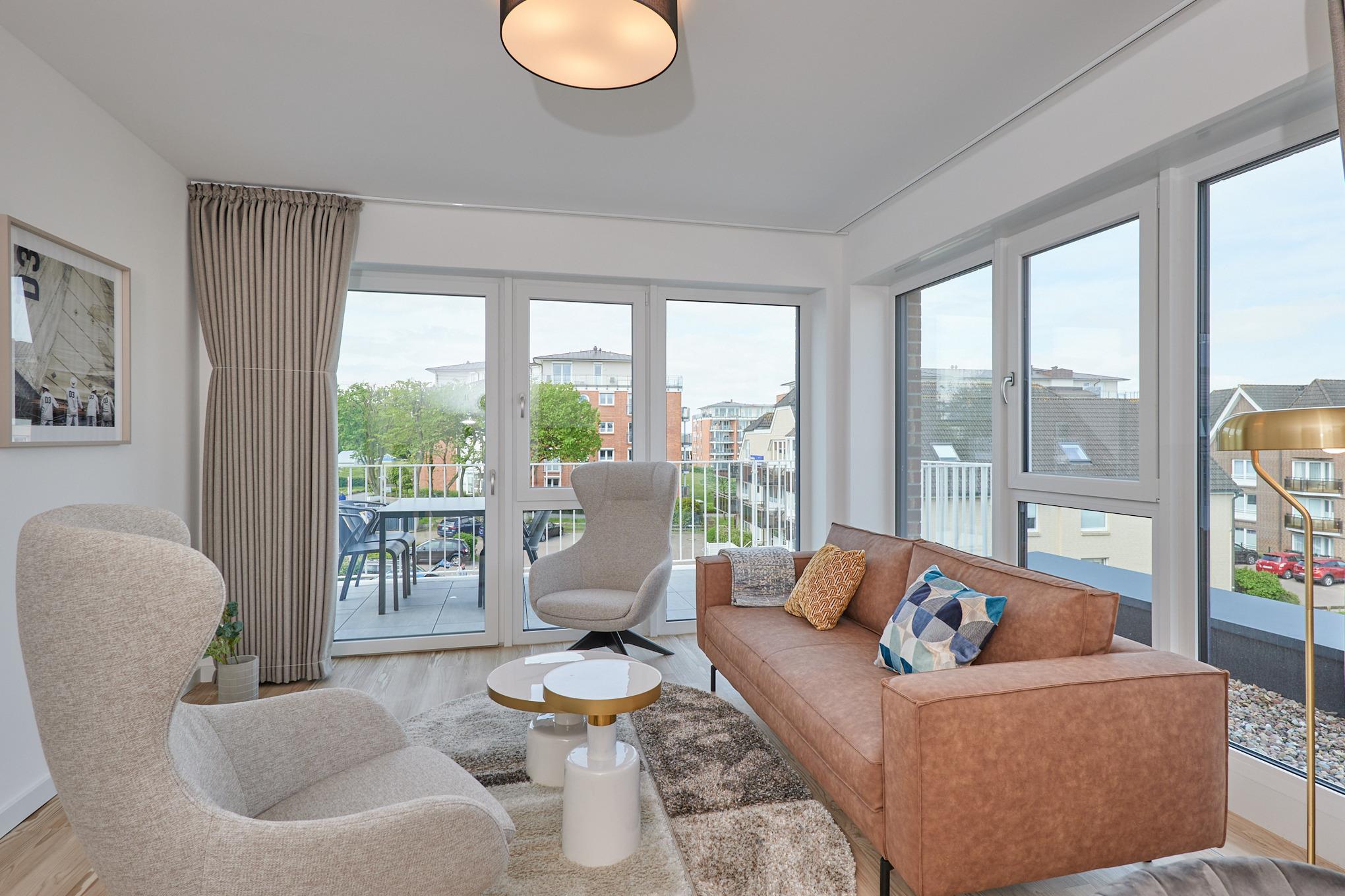 Moderne 3-Zimmer-Ferienwohnung mit Balkon und Teilseesicht in Duhnen, Neubau 2023.