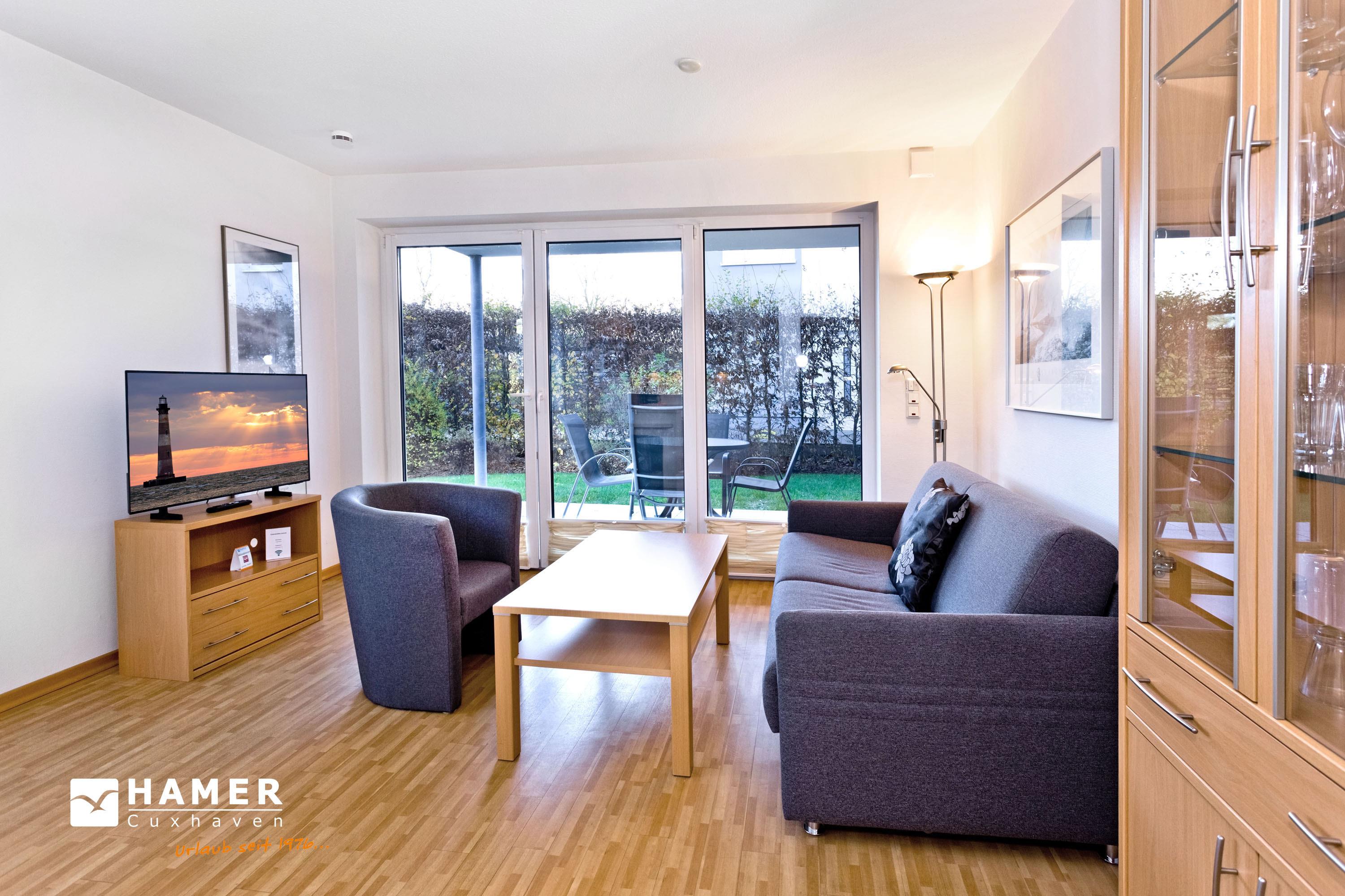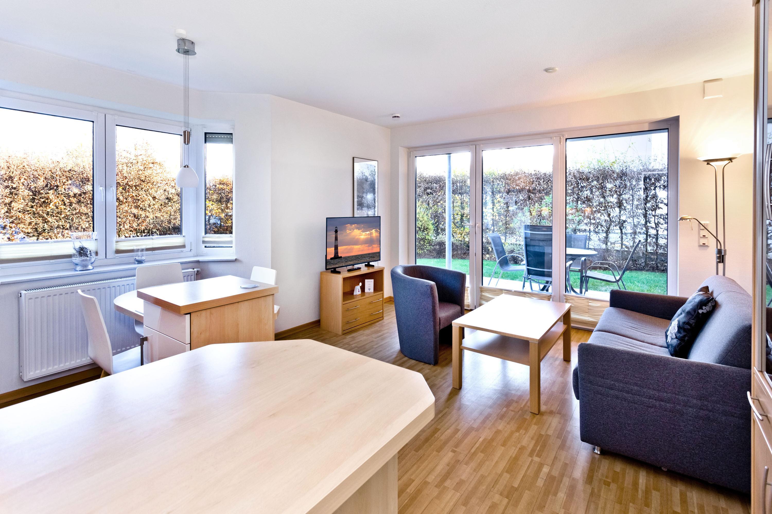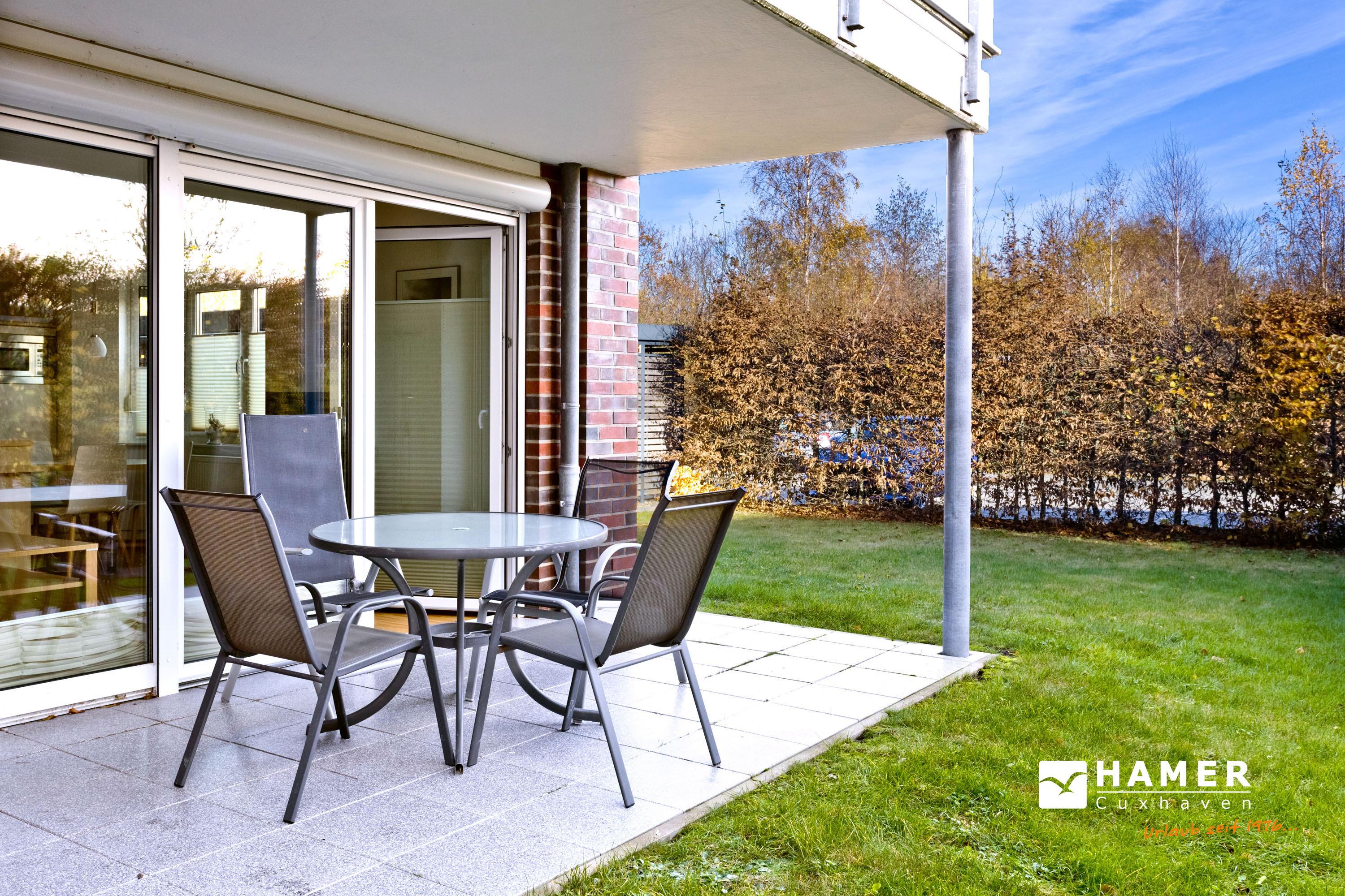 Barrierefreie Ferienwohnung mit Terrasse und WLAN in Duhnen, ideal für bis zu 3 Personen.