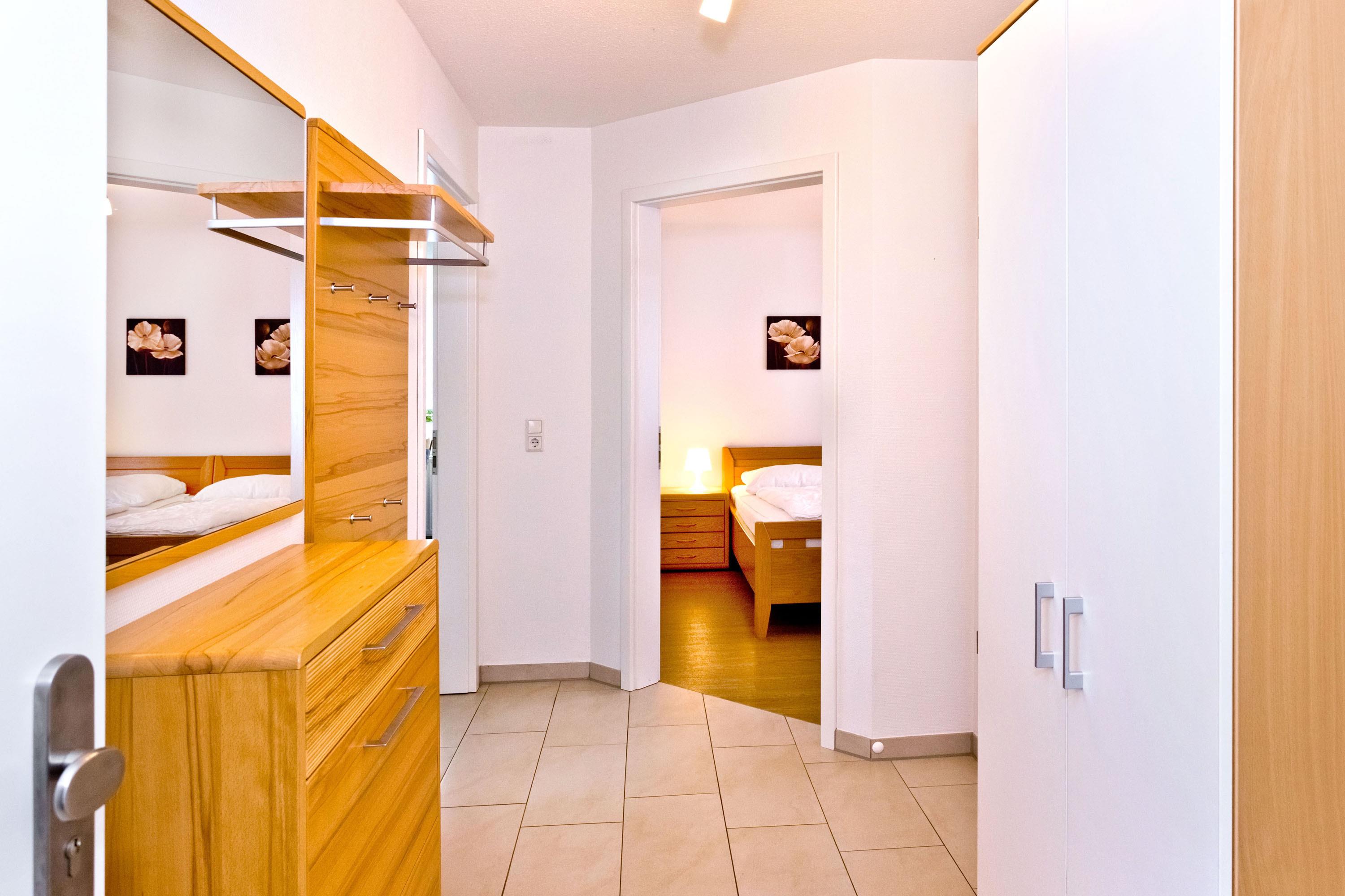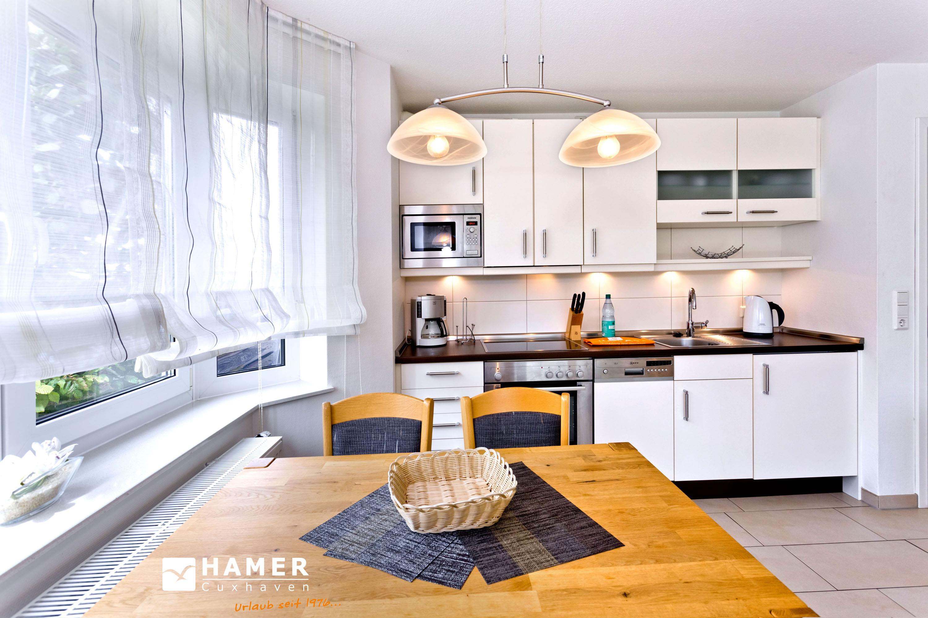 Schöne und vollständig ausgestattete Wohnung auf ca. 50m² bis 2 Pers., parterre mit Terrasse und Rasen (süd), 1 Schlafzimmer mit Einzelbetten (zusammengeschoben), Wohnzimmer, SAT-TV, W-LAN kostenlos, vollständige Küchenzeile mit Geschirrspüler, Mikrowelle, Backofen, Gefrierfach, Du/Wc mit ebenerdiger Dusche, Föhn, alle Räume mit Rollladen, Nichtraucher, Pkw-Stellplatz #3, keine Haustiere gestattet.
