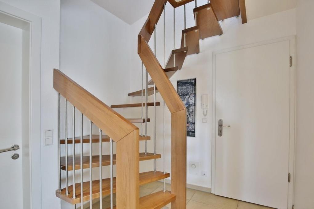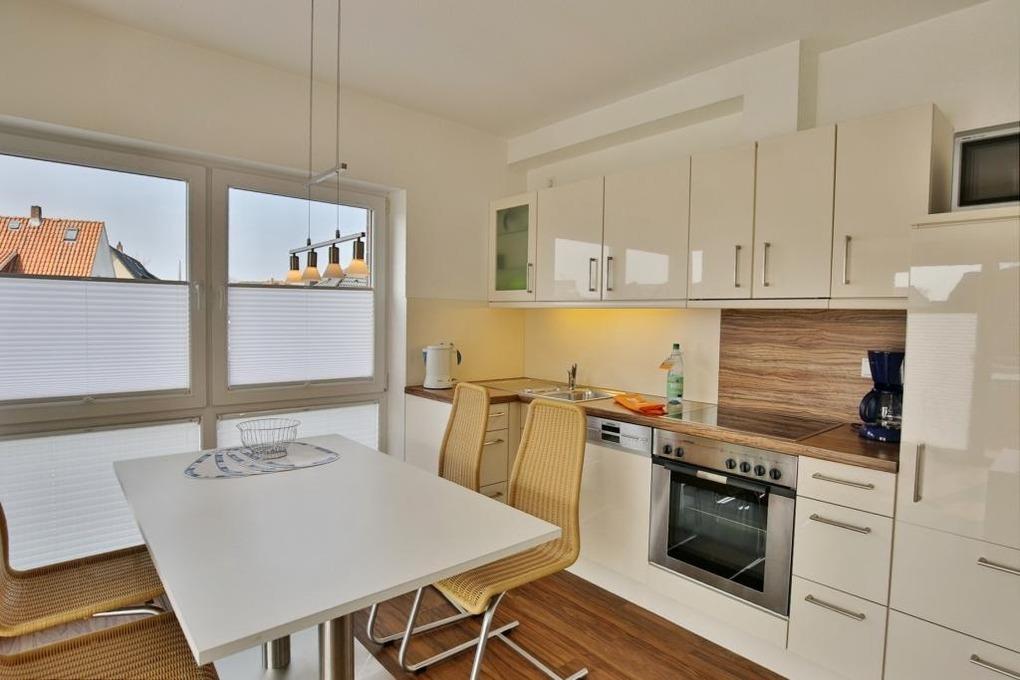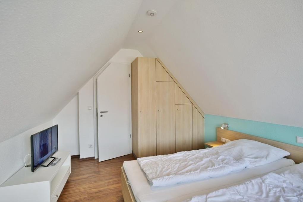 Sehr schöne, helle 3-Raum-Maisonette-Wohnung, 1.Etage, 1 Schlafzimmer mit Doppelbett, 1 Schlafzimmer im Dachgeschoss Doppelbett und separaten WC, Wohnzimmer mit Küchenzeile (Backofen, Mikrowelle, Geschirrspüler) 2x SAT-TV, CD, DVD, kostenloses W-LAN Internet, Du/Wc, großer Balkon (süd) mit Balkonmöbeln und Sonnenschirm (saisonabhängig), Rollladen, reservierter Pkw-Stellplatz vor dem Haus, keine Haustiere erlaubt, Nichtraucher.