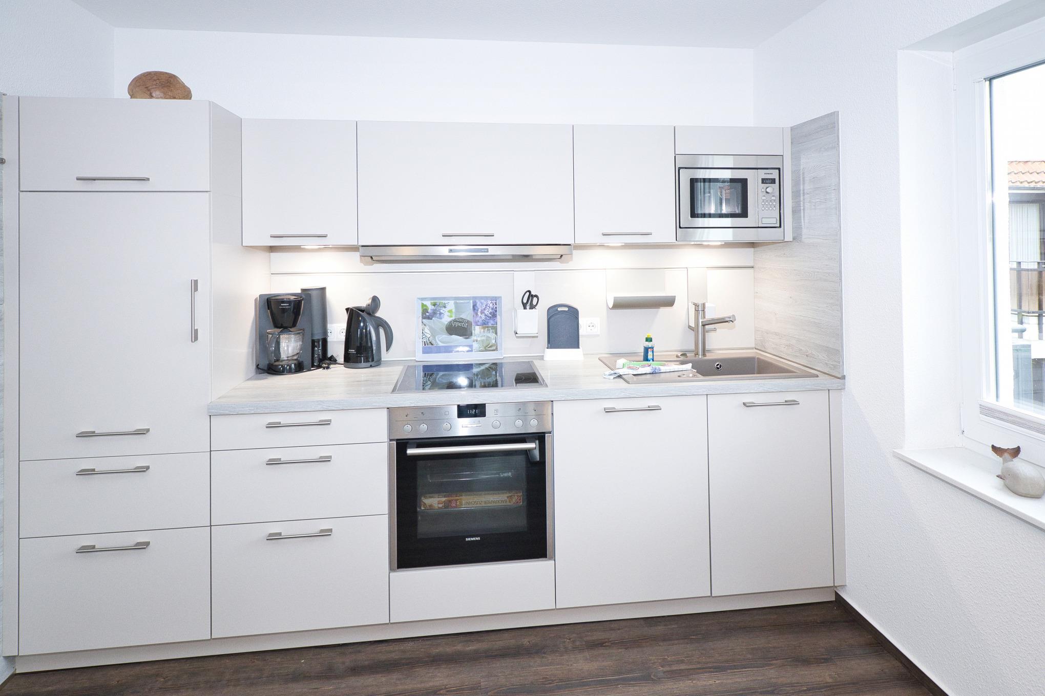 Im Wohnbereich erwartet Sie ein hochwertiges Sofa, ein gemütlicher Sessel sowie ein Marken-Radio, ein DVD-Player und ein Flachbildfernseher für Ihre Unterhaltung. Die komfortable Einbauküche befindet sich zusammen mit einem Esstisch im großen Wohnzimmer und ist unter anderem mit einem Geschirrspüler ausgestattet. Hier können Sie Ihre kulinarischen Fähigkeiten entfalten und Ihre Lieblingsgerichte zubereiten.