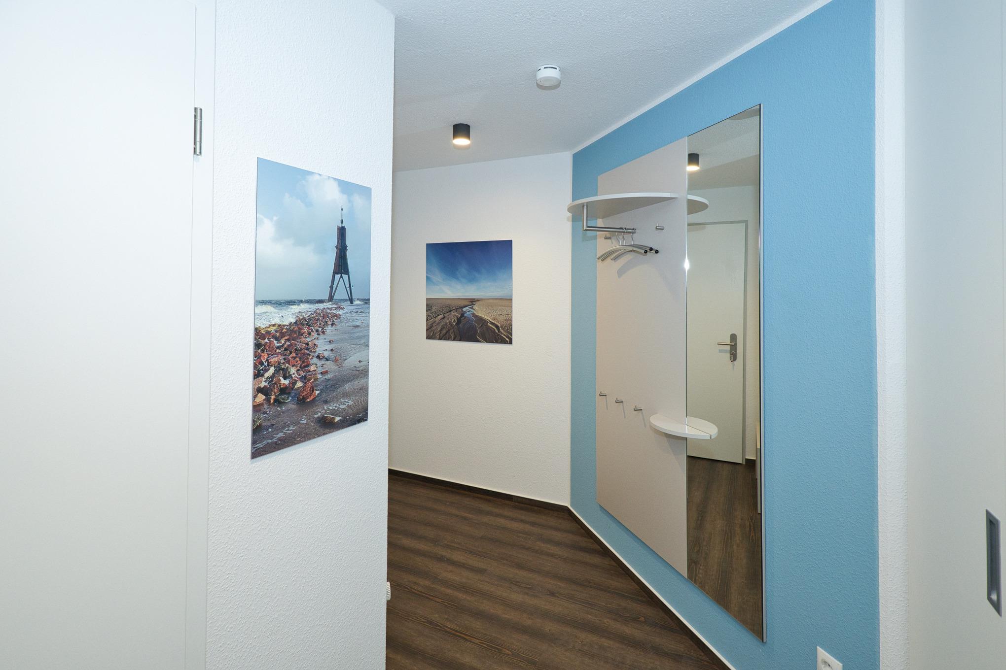Die Wohnung bietet Ihnen auch eine schallgedämmte Eingangstür, eine tolle Garderobe und teilweise maßgefertigte Möbel, die das hochwertige Angebot abrunden. Das moderne Duschbad mit WC sorgt für weiteren Komfort während Ihres Aufenthalts.