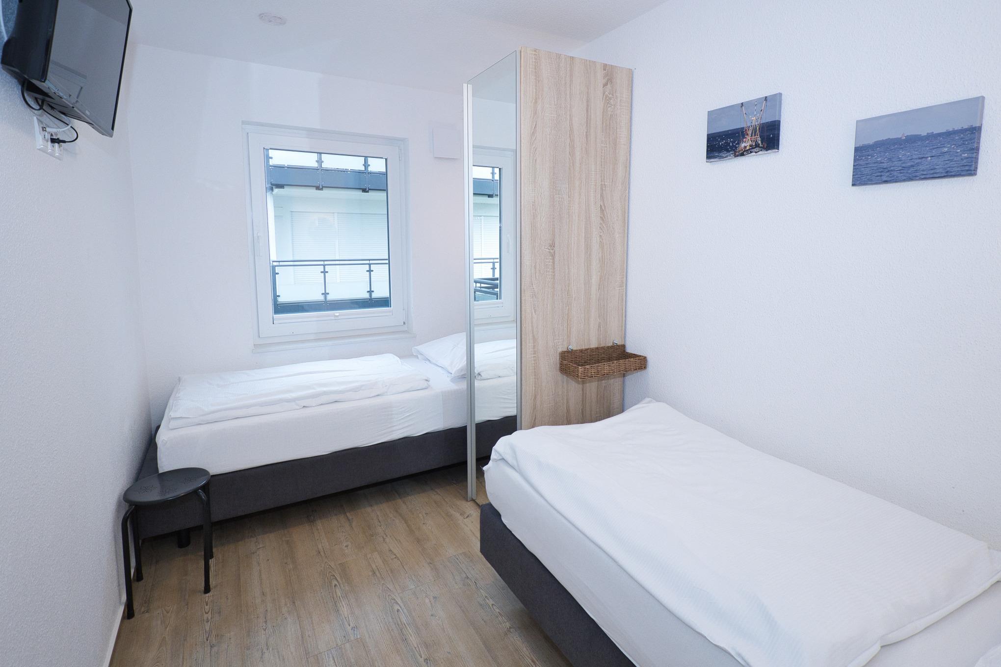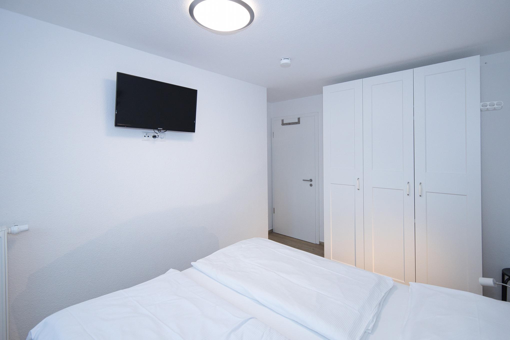 Die beiden Schlafzimmer der Ferienwohnung sind komfortabel eingerichtet und bieten Ihnen erholsame Nächte. Ein Schlafzimmer verfügt über ein gemütliches Doppelbett, während das andere mit zwei Einzelbetten ausgestattet ist. In beiden Schlafzimmern finden Sie zusätzlich einen eigenen Fernseher vor, sodass Sie auch hier Ihre Lieblingssendungen verfolgen können.