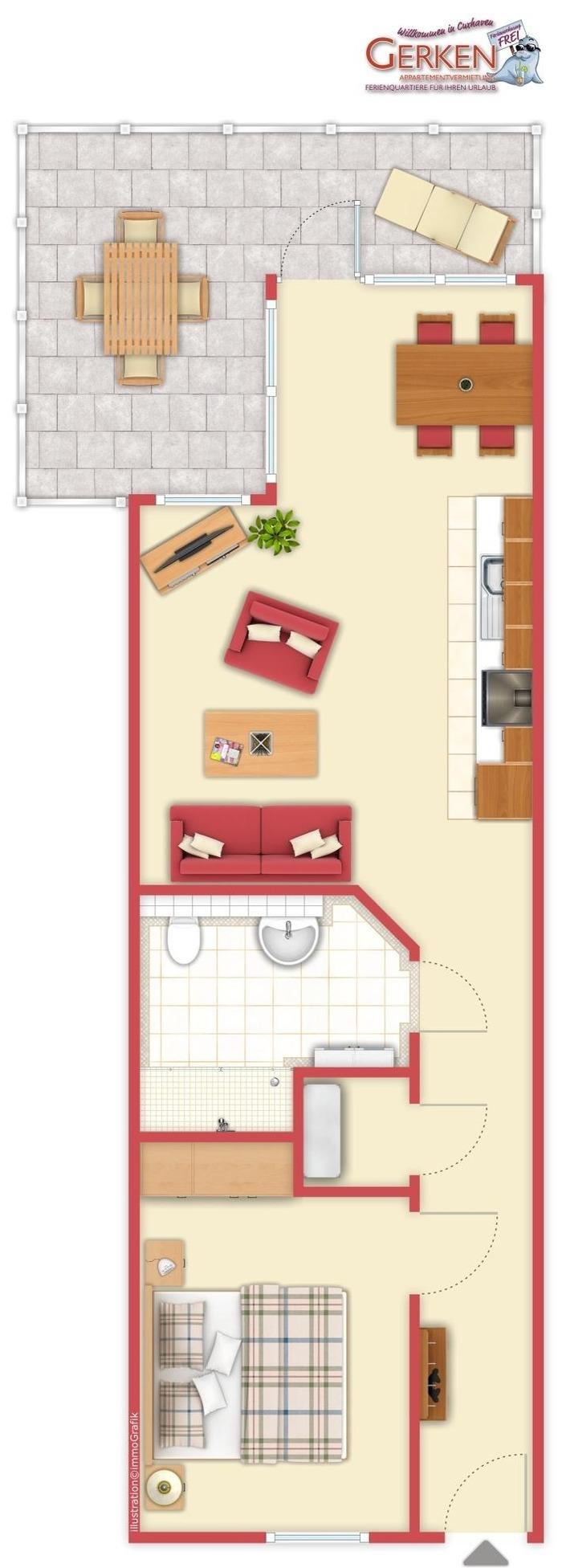 Moderne, barrierefreie Ferienwohnung mit Südterrasse und Garten in Cuxhaven-Duhnen.