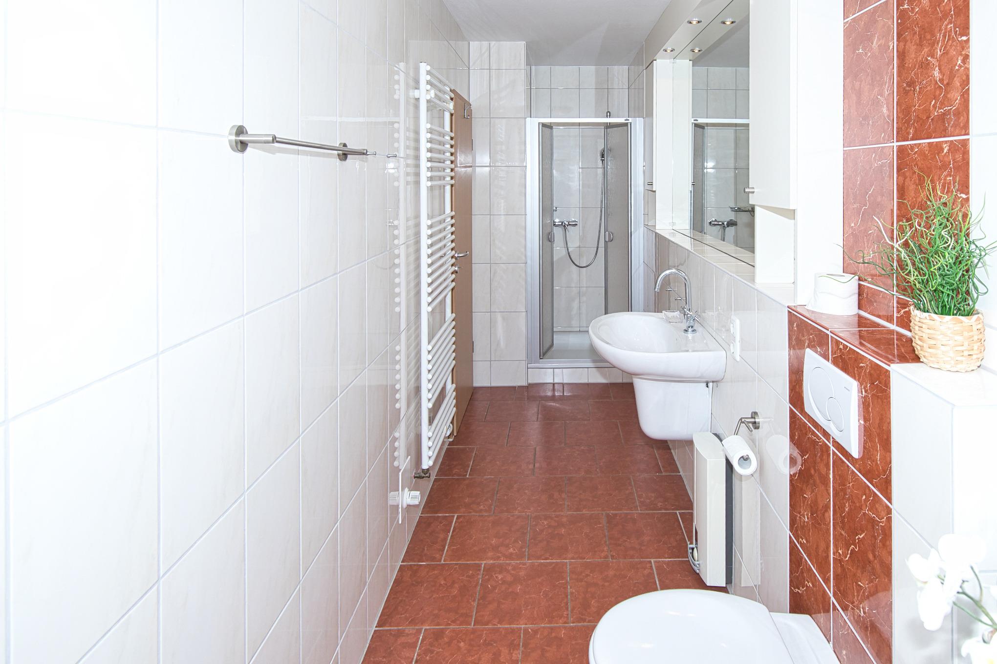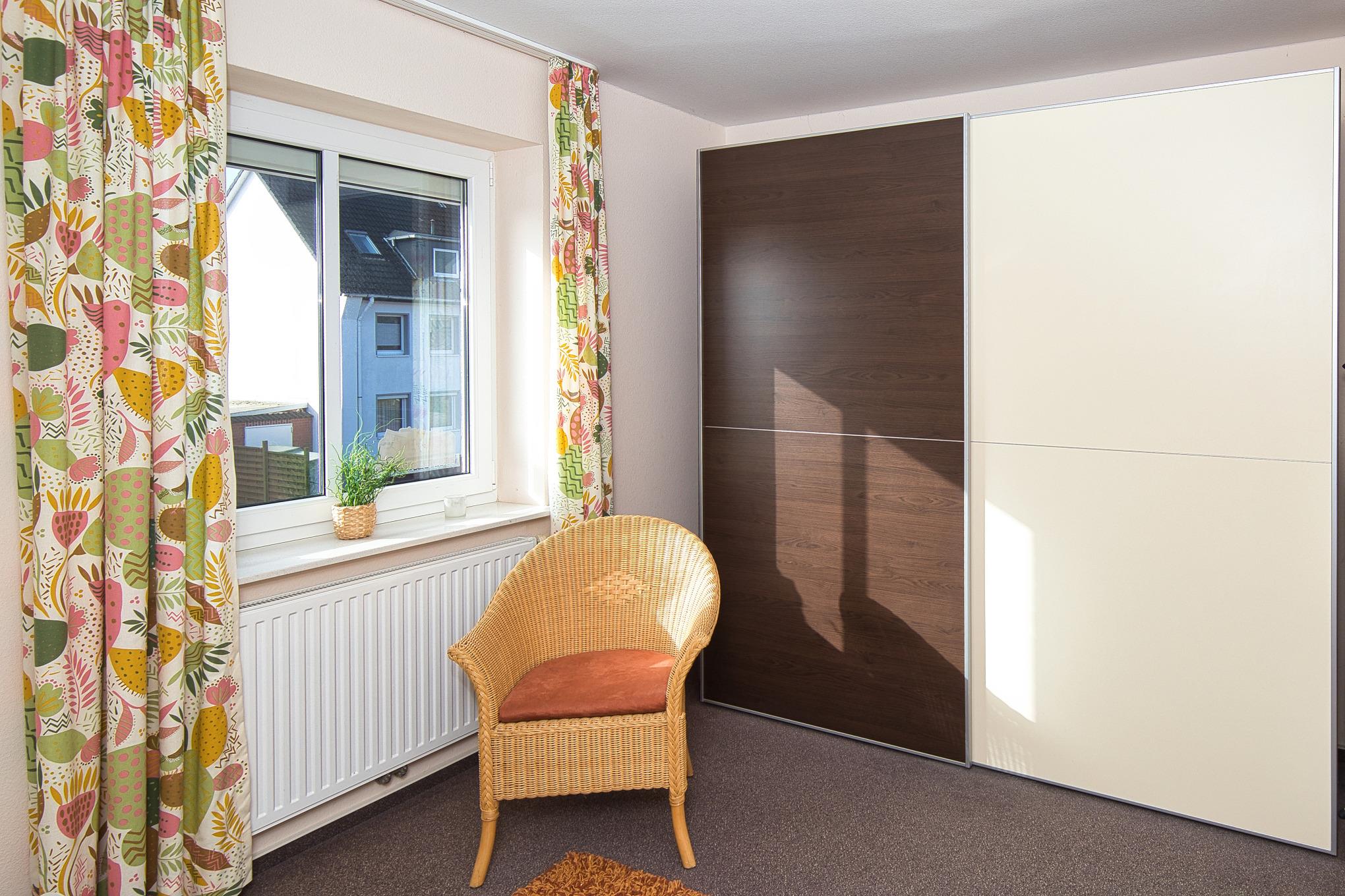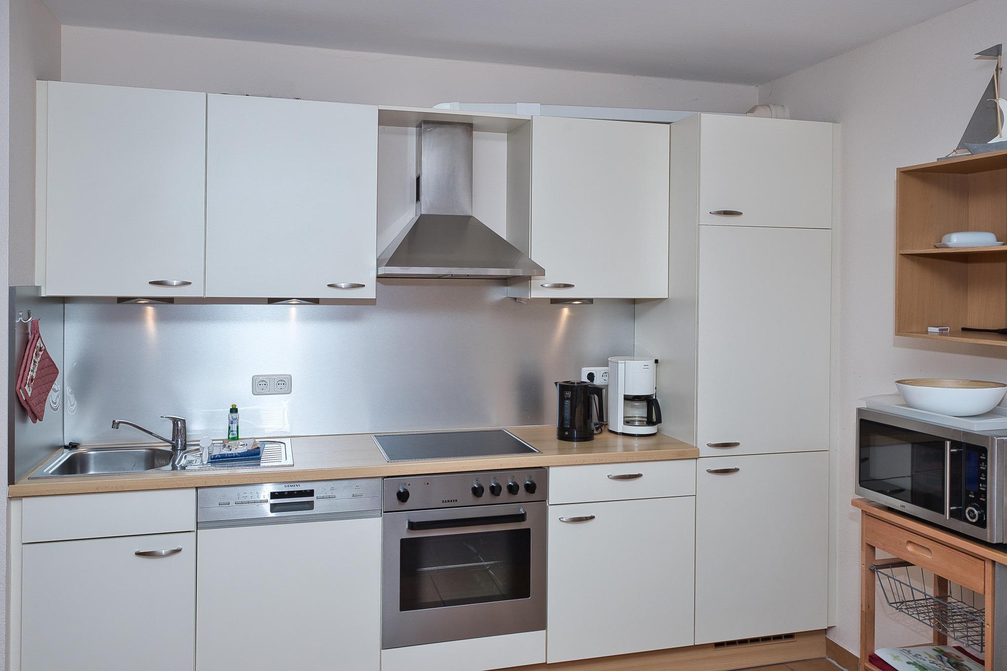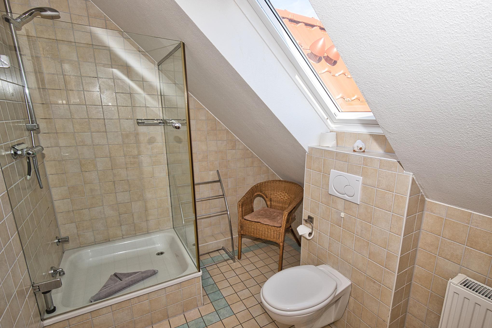 Sehr gemütliche und helle Ferienwohnung über 2 Etagen für bis zu 4 Personen. Im 1. OG kommen Sie über den Flur direkt in den hellen Wohn- und Essbereich mit einer komplett eingerichteten Einbauküche (mit zusätzlicher Kaffeepadmaschine) und dem Zugang zum Balkon (Süd-West). Vom Flur aus kommen Sie in das große Duschbad mit Waschmaschine und zur anderen Seite ins Schlafzimmer mit Doppelbett und einem großen Kleiderschrank. Der gesamte Wohnbereich ist ohne Teppich ausgelegt!. Vom Wohnbereich geht eine sehr schön integrierte Holztreppe ins Dachgeschoss. Hier befindet sich ein kleineres Schlafzimmer mit 2 Einzelbetten mit Radiowecker mit CD-Spieler und 2 Sitzmöglichkeiten mit einem Tisch zum abendlichen verweilen. Ein 2. Fernseher ist hier vorhanden. Ebenfalls befindet sich auf dieser Etage ein optimal aufgeteiltes Duschbad mit WC. Ein Haarfön befindet sich in beiden Bädern. Wir wünschen Ihnen einen schönen Urlaub...