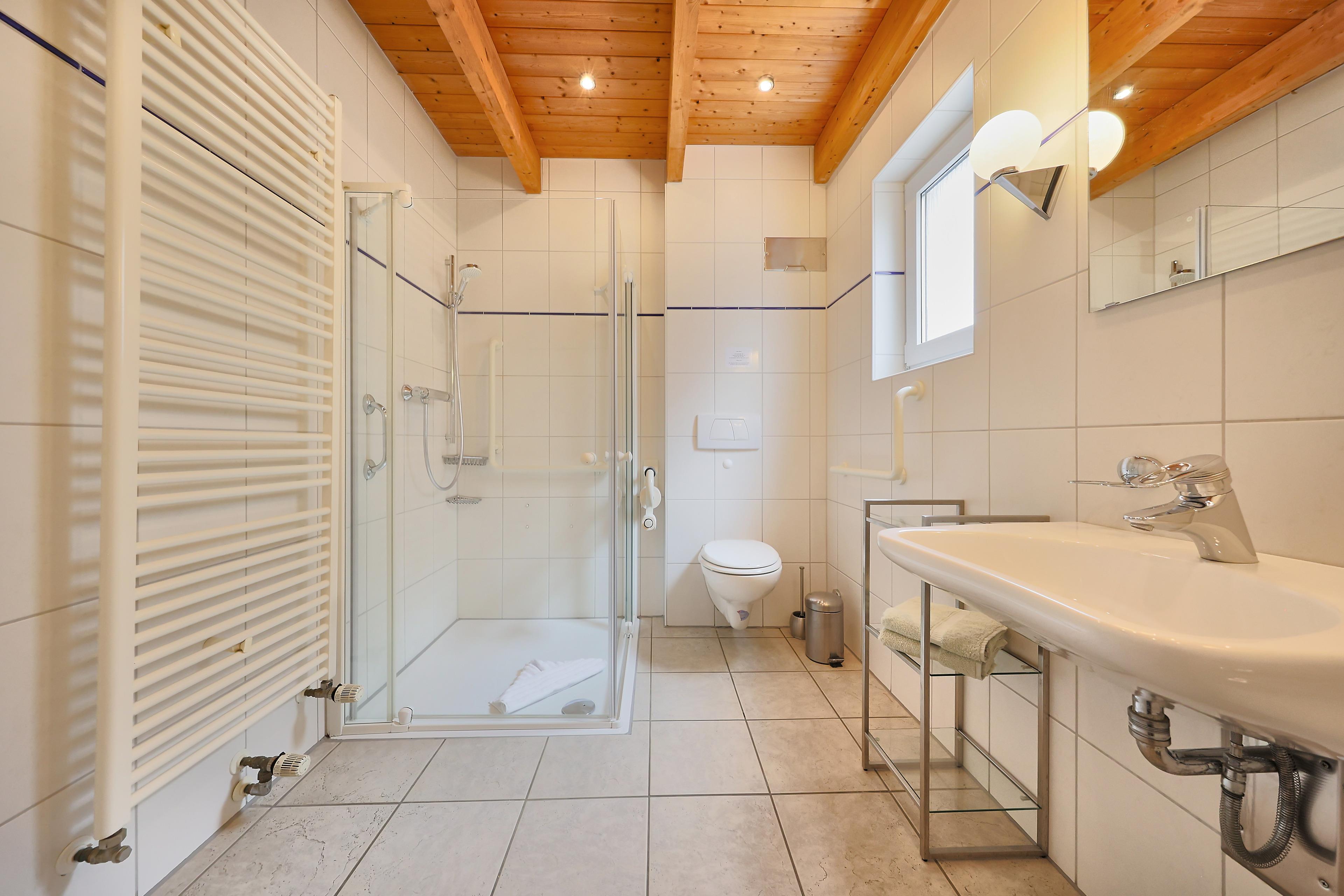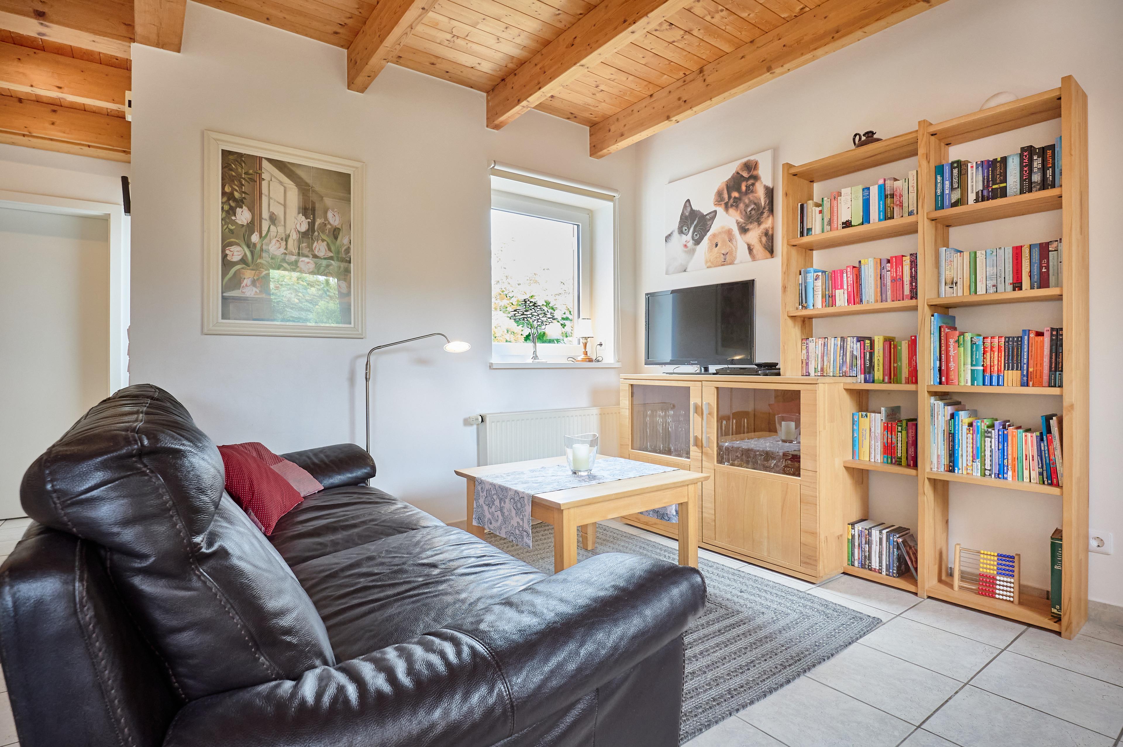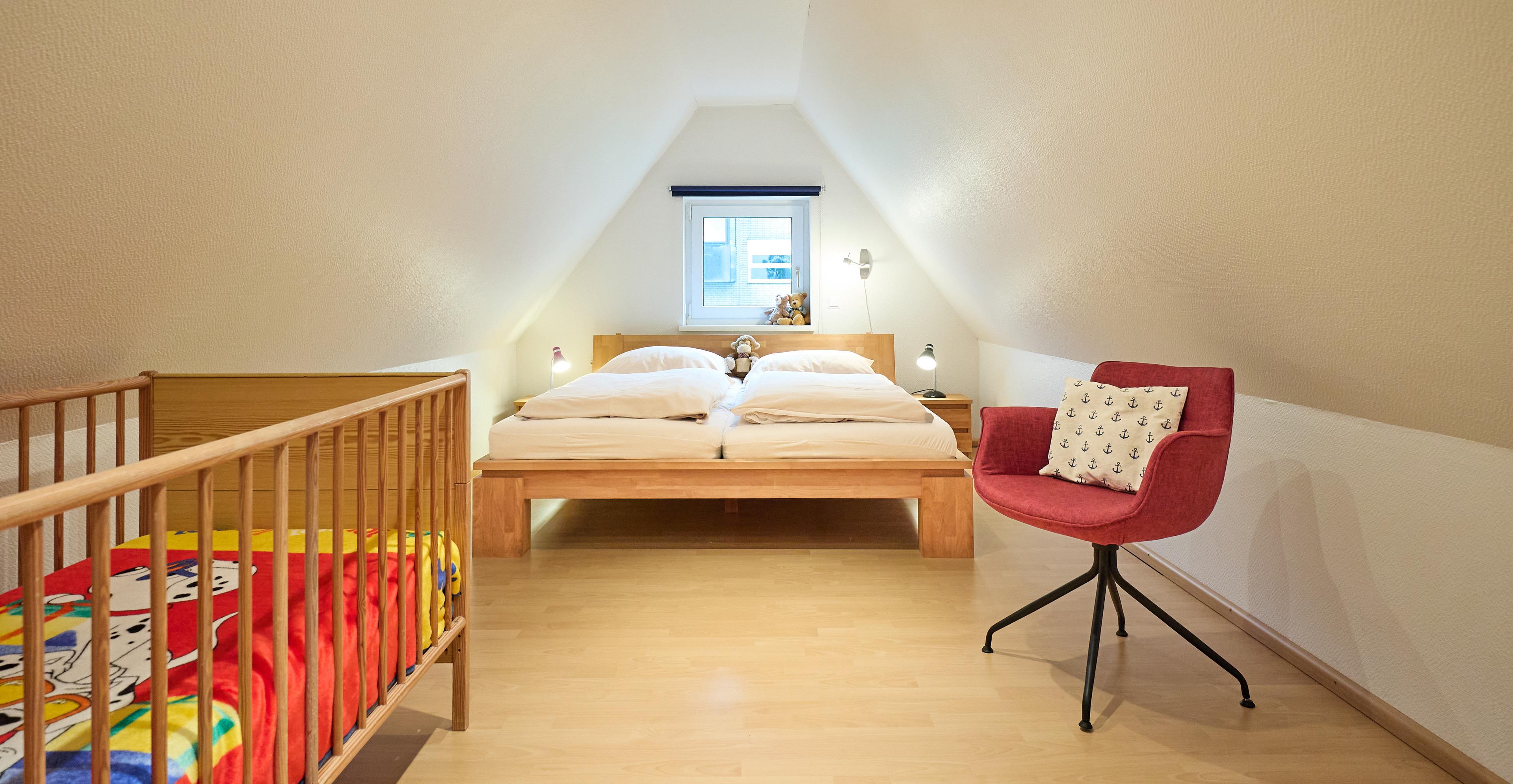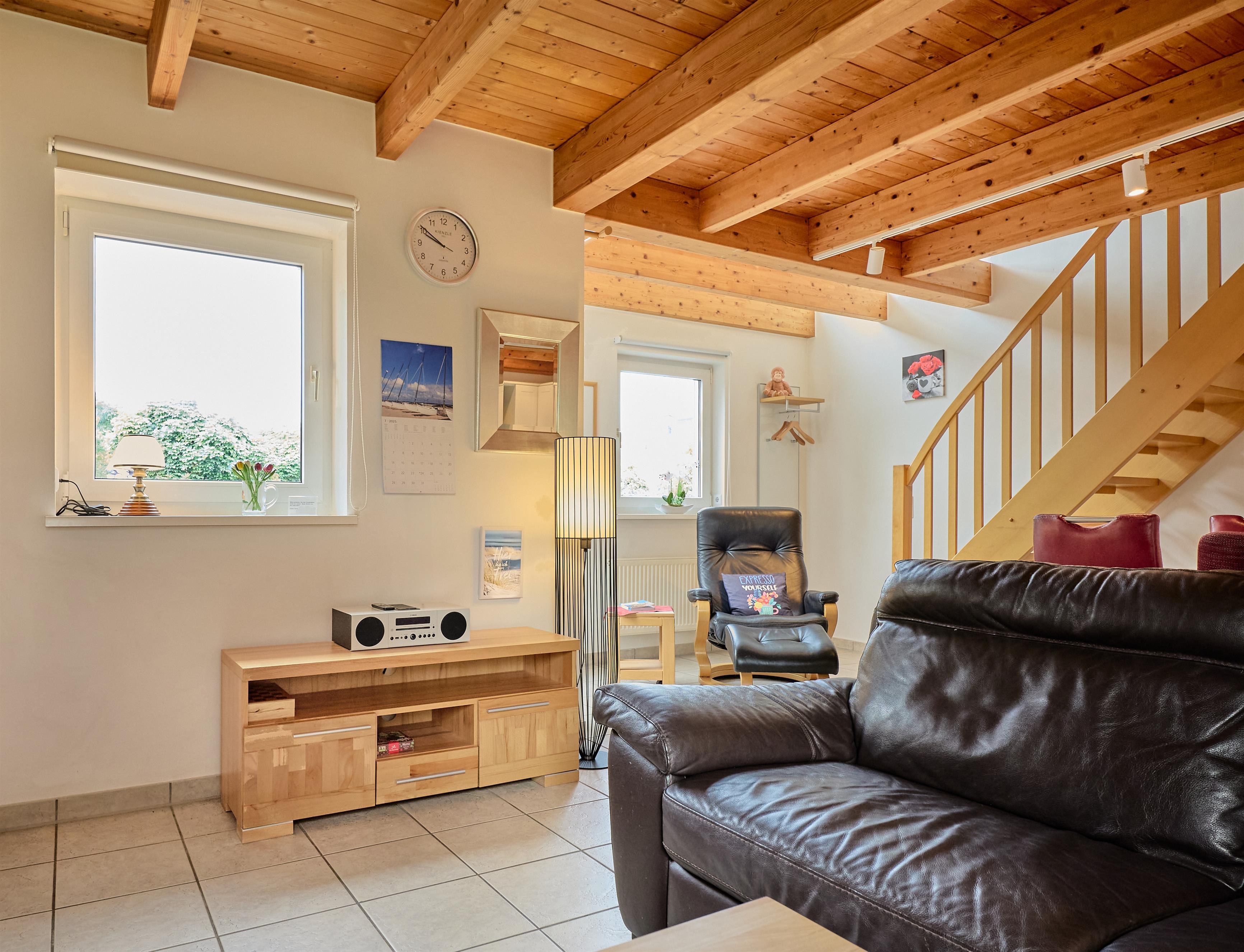 Die 3-Zimmer Haushälfte vom lütten Hus besteht aus einem gemütlichen Wohn- und Essbereich (mit Zugang zur Terrasse und ansprechend gestaltetem, großen Innenhof) mit Esstisch, Sofa und weiteren Sitzmöglichkeiten. Ein Ohrensessel rundet die Einrichtung ab. Weiterhin finden Sie im Erdgeschoss eine voll ausgestattete Einbauküche, ein großzügiges Duschbad (Dusche/WC) und das geräumige Schlafzimmer mit 2 Einzelbetten (100x200cm). Das Erdgeschoss mit Wohn- und Essbereich, Schlafzimmer, Duschbad und Küche ist für Rollstuhlfahrer geeignet. Im 1.OG befindet sich das zweite Schlafzimmer (1 Doppelbett und 1 Holzgitterbett 70 x 140cm, sowie einem Einzelbett für ein Kind in 90x200cm). Eine Galerie und der von den „Kleinen“ ausgezeichnete Spielboden laden zum Spielen und Entspannen ein genutzt werden kann. Dat lütte Hus, 3 Zimmer: EG + 1.OG, ca. 73 m2, bis zu 5 Personen plus einem Kleinkind, Ausstattung: Voll ausgestattete Küche mit Geschirrspüler, Backofen, 4-Platten Ceran-Kochfeld, Mikrowelle, Kaffeemaschine, Toaster usw.. Wohn- und Essbereich mit Full HD Flachbildfernseher, Video/DVD-Player inkl. einer Vielzahl an Filmen, CD-Player und Radio. Für Ihr E-Auto steht Ihnen eine kostenpflichtig zu nutzende Wallbox direkt an den PKW Stellplätzen zur Verfügung.