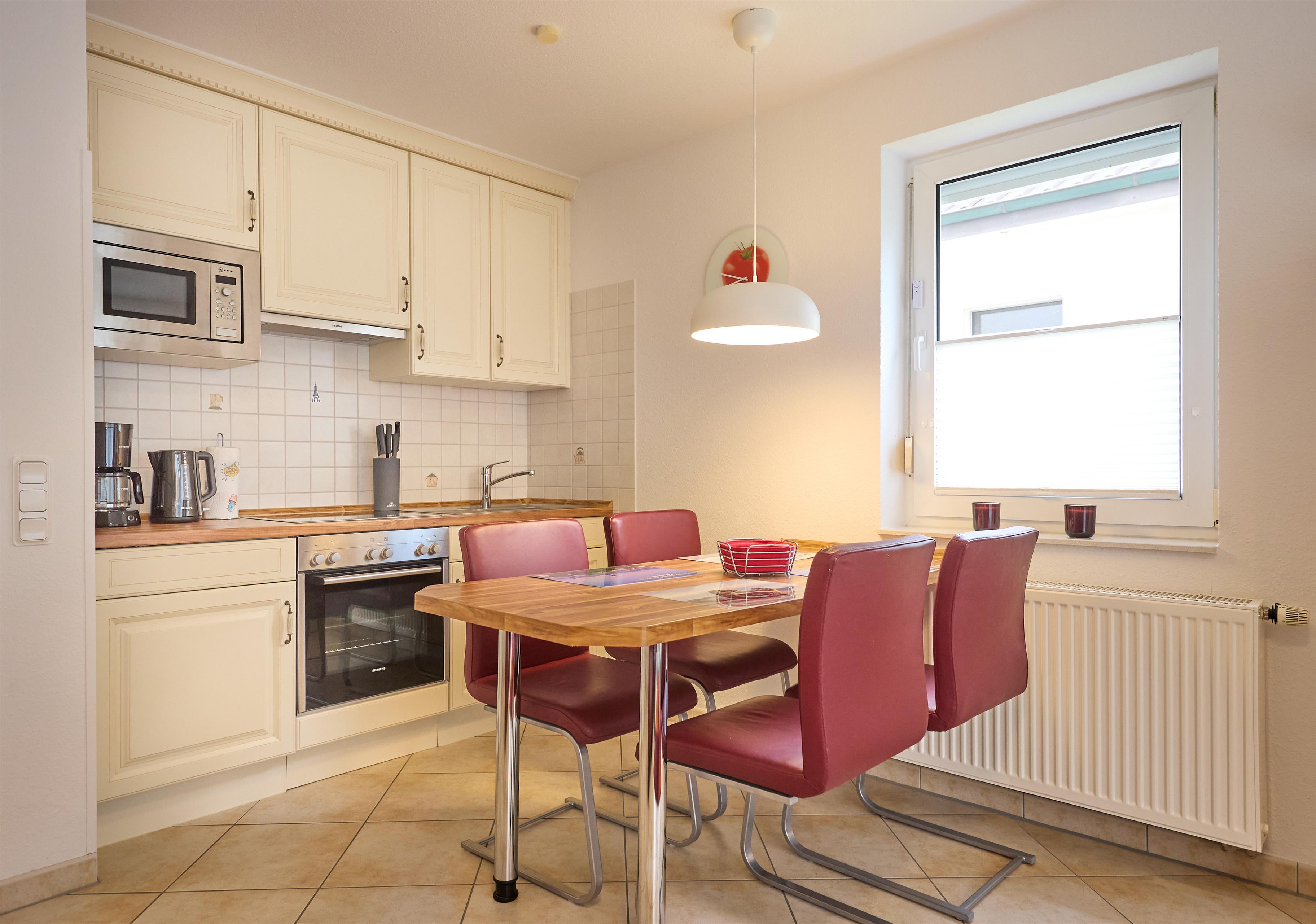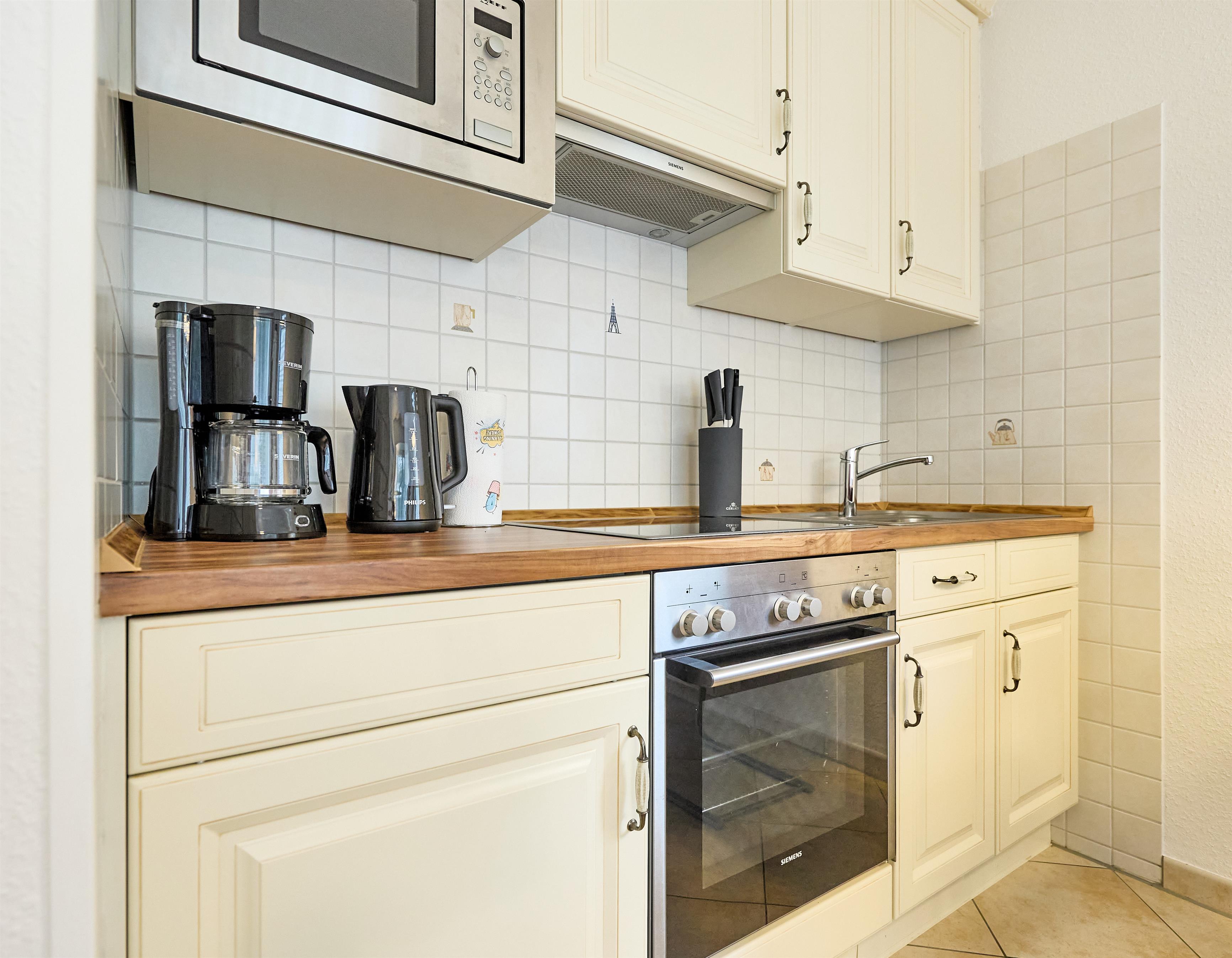 Die Küche ist funktional und gut ausgestattet – ideal für Selbstversorger, die im Urlaub Wert auf unkomplizierte Abläufe legen.