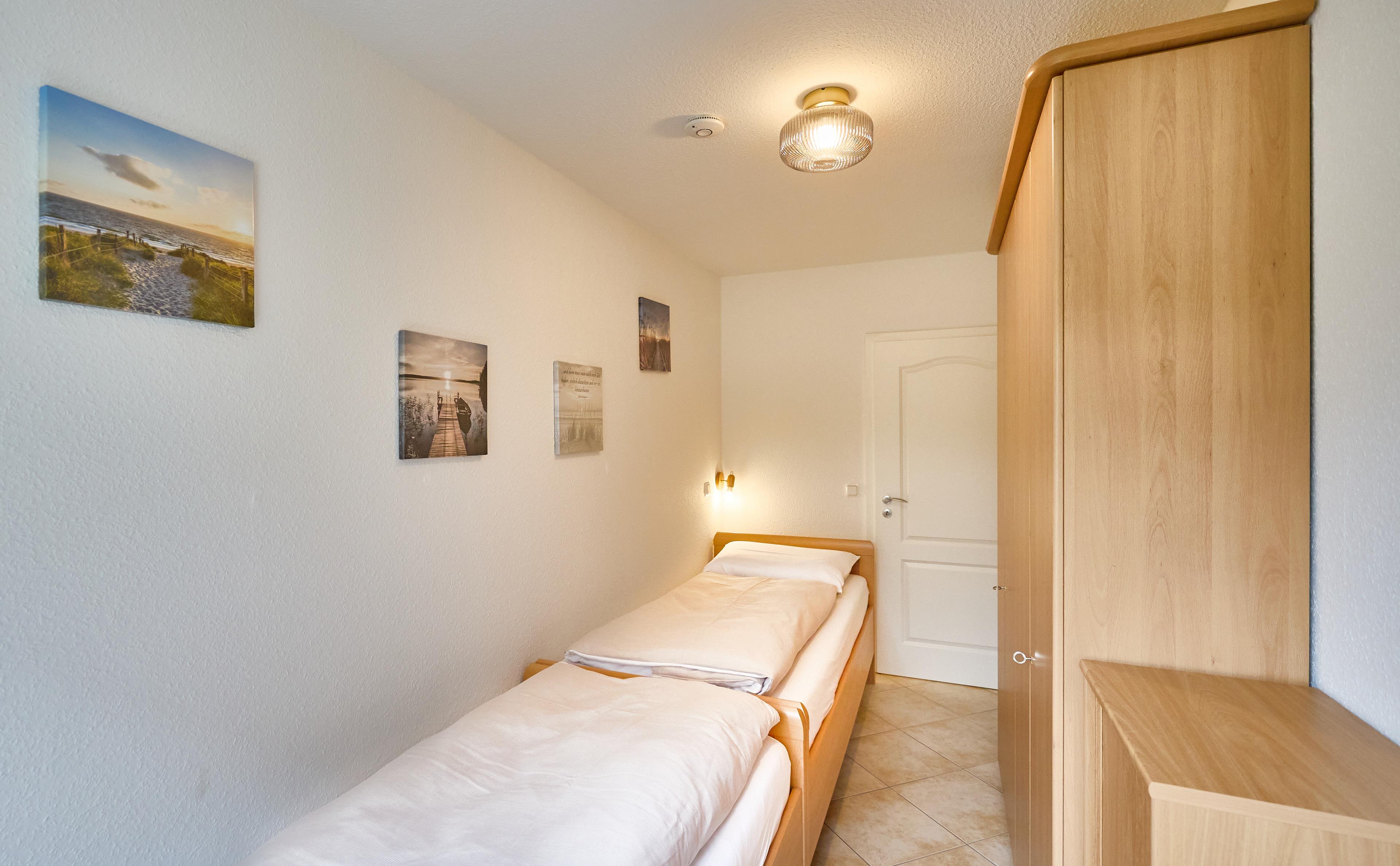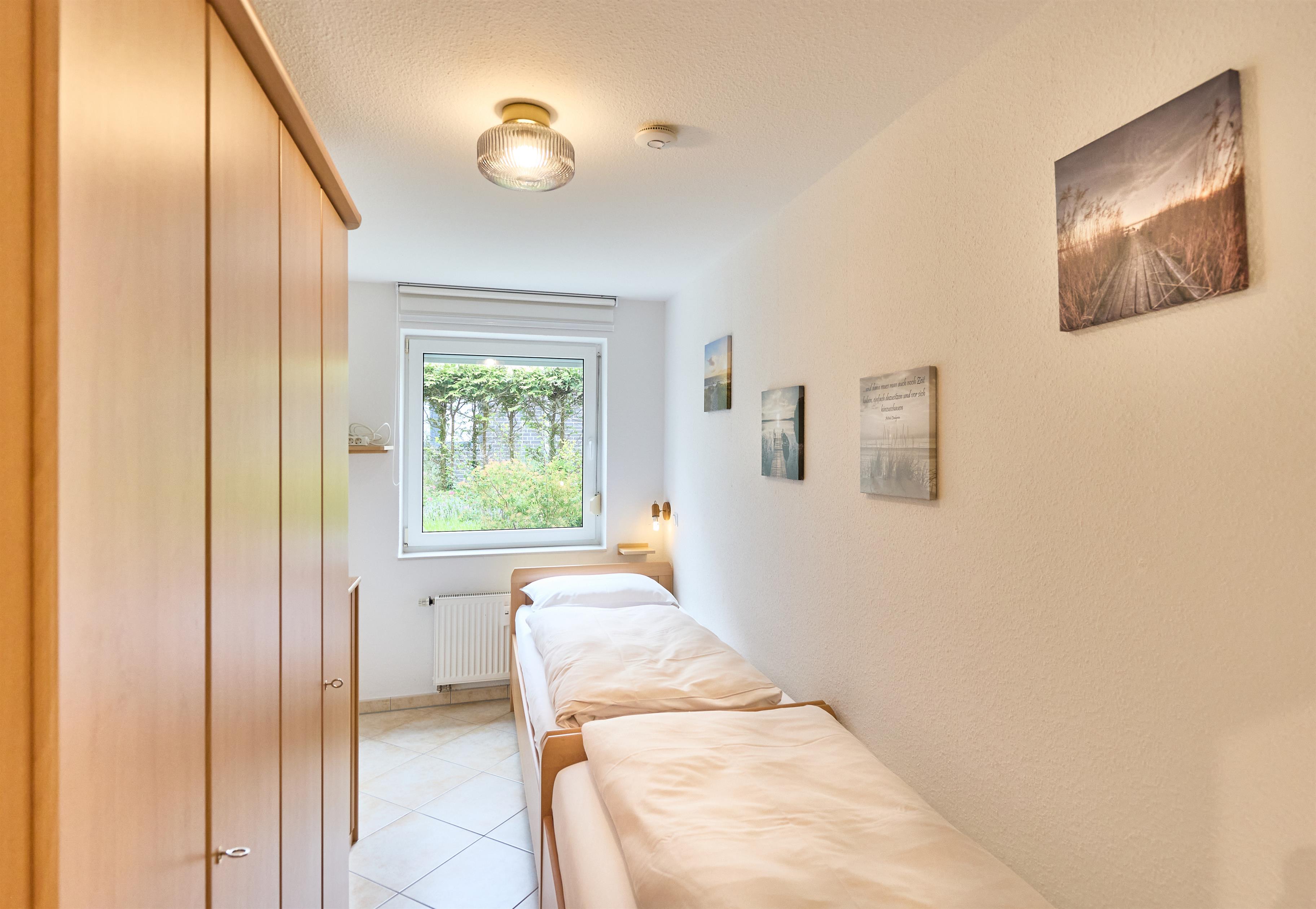 Die Wohnung bietet zwei separate Schlafbereiche, die bewusst schlicht, praktisch und gemütlich gehalten sind – ideal für erholsame Nächte.