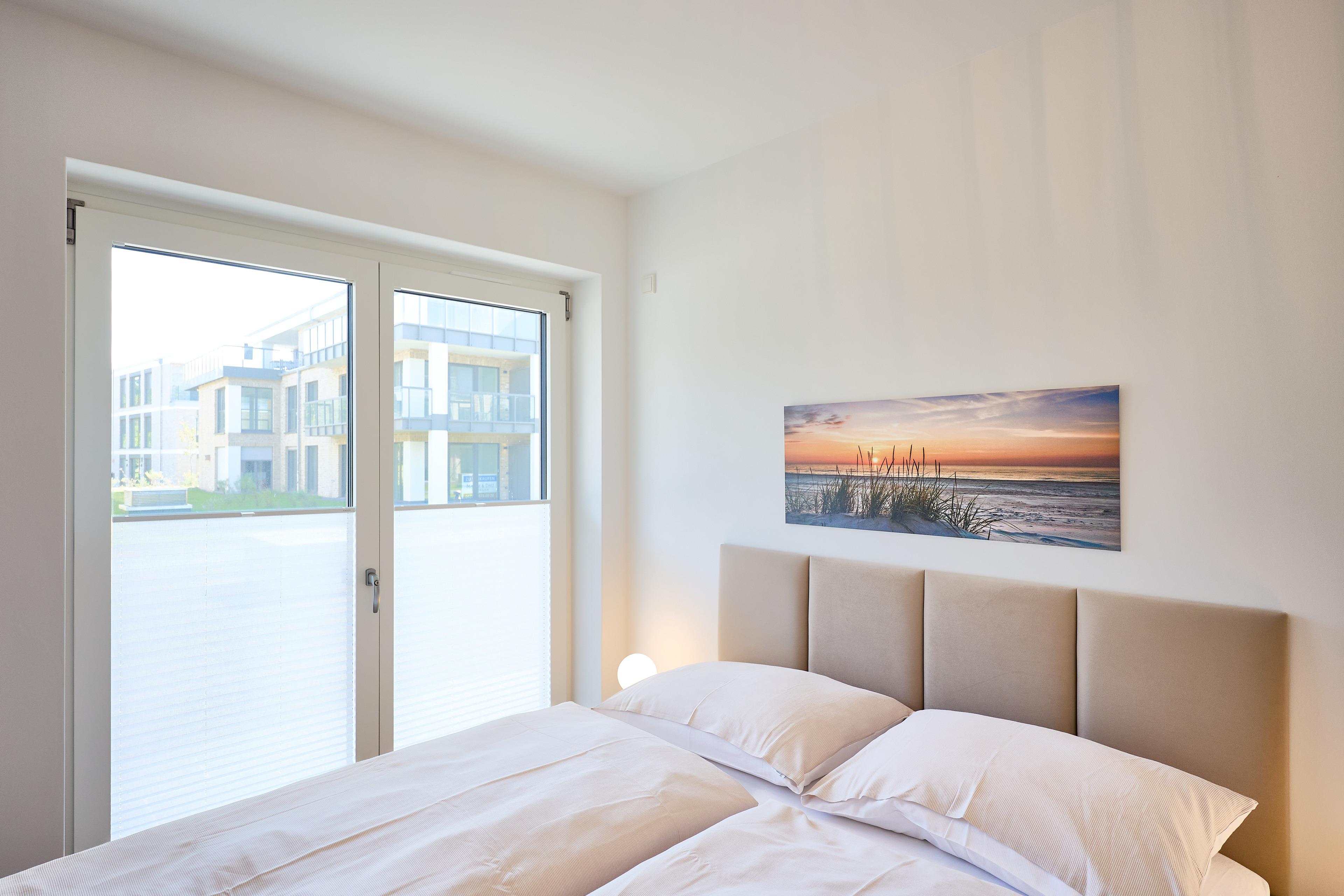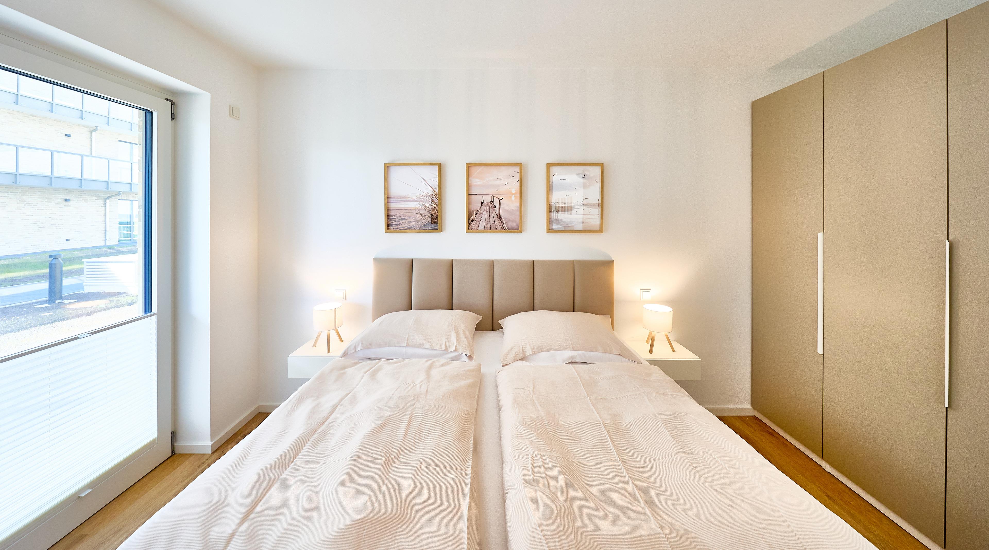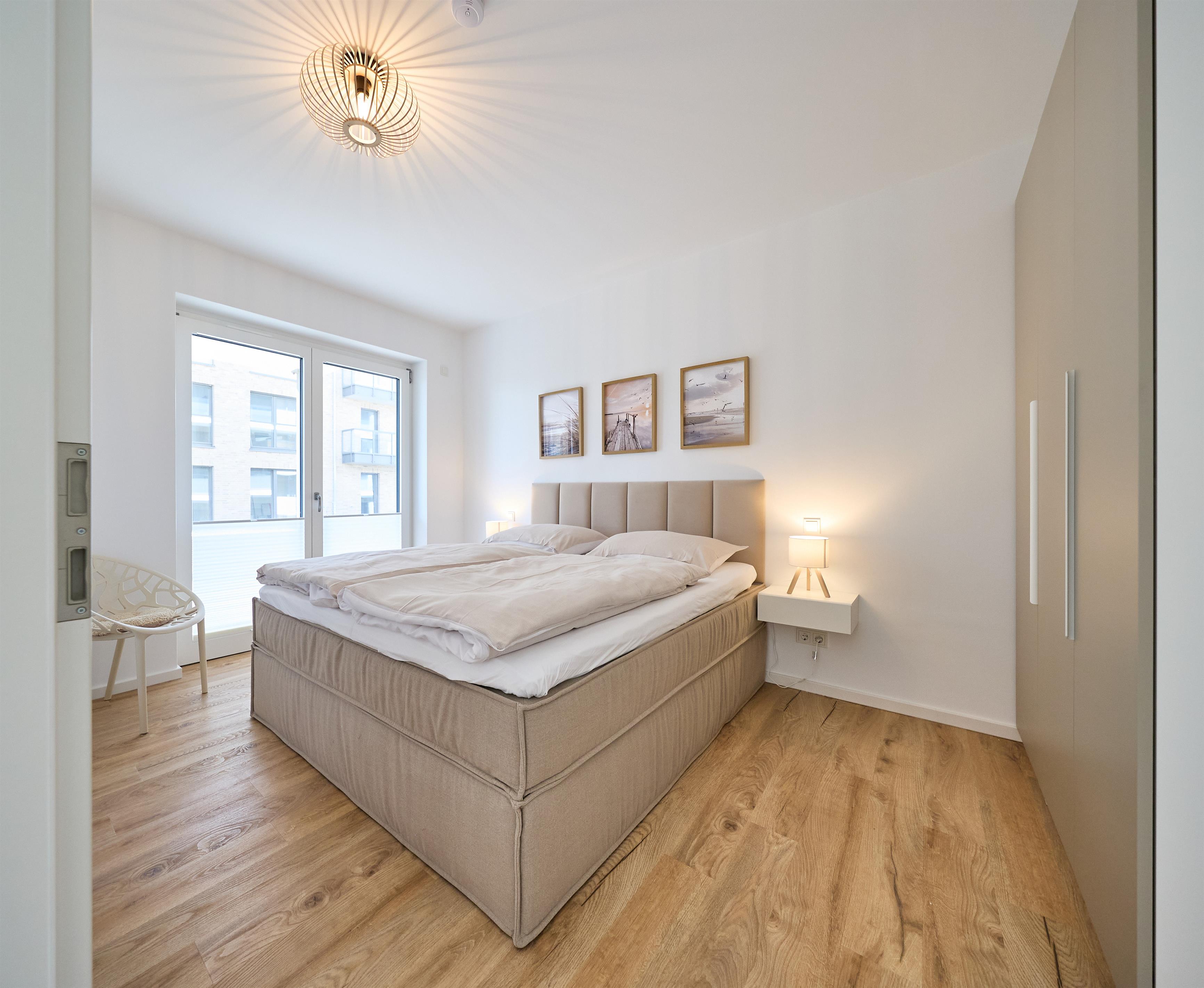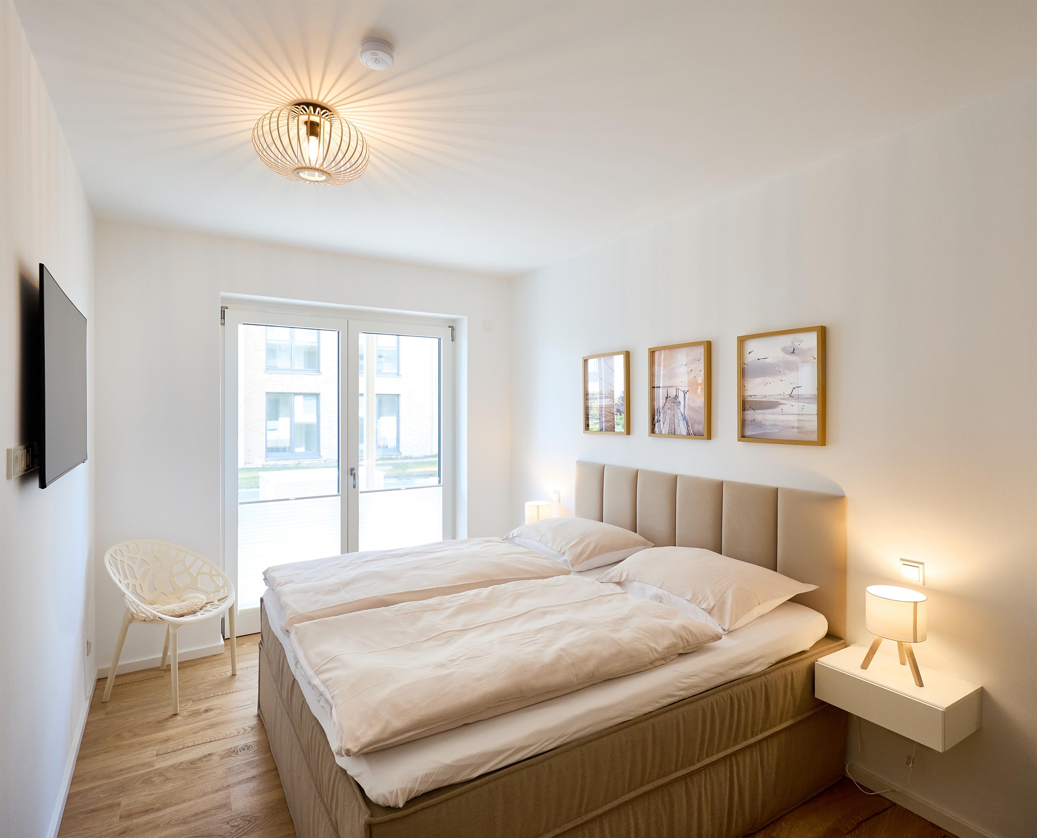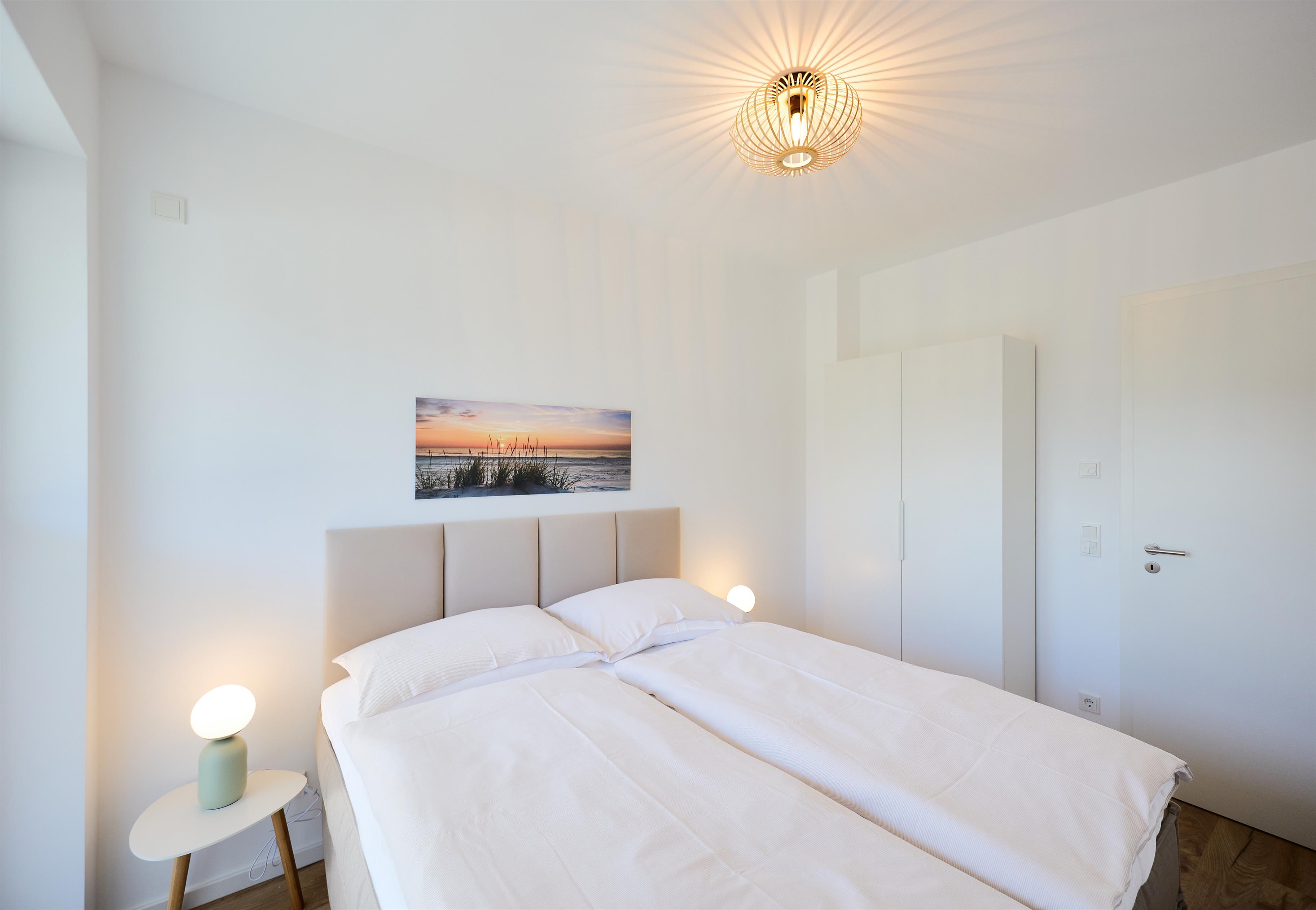 Zwei liebevoll eingerichtete Schlafzimmer sorgen für erholsamen Schlaf. Das erste Schlafzimmer ist mit einem komfortablen Boxspringbett (180 x 200 cm) und einem 50‘‘ Flachbild-TV ausgestattet. Im zweiten Schlafzimmer erwartet Sie ein weiteres Boxspringbett (160 x 200 cm) sowie ein 43‘‘ Flachbild-TV. Beide Räume bieten ausreichend Stauraum und sind in harmonischen, nordischen Farbtönen gestaltet.