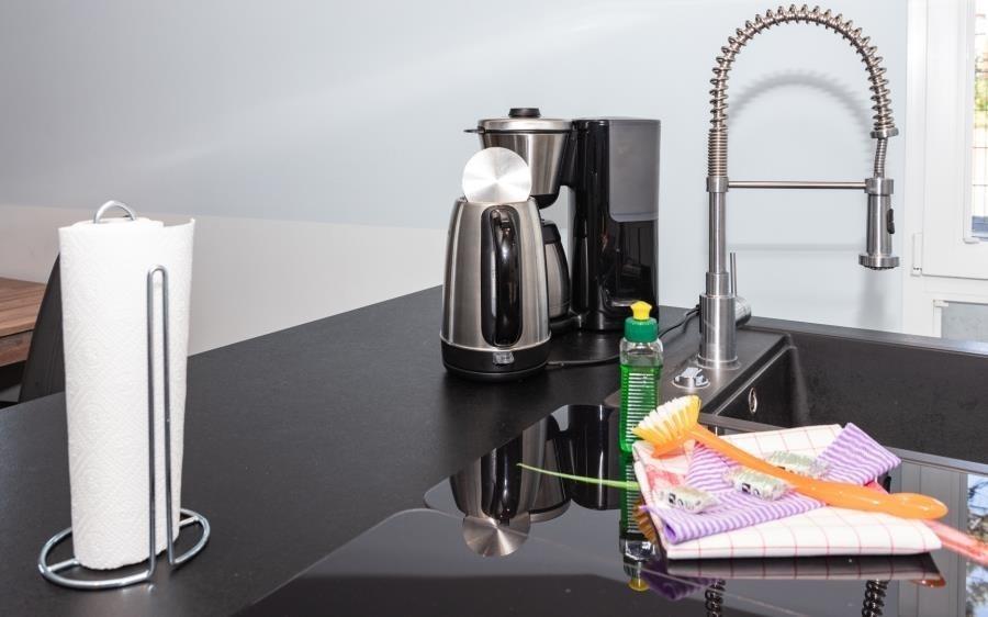 Fewo-Starterpaket: Duschvorleger, Geschirrtuch, Geschirrspültabs, Spülmittel, Spülbürste, Spültuch, 1 Toilettenrolle, Müllbeutel etc.